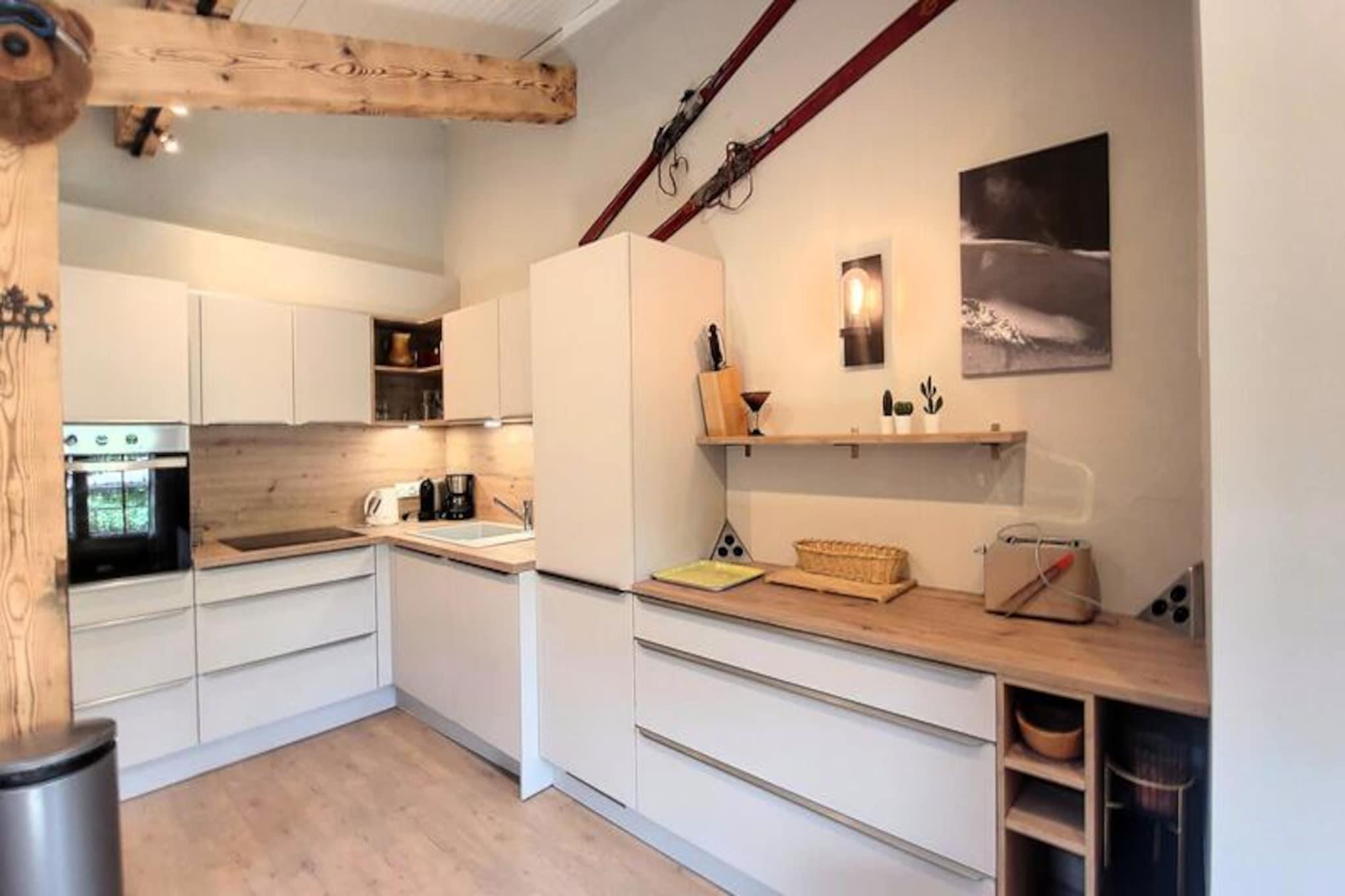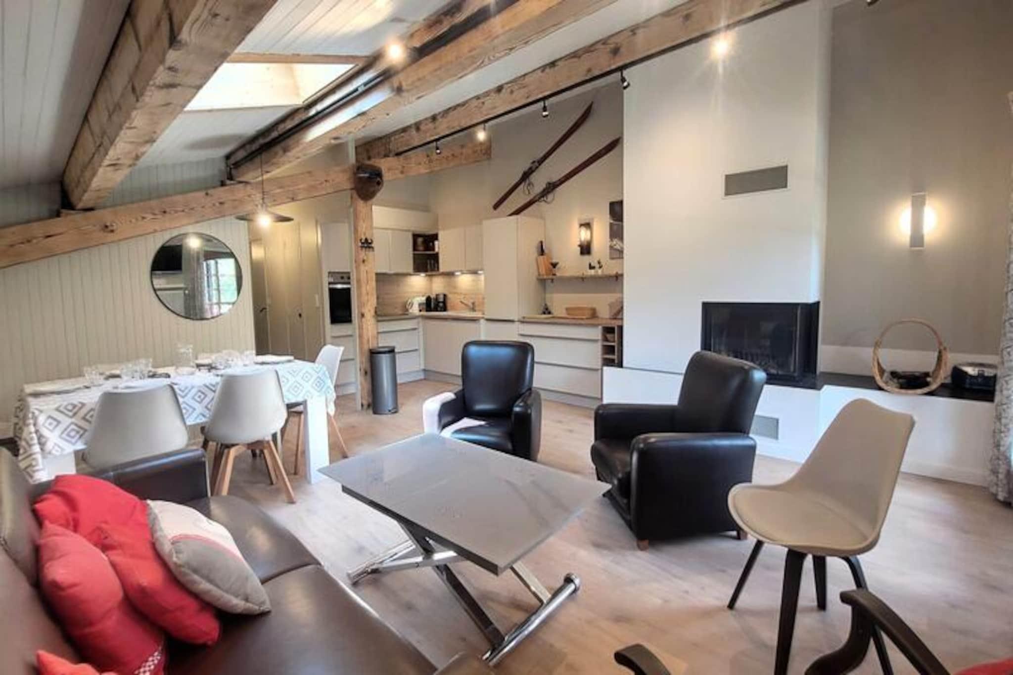 I hjertet af de franske alper tilbyder denne fantastiske penthouselejlighed et luksuriøst tilflugtssted med betagende udsigt og en perfekt blanding af moderne komfort og alpin charme. Beliggende kun 600 meter fra landsbyens centrum er boligen omgivet af en stor anlagt have, der giver en fredelig og malerisk atmosfære til din ferie. Uanset om du besøger stedet om vinteren eller sommeren, sikrer denne sydvestvendte ejendom, at du kan nyde det bedste af regionens naturlige skønhed og sollys hele dagen. Penthouselejligheden, der ligger på tredje sal med elevatoradgang, er designet til at rumme op til seks gæster. Dens rummelige og lyse opholdsstue har et fuldt udstyret køkken, en hyggelig spiseplads og en stue med tv og pejs, perfekt til afslapning efter en dag med eventyr. Tre smukt indrettede soveværelser, herunder en master suite med eget brusebad, tilbyder afslappende nætter under den alpine himmel. To altaner, der vender mod øst og vest, giver de ideelle steder at nyde morgen- og aftensolen, mens du nipper til din yndlingsdrink. Moderne bekvemmeligheder såsom Wi-Fi, centralvarme og en række køkkenapparater sikrer et problemfrit og behageligt ophold. Beliggenheden er uovertruffen, med de nærmeste skiløjper kun 500 meter væk og den franske skiskole (ESF) inden for en kort gåtur på 650 meter. Et shuttle-stoppested kun 50 meter fra boligen gør det nemt at udforske det omkringliggende område. Derudover er landsbyens centrum, butikker og restauranter inden for gåafstand, hvilket tilbyder bekvemmelighed og en smag af lokal kultur. For sommergæster giver den anlagte have og de nærliggende vandrestier uendelige muligheder for udendørsaktiviteter og afslapning. Denne penthouselejlighed er mere end bare et sted at bo; det er en invitation til at opleve Alpernes magi med stil og komfort. Med sit gennemtænkte design, førsteklasses faciliteter og førsteklasses beliggenhed lover den en uforglemmelig ferie for familier, par eller venner, der søger en rolig, men eventyrlig flugt.