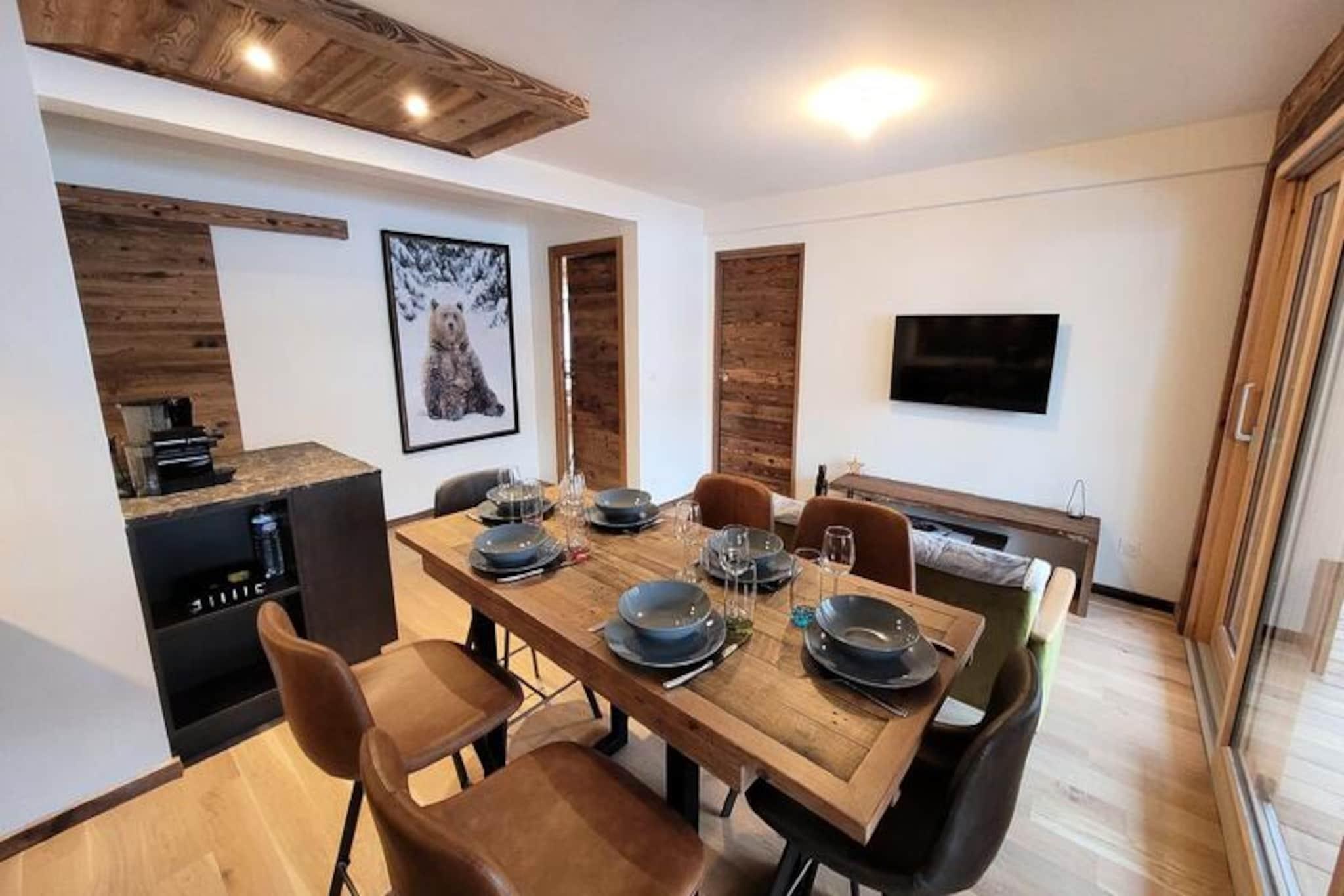 I hjertet af den charmerende alpelandsby tilbyder L'Essentiel en harmonisk blanding af elegance, komfort og praktisk anvendelighed. Denne eksklusive bolig er perfekt beliggende til en bilfri ferie med butikker, restauranter og skilifte kun få skridt væk. Forestil dig at vågne op til den friske bjergluft, nyde morgenmaden på den rummelige, overdækkede terrasse og tage på en dag med eventyr i de franske alper, alt sammen uden behov for en bil. Atmosfæren her er både raffineret og imødekommende, hvilket gør den til det perfekte tilflugtssted for familier eller venner. Indenfor er lejligheden omhyggeligt designet til at rumme op til seks gæster, inklusive to børn. Den lyse og luftige opholdsstue har en hyggelig stue, en spiseplads og et fuldt udstyret åbent køkken, der alle fører ud til den store nordøstvendte terrasse. Sovepladserne omfatter et soveværelse med eget badeværelse og en dobbeltseng, et andet soveværelse med to enkeltsenge, der kan sættes sammen, og et charmerende kahytområde med køjesenge til børn. Moderne faciliteter såsom Wi-Fi, en Nespresso-kaffemaskine og en raclette-grill sikrer et behageligt og behageligt ophold. Ud over lejligheden er beliggenheden en drøm for friluftsentusiaster. De nærmeste skiløjper og den franske skiskole (ESF) ligger kun 450 meter væk, mens en shuttle-service stopper 30 meter fra boligen. Om sommeren forvandles regionen til et paradis for vandrere og cyklister med betagende stier og alpint landskab. Efter en dag med udforskning kan du vende tilbage til bekvemmeligheden med et skirum med støvletørrer, en overdækket parkeringsplads med en elbiloplader og et vaskerum for ekstra bekvemmelighed. Uanset om du er her for de snedækkede pister eller de pulserende sommerlandskaber, lover L'Essentiel en uforglemmelig alpin flugt, der kombinerer luksus, bekvemmelighed og de franske alpers naturlige skønhed.