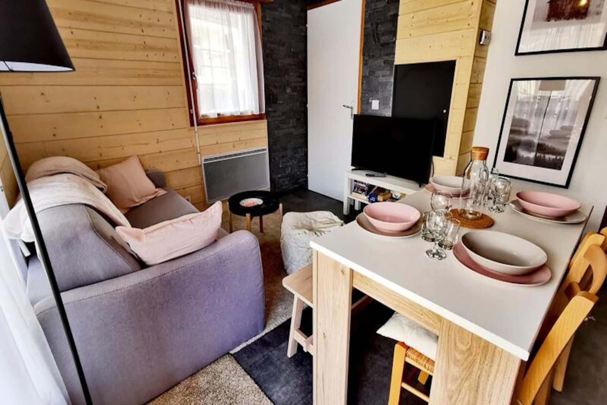 I hjertet af de franske alper tilbyder denne charmerende lejlighed et roligt tilflugtssted kun få øjeblikke fra Les Gets pulserende centrum. Forestil dig at vågne op til den friske bjergluft, træde ud på din nordøstvendte terrasse og planlægge en dag med eventyr med pisterne kun 350 meter væk. Uanset om du er her for vintersneen eller sommerens stier, kombinerer denne bolig ro med bekvemmelighed, hvilket gør den til et ideelt valg for par eller små familier, der søger en hyggelig alpin flugt. Indenfor er det 35 m² store rum blevet omhyggeligt renoveret for at blande moderne komfort med alpin charme. Lejligheden har en lys opholdsstue med franske døre, der fører ud til terrassen, et fuldt udstyret tekøkken til at tilberede solide måltider og en spiseplads, der er perfekt til at dele historier om dagens eventyr. Dobbeltværelset, komplet med opbevaring og egen balkonadgang, tilbyder en afslappende oase, mens sovealkoven med køjesenge er en sjov og praktisk løsning for familier. Et rummeligt badeværelse med håndklædetørrer tilføjer et strejf af luksus til dit ophold. Beliggende kun 400 meter fra centrum finder du alt hvad du behøver inden for gåafstand, fra butikker og restauranter til ESF-skiskolen. Gratis shuttlebusser, kun 100 meter væk, gør det nemt at udforske området. Efter en dag på pisterne eller vandrestierne kan du vende tilbage til komforten i din lejlighed, hvor faciliteter som fiberoptisk Wi-Fi, et raclette-sæt og to fjernsyn sikrer en afslappende aften. Med sin blanding af moderne bekvemmeligheder, førsteklasses beliggenhed og alpin charme er denne lejlighed din port til uforglemmelige øjeblikke i Les Gets. Uanset om du snor dig gennem frisk puddersne eller nyder sommersolen, er dette den perfekte base for dine bjergeventyr.