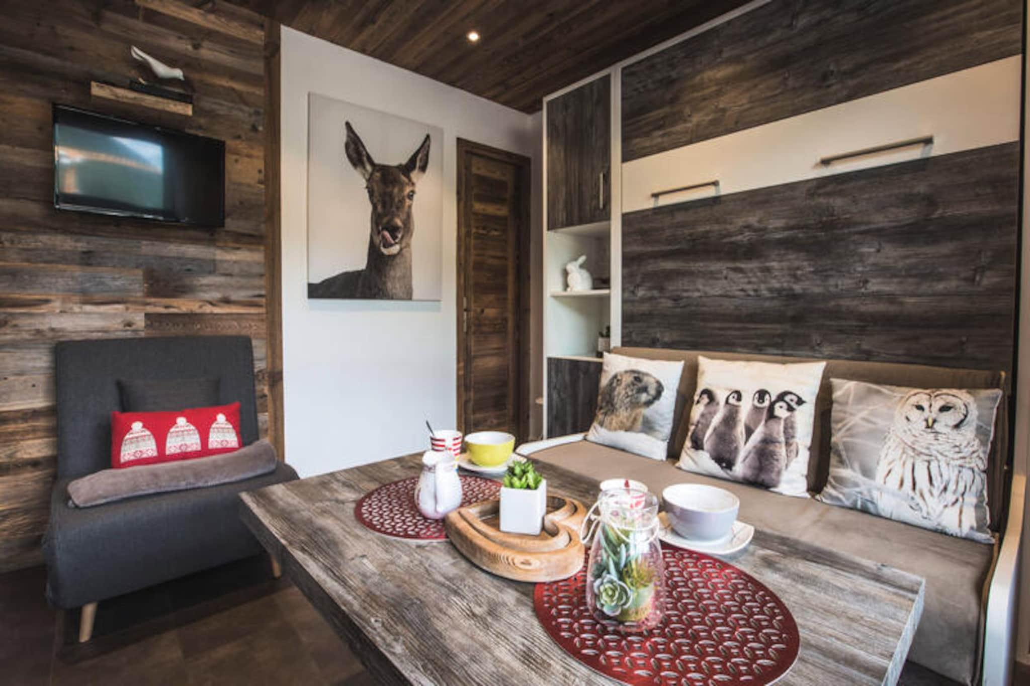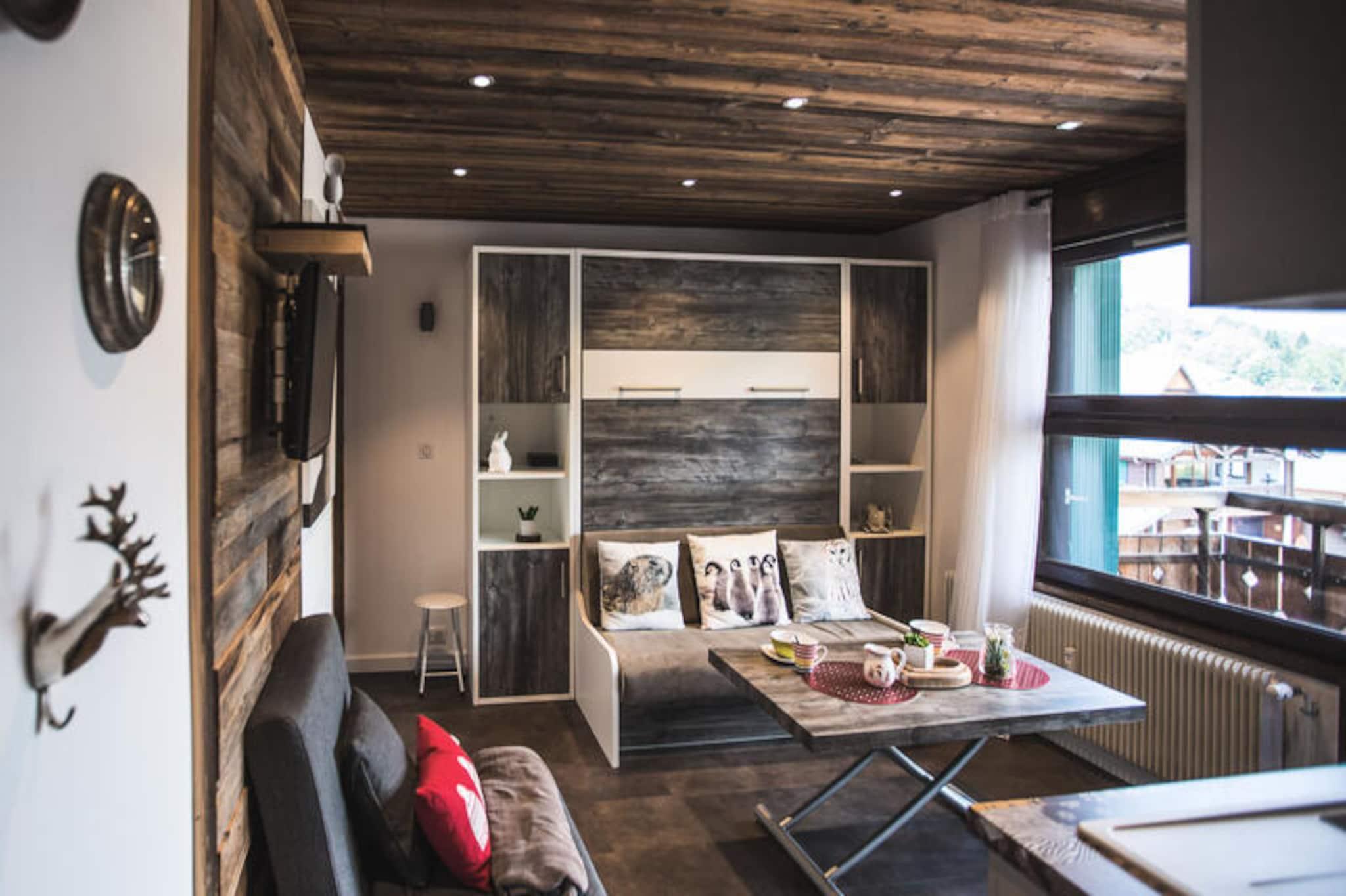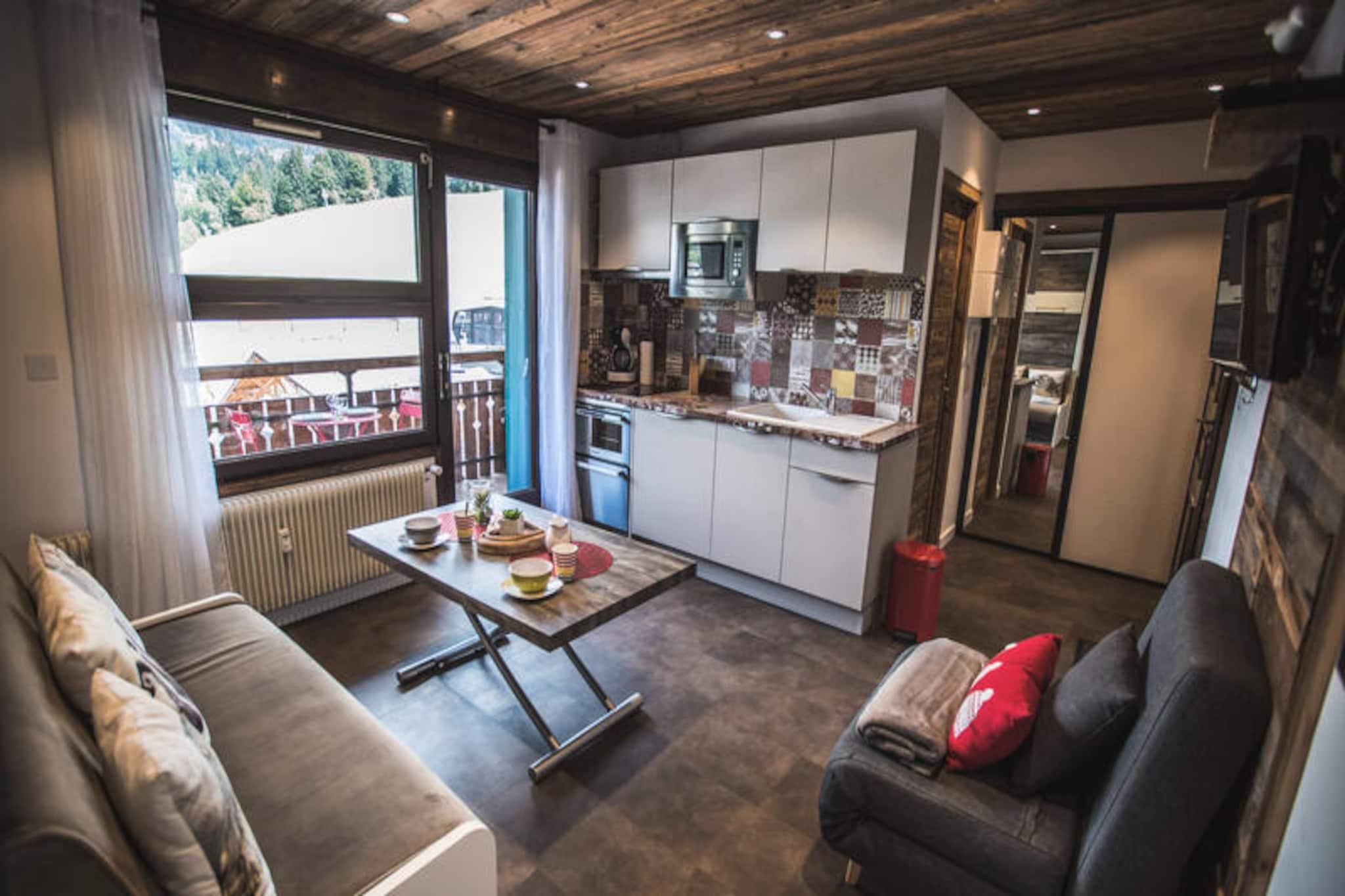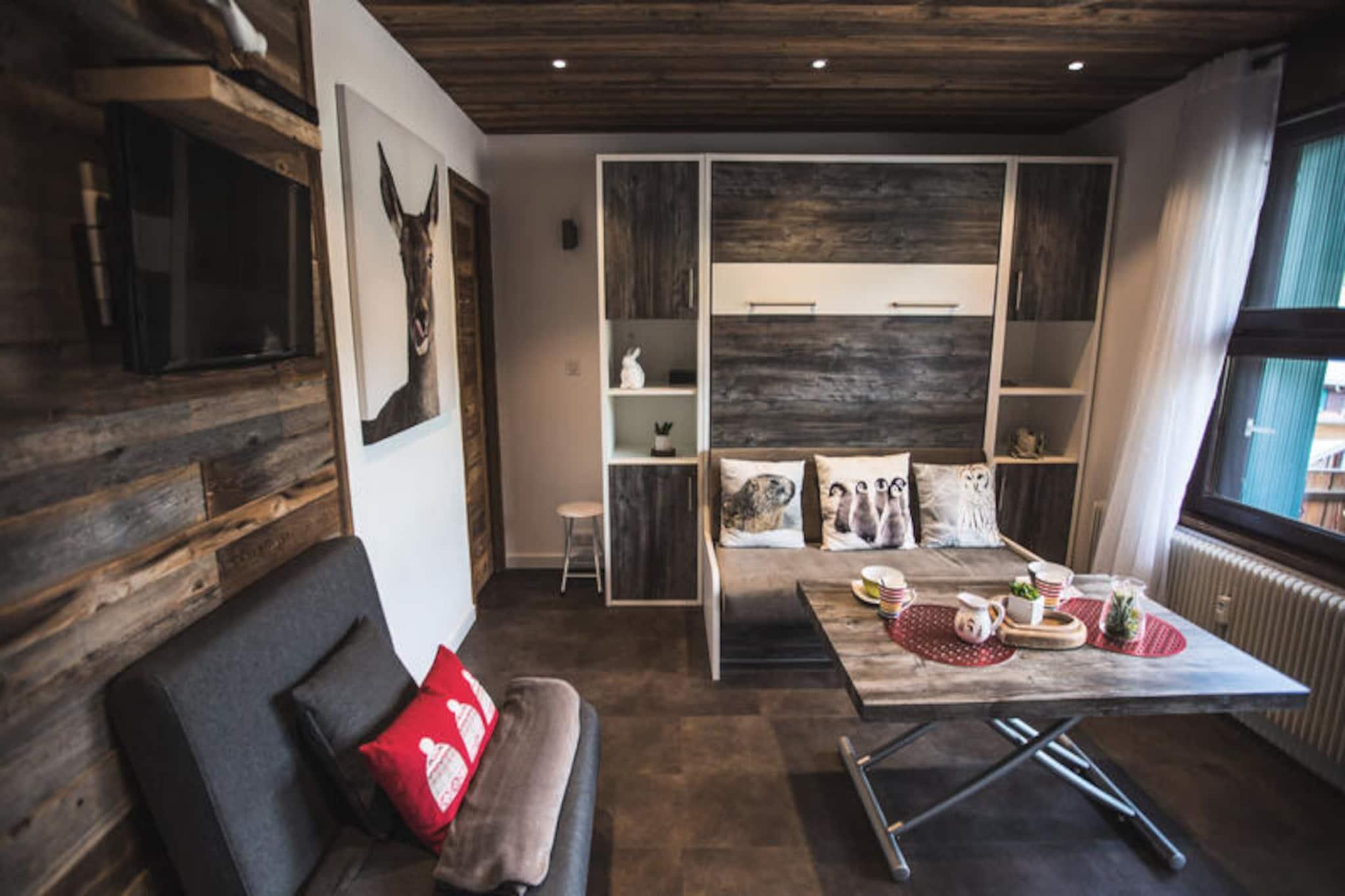 Højt over feriestedets travle hjerte tilbyder dette charmerende studie et roligt tilflugtssted for to, hvor pisternes energi møder bjergenes ro. Fra din private balkon kan du nyde den storslåede udsigt over de snedækkede tinder, det livlige feriestedscentrum og skiløjperne kun få skridt væk. Uanset om du er her for spændingen ved skiløb eller den hyggelige atmosfære i alpint liv, er dette studie den perfekte base for din bjergflugt. \n\nDet gennemtænkte og nyrenoverede 23 m² store studie kombinerer moderne komfort med praktiske bekvemmeligheder. Opholdsstuen har en smart integreret dobbeltseng, der sikrer afslappende nætter efter dages eventyr. Tekøkkenet er fuldt udstyret med alt, hvad du behøver for at tilberede varme måltider, fra et fonduesæt til en kaffemaskine, mens det elegante brusebad og separat toilet bidrager til bekvemmeligheden. Et privat skirum og elevatoradgang gør dit ophold endnu mere ubesværet. \n\nBeliggende i centrum af feriestedet er alt inden for rækkevidde. Butikker, restauranter og skilifte ligger kun få skridt væk, så du fuldt ud kan fordybe dig i den pulserende alpine livsstil. For skiløbere er de nærmeste pister og skiskole henholdsvis blot 20 meter og 200 meter væk. Om aftenen kan du slentre til nærliggende spisesteder eller blot slappe af på din balkon og nyde den friske bjergluft. \n\nMed slutrengøring inkluderet og valgfri linnedservice sikrer dette studie en problemfri og stressfri ferie. Uanset om du søger eventyr eller afslapning, lover dette hyggelige tilflugtssted et uforglemmeligt ophold i hjertet af de franske alper.