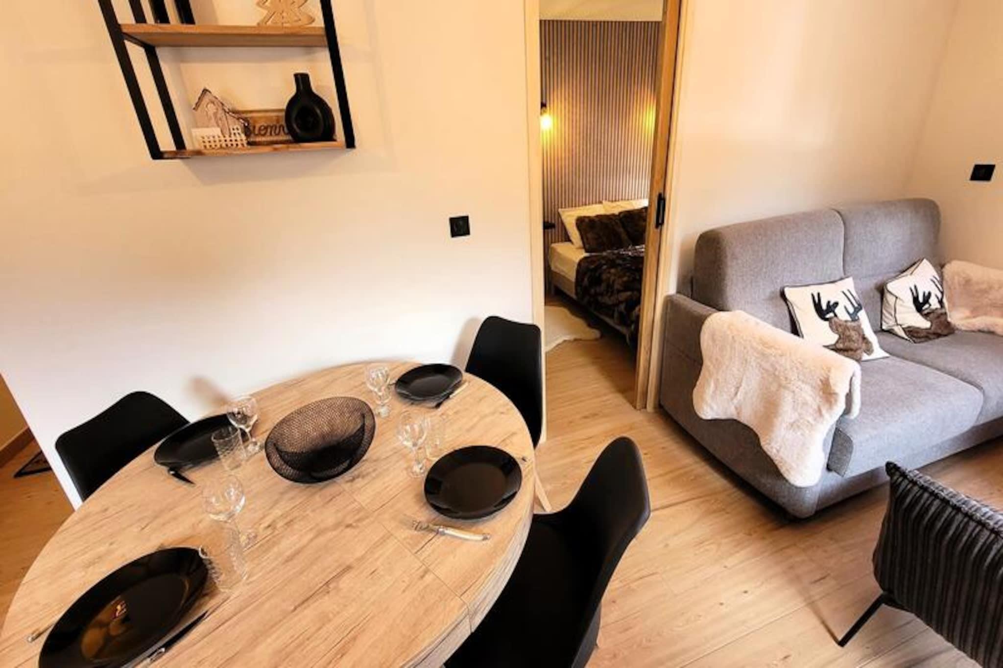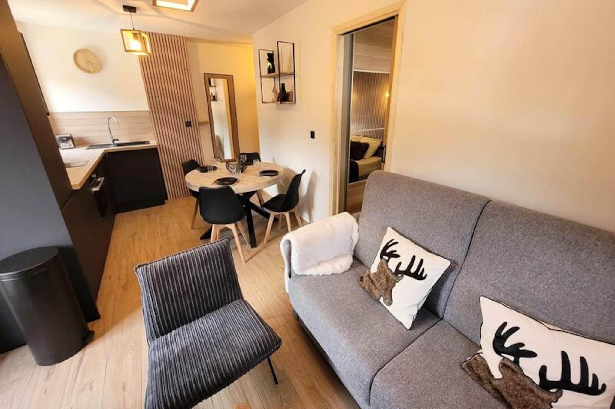 I hjertet af den charmerende landsby tilbyder denne hyggelige lejlighed på Rue du Centre et indbydende tilflugtssted for din alpine ferie. Forestil dig at træde ud af døren og være omgivet af den pulserende energi fra lokale butikker, restauranter og pisterne kun en kort gåtur væk. Med sin østvendte balkon kan du starte dine morgener med en kop kaffe, mens du nyder den friske bjergluft og den milde varme fra den opgående sol. Dette er det perfekte sted for dem, der elsker at være i centrum af det hele, mens de nyder roen i de franske alper. Denne smukt renoverede lejlighed på 28 m² er omhyggeligt designet til at tilbyde komfort og bekvemmelighed. Den ligger på anden sal i en traditionel bygning og har en varm og smagfuld indretning, der får dig til at føle dig hjemme. Opholdsstuen har en sovesofa af høj kvalitet, perfekt til afslapning efter en dag med eventyr, mens det fuldt udstyrede køkken inviterer dig til nemt at tilberede solide måltider. Dobbeltværelset tilbyder et hyggeligt tilflugtssted med rigelig opbevaringsplads, og det moderne brusebad tilføjer et strejf af luksus til dit ophold. Med faciliteter som Wi-Fi, raclettemaskine og Nespresso-kaffemaskine er hver eneste detalje tænkt over for din komfort. Bare 100 meter fra de nærmeste skiløjper og shuttlebus, og en kort gåtur fra ESF-skiskolen, er denne beliggenhed ideel for vintersportsentusiaster. Om sommeren forvandles landsbyen til et paradis for vandrere og naturelskere, med stier og betagende udsigter overalt. Uanset om du er her for at stå på ski, udforske eller blot slappe af, placerer denne lejlighed dig i hjertet af begivenhederne, samtidig med at den tilbyder et fredeligt tilflugtssted til at genoplade. Med inkluderede tjenester som slutrengøring, sengetøj og håndklæder er dit ophold designet til at være så problemfrit som muligt. Uanset om du planlægger en romantisk ferie eller et lille familieeventyr, lover denne dejlige lejlighed en uforglemmelig alpin oplevelse.