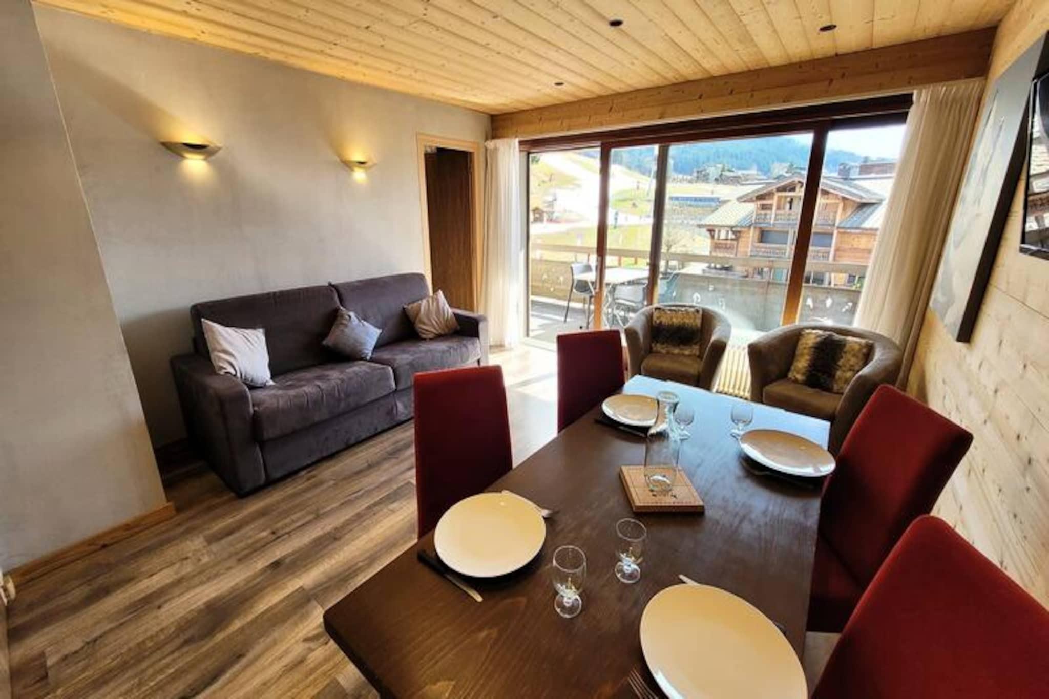 Hvor Les Gets' alpine charme møder moderne bekvemmeligheder, tilbyder denne hyggelige lejlighed en plads på første række til de snedækkede pister i Chavannes skiområde. Badet i sollys takket være sin sydvestlige beliggenhed inviterer boligen dig til at vågne op til en betagende udsigt og træde direkte ind i hjertet af bjergeventyr. Uanset om du er her for spændingen ved skiløb eller roen på sommervandreture, lover denne beliggenhed uforglemmelige øjeblikke omgivet af naturens skønhed. Den pulserende landsbyatmosfære, kun få skridt væk, tilføjer et strejf af varme og fællesskab til dit ophold. \n\nLejligheden er designet til op til fire gæster og har en indbydende planløsning med en rummelig opholdsstue, der åbner ud til en stor balkon - perfekt til afslapning efter en aktiv dag. Soveværelset tilbyder komfort med to enkeltsenge, opbevaringsplads og et tv, mens stuen har en dobbelt sovesofa til ekstra sovepladser. Det fuldt udstyrede køkken giver dig mulighed for nemt at tilberede måltider, komplet med moderne apparater såsom opvaskemaskine, ovn og Nespresso-kaffemaskine. Centralvarme, Wi-Fi og gennemtænkte faciliteter som en raclettegrill og elektrisk håndklædetørrer sikrer en stressfri og hyggelig oplevelse. \n\nBeliggende lige overfor ESF-skiskolen og kun 100 meter fra skilifterne, byder denne lejlighed på uovertruffen bekvemmelighed. Butikker, restauranter og essentielle tjenester ligger alle inden for gåafstand, hvilket gør det nemt at fordybe sig i det livlige landsbyliv. Om sommeren kan du udforske naturskønne stier, cykle gennem frodige landskaber eller blot slappe af og nyde den rolige alpine atmosfære. Med en overdækket parkeringsplads, skiboks og fælles cykelopbevaring er hver eneste detalje tænkt over for din komfort. \n\nUanset om du søger spændende vintersport eller fredelige sommerferier, er denne lejlighed den ideelle base for at skabe varige minder i de franske alper. Lad charmen ved Les Gets og bjergenes tiltrækningskraft betage dig året rundt.