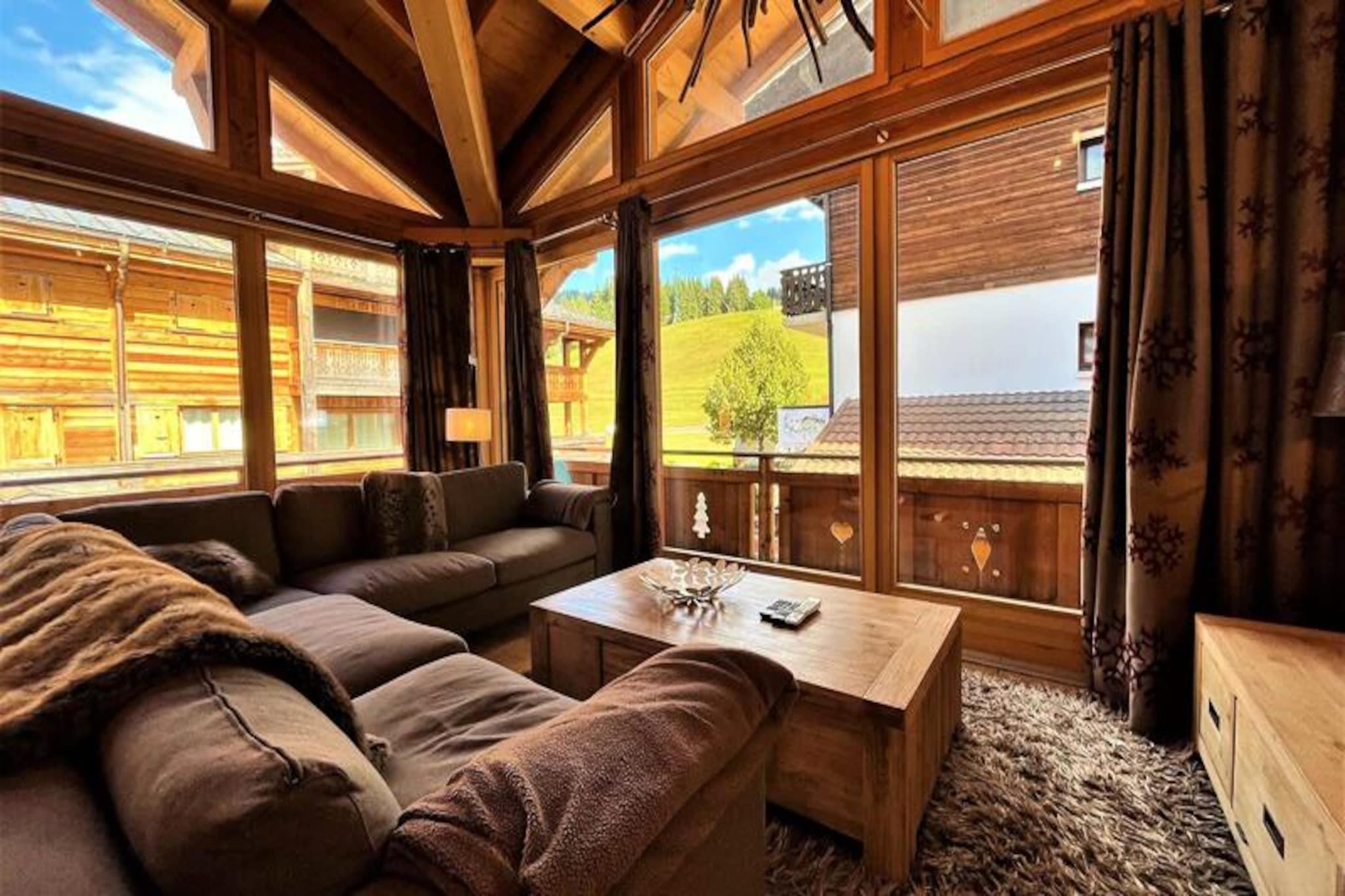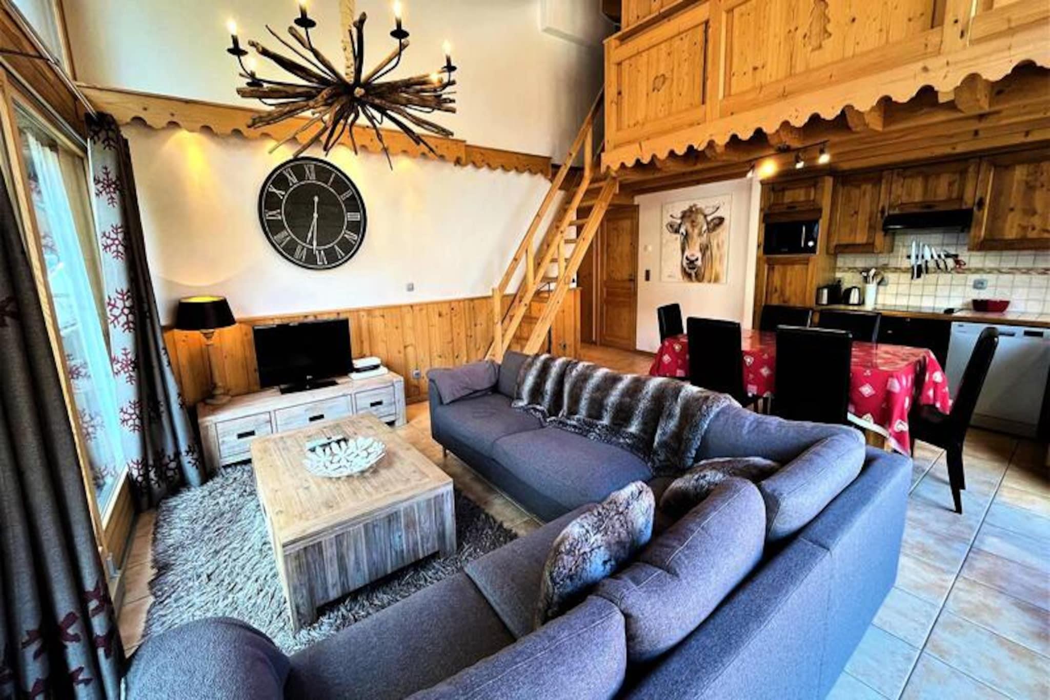 I hjertet af en charmerende alpelandsby tilbyder denne indbydende lejlighed en perfekt blanding af komfort og bekvemmelighed til din bjergferie. Forestil dig at vågne op til den bløde glød fra morgensolen, der strømmer ind gennem de sydøstvendte vinduer, træde ud på din balkon for at nyde den fredfyldte udsigt over de nærliggende skiløjper og indånde den friske bjergluft. Uanset om du er her for vintereventyr eller sommervandreture, er denne bolig din port til Alpernes skønhed. \n\nLejligheden er designet til at rumme op til seks gæster og kan prale af en varm og indbydende stue med en distinkt bjergstemning. Det fuldt udstyrede køkken åbner problemfrit ind i opholdsrummet, hvilket gør det ideelt til fælles måltider og hyggelige aftener. To komfortable soveværelser, en hems med en dobbeltseng og to badeværelser sikrer rigelig plads og privatliv for alle. Moderne faciliteter som Wi-Fi, et tv og en raclettegrill bidrager til bekvemmeligheden, mens gennemtænkte detaljer som en vaskemaskine og tørretumbler gør længere ophold ubesværede. Den private overdækkede parkering til to biler og et skiskab forbedrer dit ophold yderligere.\n\nTræd udenfor og oplev det pulserende landsbyliv kun få øjeblikke væk. Butikker, restauranter og essentielle tjenester ligger alle inden for gåafstand, mens skiløjperne og vandrestierne kun ligger 60 meter fra din dør. Den franske skiskole ligger bekvemt 100 meter væk, hvilket gør dette til et fremragende valg for familier eller begyndere, der ønsker at finpudse deres færdigheder. Om sommeren forvandles landsbyen til et paradis for friluftsentusiaster med naturskønne stier og betagende udsigter, der venter på at blive udforsket.\n\nUanset om du søger spændende skidage, rolige vandreture i naturen eller blot et hyggeligt tilflugtssted at slappe af, tilbyder denne lejlighed de perfekte rammer for uforglemmelige alpine minder. Lad bjergenes charme og bekvemmeligheden ved denne bolig gøre din ferie virkelig speciel.