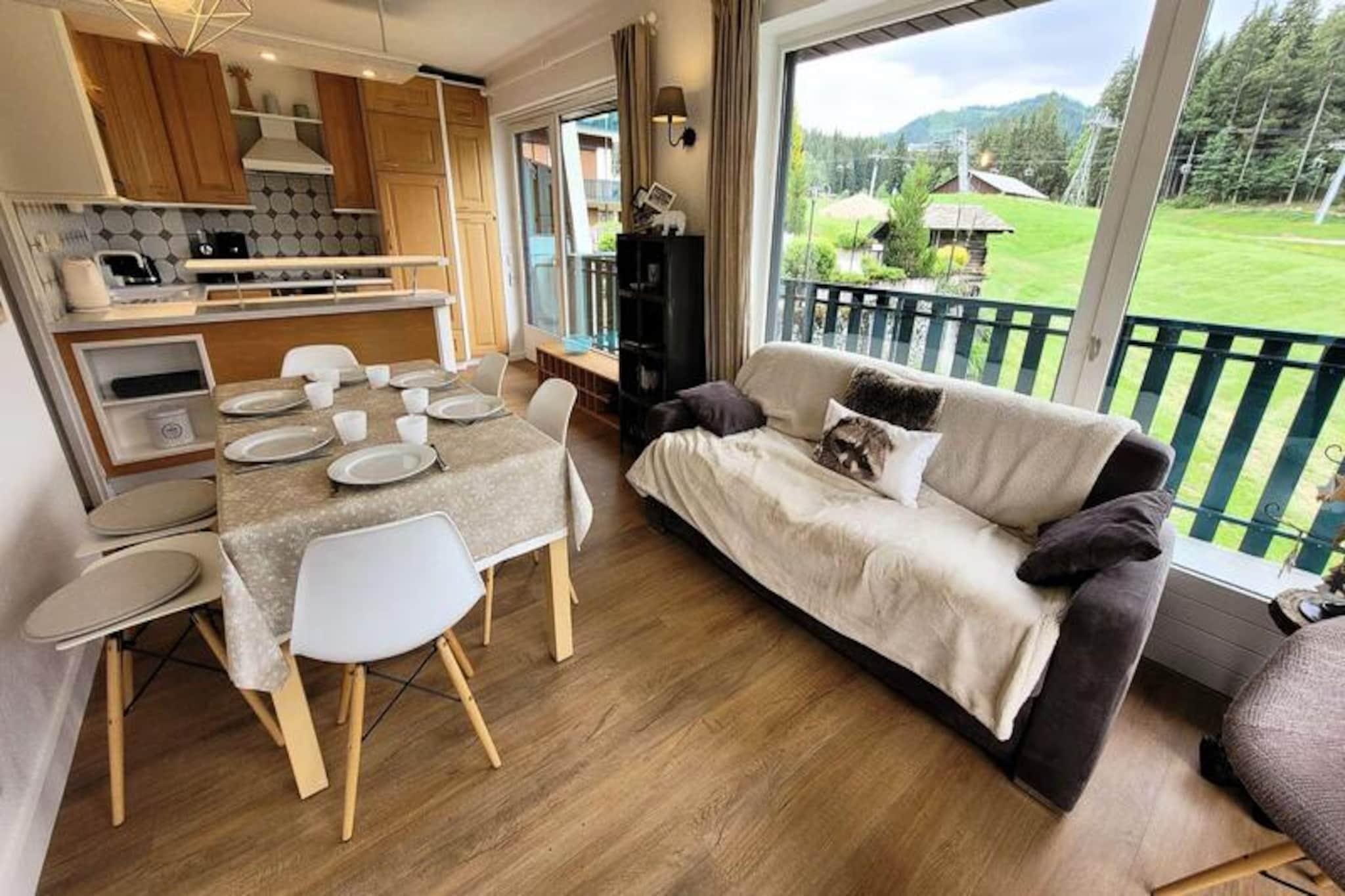 Højt over den charmerende alpelandsby tilbyder Residence Le Grizzli et unikt tilflugtssted, hvor eventyr og afslapning blandes problemfrit. Forestil dig at vågne op til den friske bjergluft og træde direkte ud på skiløjperne fra din hoveddør. Om sommeren inviterer den opvarmede udendørs pool og tennisbanerne dig til at sole dig i solen, mens du nyder panoramaudsigten over de omkringliggende tinder. Dette er en destination, hvor hver årstid bringer sin egen magi. Den 61 m² store lejlighed er badet i naturligt lys og omhyggeligt designet til komfort og stil. Med to soveværelser med eget badeværelse, en rummelig opholdsstue og et fuldt udstyret køkken er den perfekt til familier eller grupper på op til seks personer. Den sydvestvendte 23 m² store balkon er det ideelle sted at slappe af efter en dag på ski eller vandreture og tilbyder en betagende udsigt over pisterne og landsbyen nedenfor. Moderne faciliteter som fiberoptisk Wi-Fi, vaskemaskine/tørretumbler og raclettemaskine sikrer et problemfrit ophold, mens det hyggelige tv-område inviterer dig til at slappe af efter en aktiv dag. Residensen er bekvemt placeret, kun 1,1 km fra landsbyens centrum og skiskole, med butikker og et shuttle-stoppested inden for gåafstand. Om vinteren kan du nyde den uovertrufne ski-in/ski-out-adgang til pister i verdensklasse, mens sommeren forvandler området til et paradis for friluftsentusiaster med vandrestier, tennis og svømning. Uanset om du er her for at klatre gennem uberørt sne eller nyde den alpine sol, lover Residence Le Grizzli en uforglemmelig ferie. Med sin blanding af luksus, bekvemmelighed og fantastisk naturskønhed er det det perfekte valg til din næste bjergferie.