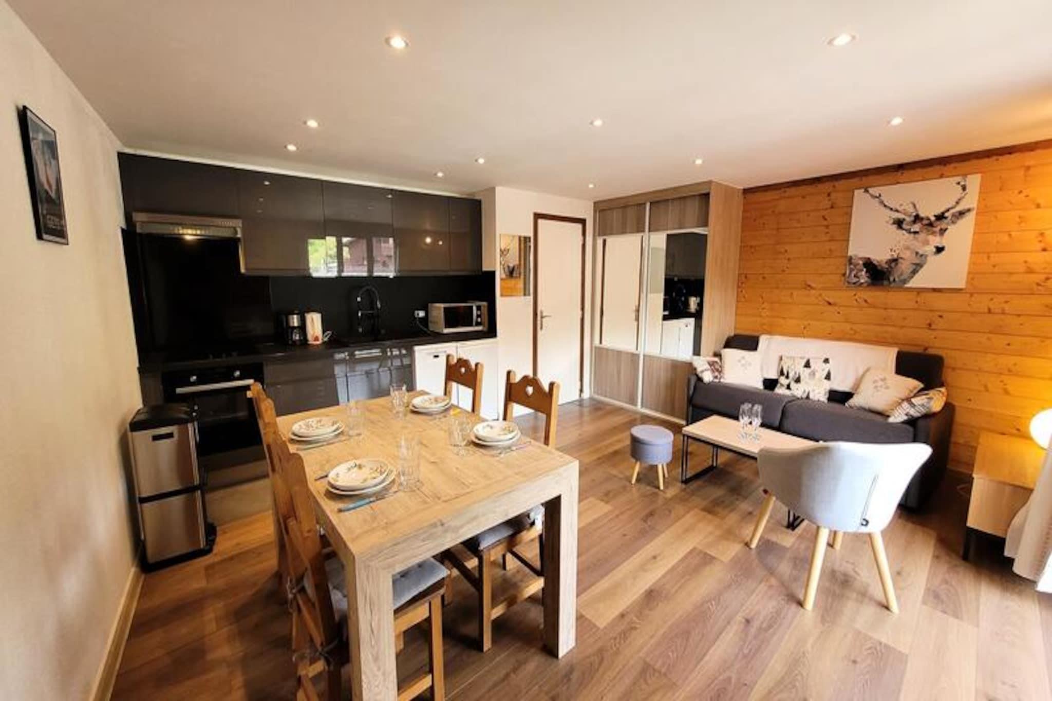 I hjertet af den charmerende gamle landsby Les Gets tilbyder denne dejlige lejlighed en perfekt blanding af alpin tradition og moderne komfort. Kun få skridt fra lokale butikker og en kort gåtur fra Mont Cherys skiløjper, placerer denne bolig dig i en ideel beliggenhed for at udforske de franske alpers skønhed. Chavannes skiområde og det travle feriestedscentrum ligger kun fem minutter væk, hvilket gør det til en bekvem base for både eventyr og afslapning. \n\nBeliggende på anden sal i en malerisk, typisk alpin bolig, udstråler denne nyrenoverede lejlighed varme og praktisk anvendelighed. Den lyse opholdsstue suppleres af et stort, fuldt udstyret moderne køkken, perfekt til at tilberede solide måltider efter en dag på pisterne. Den østvendte balkon inviterer dig til at nyde rolige morgener med mildt solskin og malerisk udsigt. Lejligheden er designet til at rumme op til fire gæster og har en hyggelig entré med en køjeseng, en komfortabel stue med en sovesofa og et funktionelt badeværelse med en håndklædetørrer for ekstra bekvemmelighed.\n\nMed skiløjper kun 200 meter væk og den franske skiskole inden for rækkevidde, er denne beliggenhed et paradis for vintersportsentusiaster. Om sommeren forvandles landsbyen til et pulserende knudepunkt for vandreture, mountainbiking og andre udendørsaktiviteter. Det nærliggende shuttle-stoppested sikrer nem adgang til at udforske de omkringliggende områder, mens nærheden til butikker og restauranter betyder, at du har alt, hvad du behøver, lige ved hånden.\n\nUanset om du søger et fredeligt tilflugtssted eller en aktiv ferie, lover denne hyggelige lejlighed i Les Gets en uforglemmelig alpin oplevelse. Med sin charmerende atmosfære, fremragende beliggenhed og gennemtænkte faciliteter er det det perfekte valg for par, små familier eller venner, der ønsker at fordybe sig i bjergenes magi.