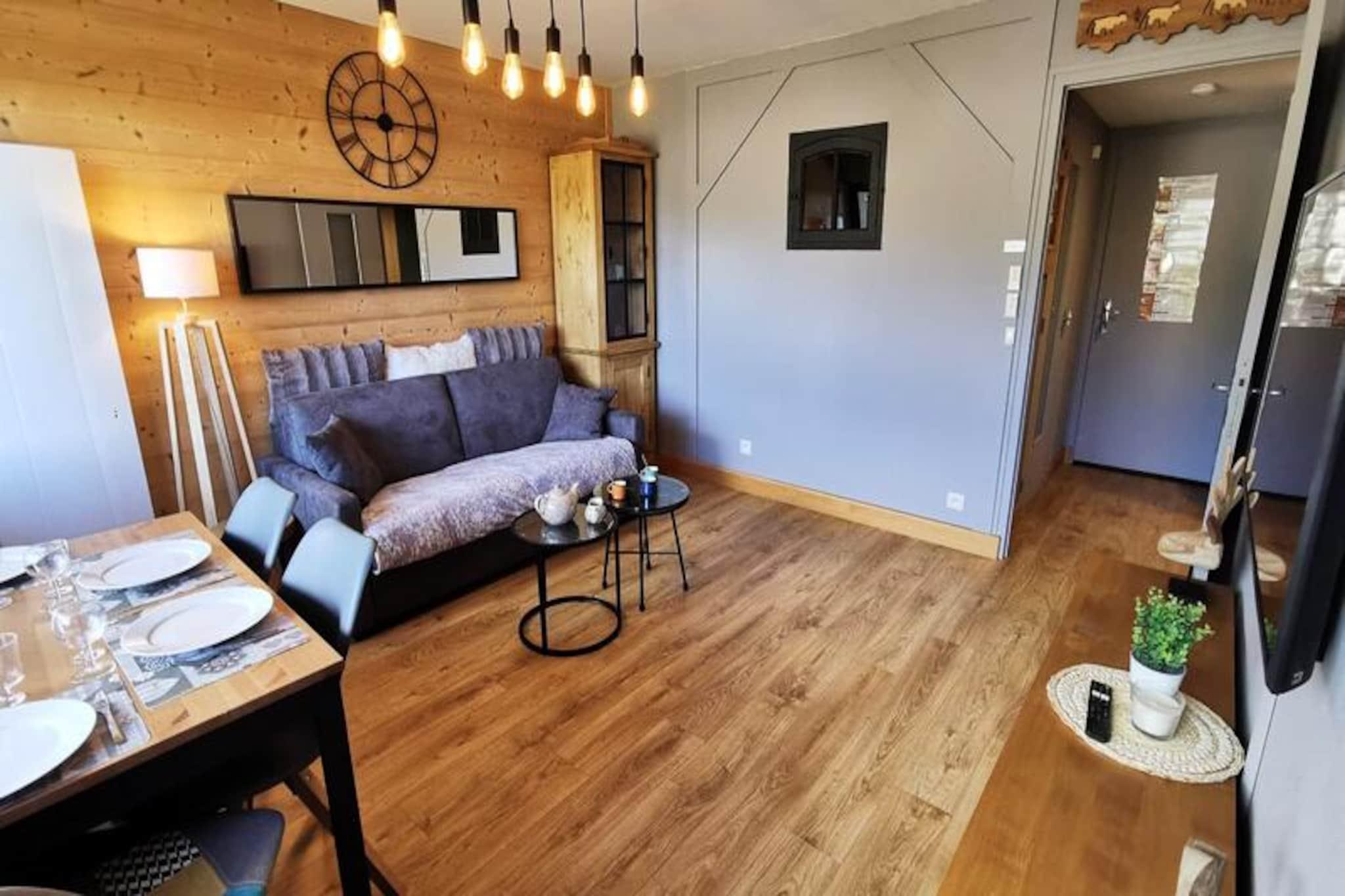 Med en betagende udsigt over Mont Chery og Pic du Marcelly tilbyder denne charmerende studiohytte et roligt bjergtilflugtssted for par eller små familier. Beliggende på første sal i en hyggelig bolig kombinerer dette 30 m² store rum moderne komfort med en rolig atmosfære, perfekt til afslapning efter en dag med alpine eventyr. Den sydvestlige udsigt fylder studioet med naturligt lys, mens den store balkon inviterer dig til at nyde det majestætiske landskab og den friske bjergluft. Uanset om du er her for at stå på ski eller vandre om sommeren, sikrer nærheden til pisterne og lokale faciliteter et problemfrit og mindeværdigt ophold. \n\nIndenfor er studioet omhyggeligt designet til at maksimere komfort og funktionalitet. Entréen har et fuldt udstyret tekøkken, ideelt til at tilberede solide måltider efter en aktiv dag. Stuen kan prale af en komfortabel sovesofa til to og direkte adgang til balkonen, hvilket skaber en hyggelig, men luftig atmosfære. En lukket sovealkove med køjesenge giver et hyggeligt rum til børn eller ekstra gæster. Badeværelset er udstyret med en håndklædetørrer, og det separate toilet øger bekvemmeligheden. Moderne bekvemmeligheder som Wi-Fi, fladskærms-tv og Nespresso-maskine forbedrer dit ophold, mens ekstraudstyr som raclette- og fondue-sæt bringer et strejf af lokalt præg til dine aftener.\n\nBeliggende kun 50 meter fra skiløjperne og 400 meter fra de nærmeste butikker, er alt hvad du behøver inden for rækkevidde. Shuttle-stoppestedet ligger kun 100 meter væk og tilbyder nem adgang til landsbyens centrum og ESF-skiskolen. Om sommeren kan du udforske naturskønne stier eller blot slappe af midt i det fantastiske alpine landskab. Med inkluderet slutrengøring og valgfri linnedservice sikrer denne studiolejlighed en problemfri ferie. Uanset om du søger eventyr eller ro, er dette bjergparadis din port til Alpernes skønhed.