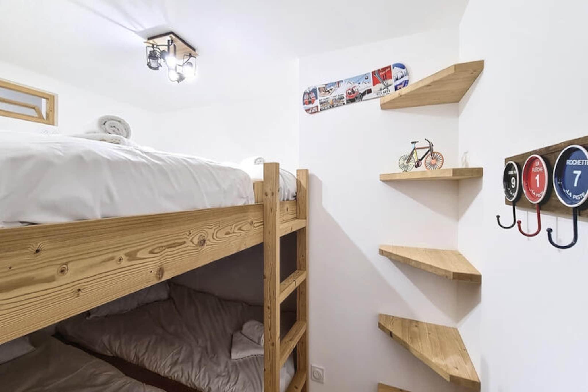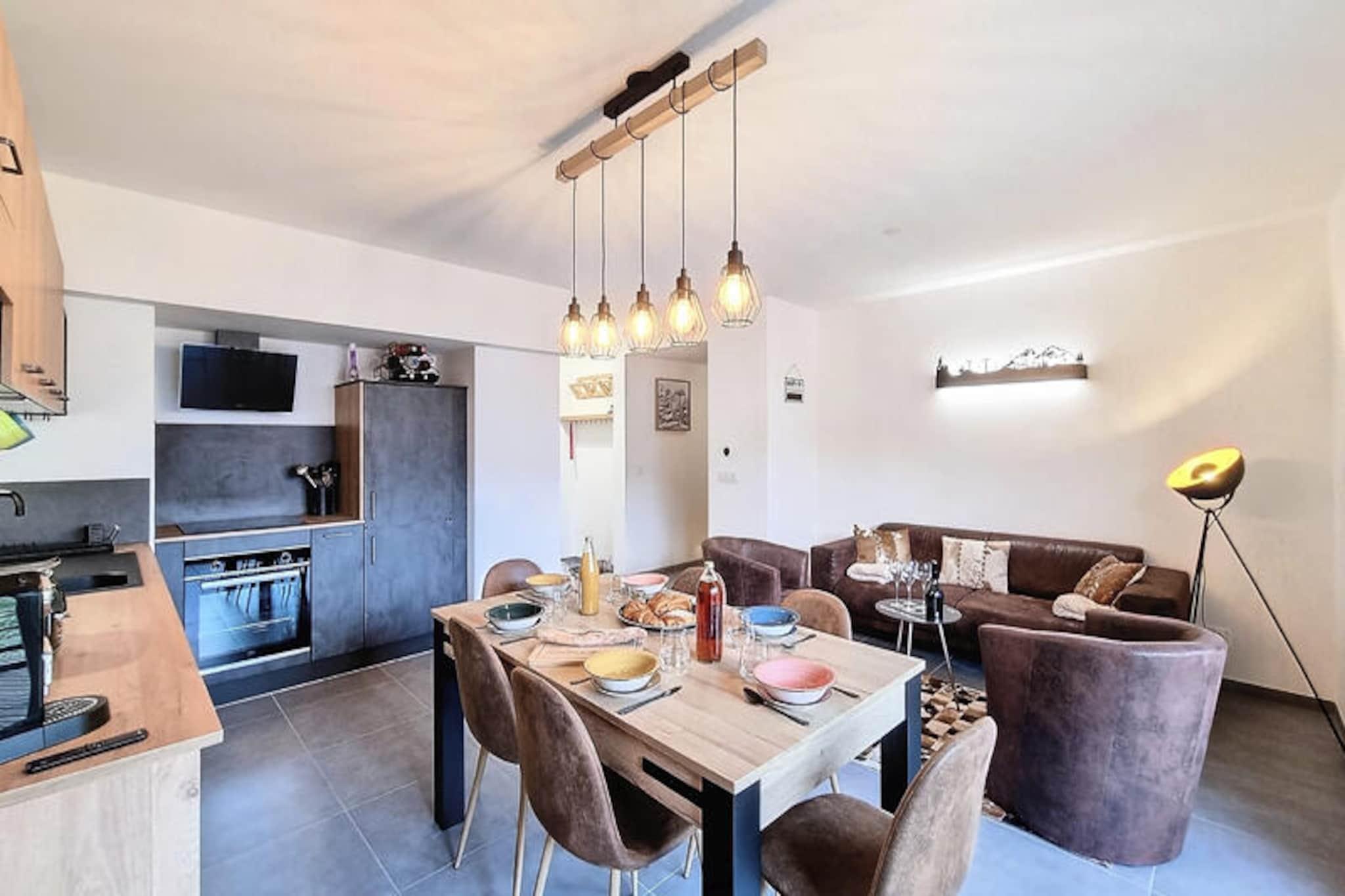 I hjertet af den charmerende alpelandsby Les Gets tilbyder denne moderne lejlighed med 2 soveværelser en perfekt blanding af moderne komfort og bjergcharme. Kun en kort gåtur fra det pulserende bycentrum er den et ideelt tilflugtssted for op til otte gæster, uanset om du søger et vintereventyrland eller en sommerferie. Boligens førsteklasses beliggenhed sikrer nem adgang til skilifterne og de livlige faciliteter i Les Gets, hvilket gør den til et paradis for både friluftsentusiaster og fritidsgæster. \n\nTræd indenfor og oplev et smukt designet rum på 70 m², hvor hver eneste detalje er omhyggeligt udvalgt for din komfort. Den lyse og luftige opholdsstue åbner ud til et fuldt udstyret køkken med avancerede apparater såsom ovn, komfur, køleskab og opvaskemaskine. Samles omkring den hyggelige spiseplads til fælles måltider, eller slap af i den indbydende stue med bløde sofaer og et fladskærms-tv. Lejlighedens balkon tilbyder en fantastisk udsigt over bjergene, perfekt til at nyde den rolige alpine atmosfære. Moderne badeværelser med bruseniche og et dedikeret skirum bidrager til bekvemmeligheden og sikrer et problemfrit ophold i enhver sæson.\n\nUd over lejligheden venter Les Gets med sit udvalg af attraktioner. Om vinteren er skilifterne kun få øjeblikke væk og giver adgang til det vidtstrakte skiområde Portes du Soleil. I de varmere måneder forvandles landsbyen til et knudepunkt for vandreture, mountainbiking og udforskning af de betagende landskaber i de franske alper. Bymidten fyldes med charmerende butikker, hyggelige caféer og gourmetrestauranter, der tilbyder en smag af autentisk Savoyard-kultur.\n\nUanset om du snorkler gennem sneklædte pister, vandrer gennem alpine enge eller blot slapper af i komforten af ??denne elegante lejlighed, lover dit ophold i Les Gets uforglemmelige minder. Oplev bjergenes magi i enhver sæson fra dette exceptionelle hjem væk fra hjemmet.