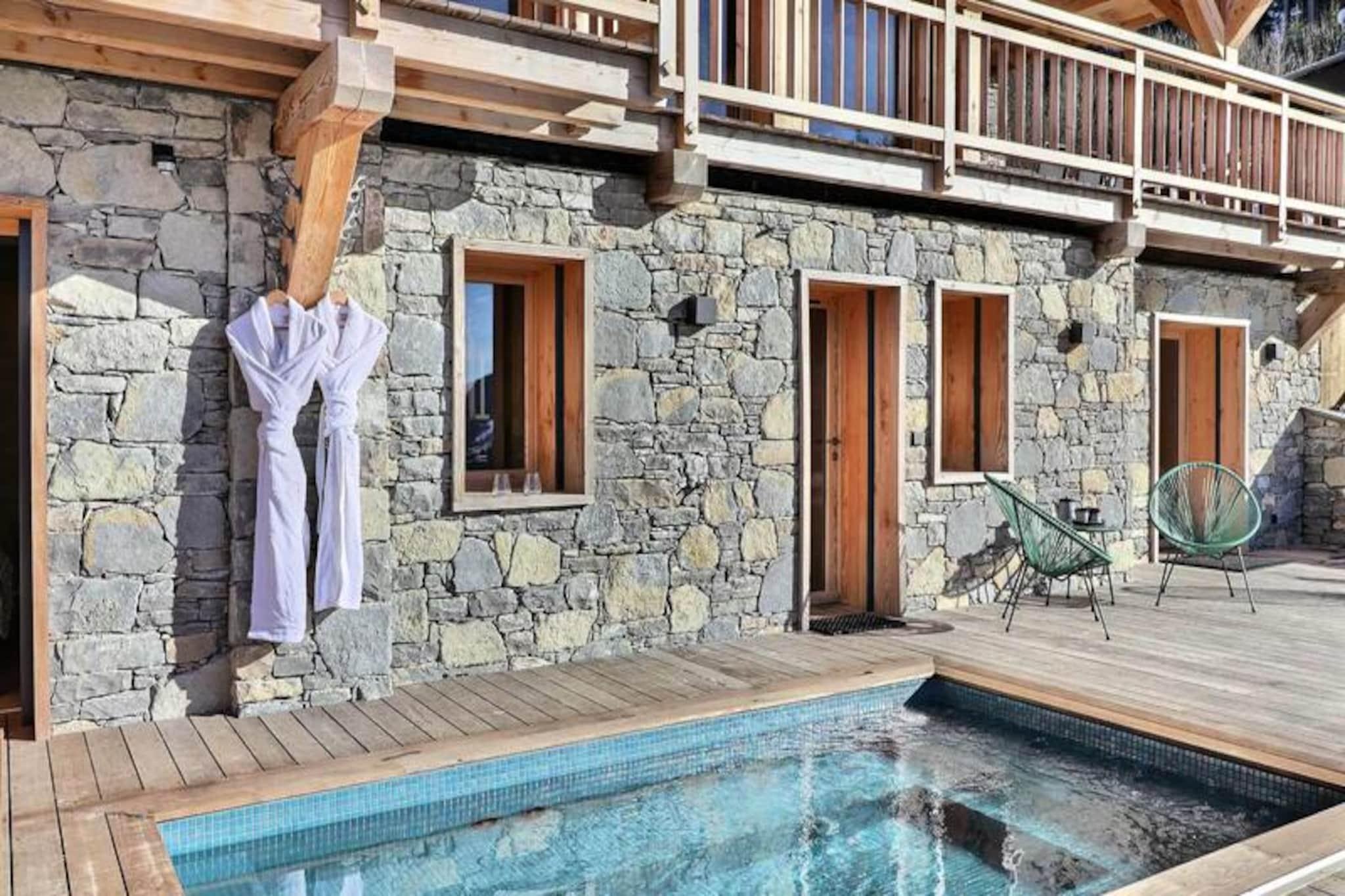 Højt over den charmerende landsby Les Gets tilbyder denne exceptionelle hytte et uovertruffent alpint tilflugtssted, hvor moderne luksus møder tidløs bjergcharme. Med en betagende panoramaudsigt over de omkringliggende tinder og kun 10 minutters gang fra landsbyens centrum er denne ejendom perfekt beliggende til både afslapning og eventyr. For ekstra bekvemmelighed sikrer en nærliggende shuttle nem adgang til pisterne og byen, hvilket gør den til en ideel base for at udforske det berømte skiområde Portes du Soleil. Træd indenfor og oplev en oase af komfort og elegance. Hytten har plads til op til 12 gæster fordelt på sine gennemtænkt designede områder. Stueetagen byder dig velkommen med et rummeligt skirum og en luksuriøs master suite med en kingsize-seng, privat balkon og et ensuite badeværelse. Hovedetagen kan prale af en stor opholdsstue med gulv-til-loft-vinduer, en hyggelig gaspejs og en hjemmebiograf til filmaftener. Et fuldt udstyret køkken åbner ud til en terrasse med grill, perfekt til at nyde måltider med udsigt. Haveetagen tilbyder tre soveværelser med eget badeværelse, et sovesal til børn og et familiebadeværelse, alle med adgang til terrassen og den udendørs jacuzzi. Efter en dag på pisterne eller vandrestierne kan du slappe af i saunaen eller tage et sog i jacuzzi, mens du nyder den snedækkede udsigt. Chaleten har også et poolbord, der kan laves om til et bordtennisbord, hvilket sikrer sjov for alle aldre. Med faciliteter som en privat garage, vaskeri og concierge-service, der tilbyder alt fra liftkort til private kokke, er hver eneste detalje designet til at forbedre dit ophold. Uanset om du søger spændende udendørseventyr eller rolige øjeblikke med afslapning, lover denne chalet en uforglemmelig oplevelse i hjertet af Alperne. Fra skiløb og snowboarding om vinteren til vandreture, mountainbiking og golf om sommeren tilbyder Les Gets aktiviteter året rundt for alle aldre. Lad dette luksuriøse tilflugtssted være din port til Portes du Soleils vidundere.