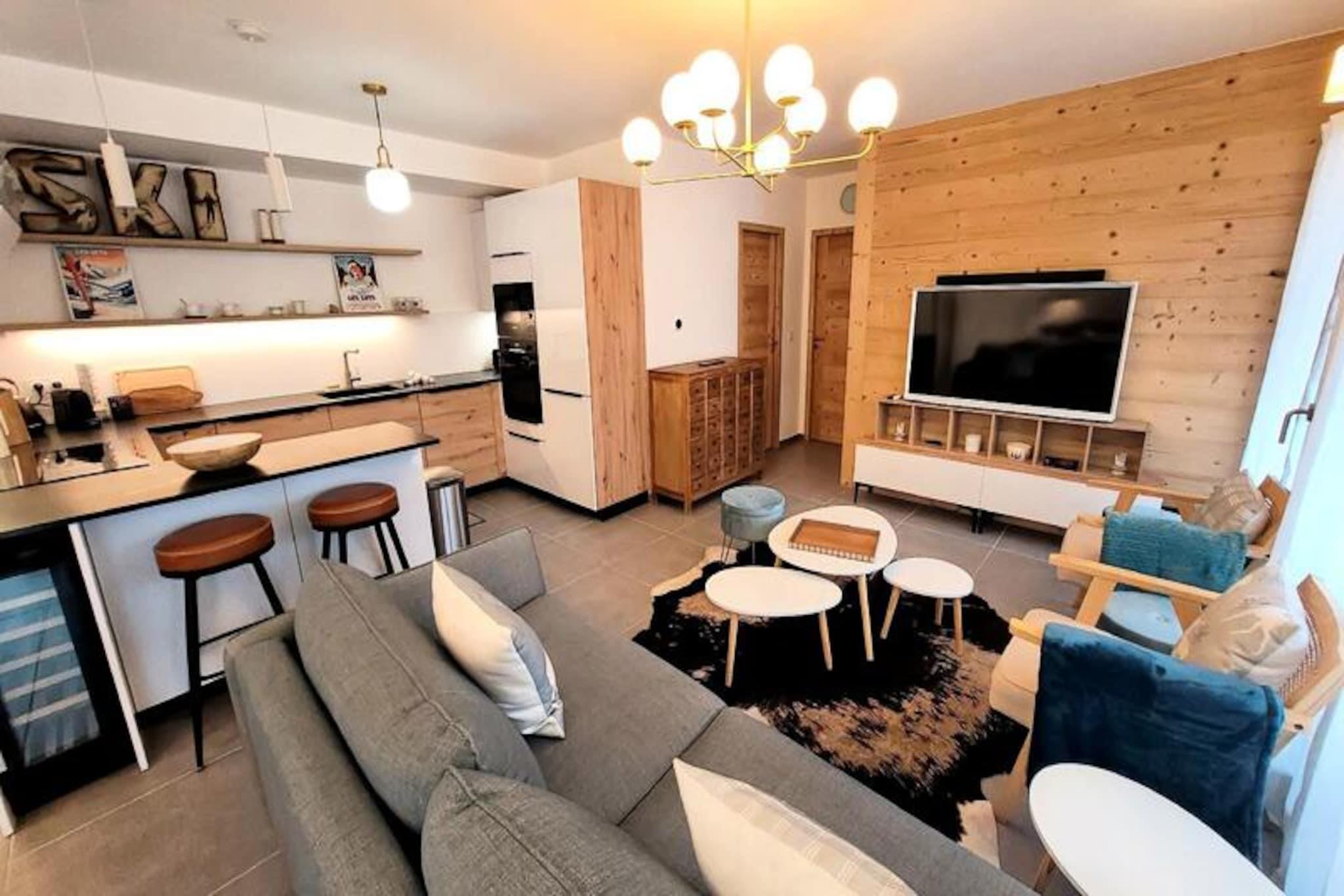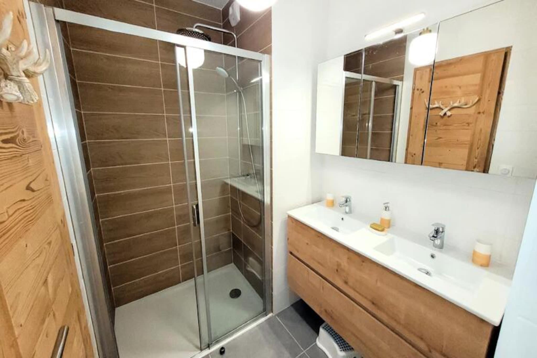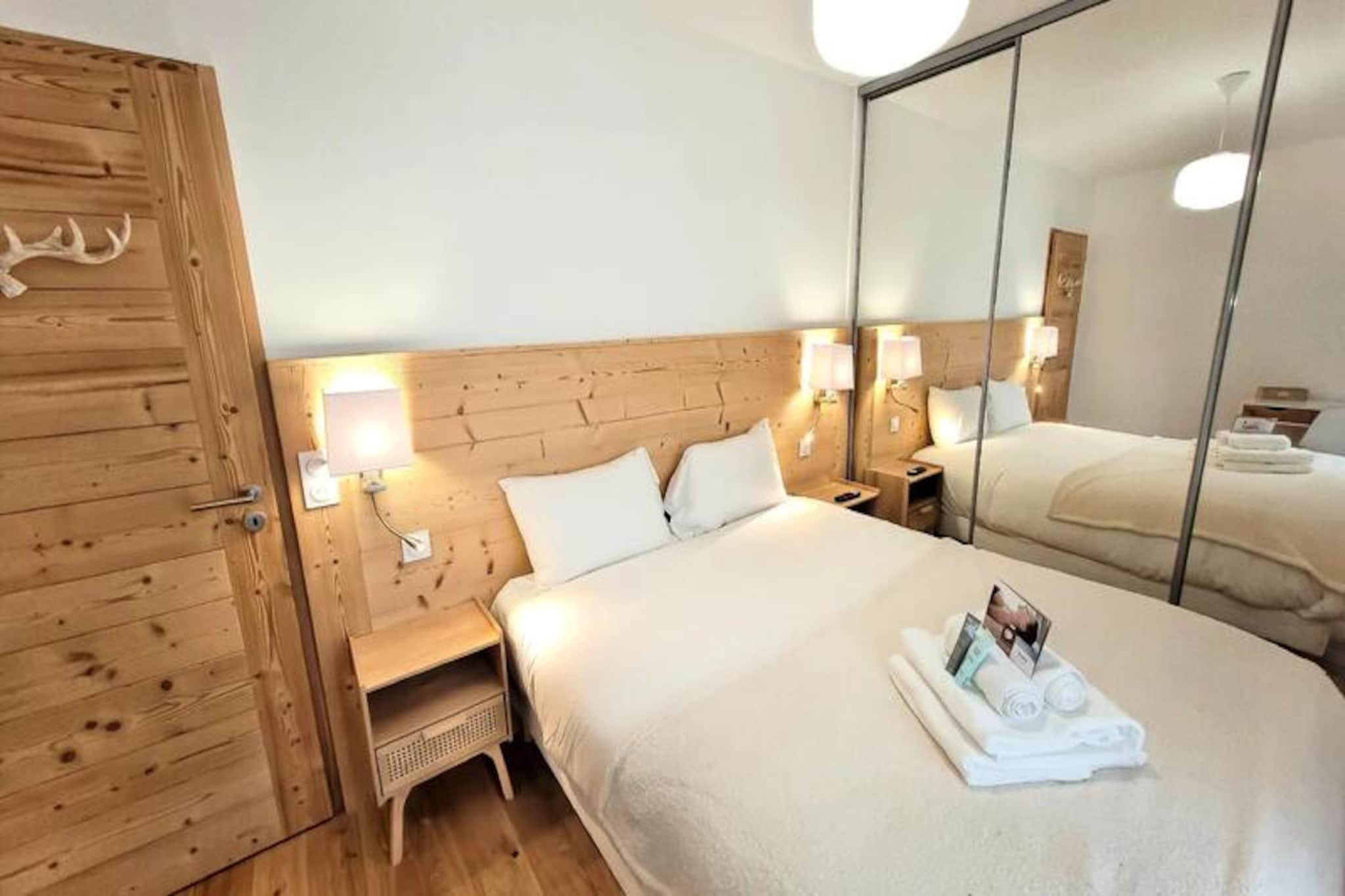 I hjertet af de charmerende franske alper tilbyder denne moderne lejlighed i La Croisette-residensen en perfekt blanding af komfort og bekvemmelighed. Residensen, der blev færdiggjort i 2024, er ideelt placeret kun 300 meter fra byens centrum og få skridt fra det livlige torv. Med sin sydøstlige beliggenhed bades lejligheden i naturligt lys hele dagen, hvilket skaber en varm og indbydende atmosfære til din alpine ferie. Uanset om du er her for at stå på ski på de nærliggende pister eller blot slappe af, lover denne residens et mindeværdigt ophold. \n\nLejligheden er 64 m² stor og er omhyggeligt designet til at rumme op til seks gæster, med en ideel kapacitet til fire. Stuen er lys og rummelig med et fuldt udstyret køkken, spiseplads og en hyggelig stue med tv. Franske døre fører ud til en generøs terrasse på 30 m², perfekt til at nyde din morgenkaffe eller slappe af efter en dag med eventyr. Soveværelset har en komfortabel dobbeltseng, tv og direkte adgang til terrassen, mens det andet soveværelse har to enkeltsenge, der kan kombineres. Yderligere sovepladser inkluderer en sovesofa i opholdsstuen. To moderne brusebadeværelser sikrer bekvemmelighed for alle gæster.\n\nDenne bolig ligger kun 600 meter fra de nærmeste skiløjper og 700 meter fra den franske skiskole og er et paradis for vintersportsentusiaster. Om sommeren forvandles regionen til et paradis for vandrere og naturelskere med naturskønne stier og betagende udsigter. Vigtige faciliteter såsom butikker, shuttlebusser og lægehjælp er alle inden for gåafstand, hvilket gør dit ophold stressfrit og behageligt.\n\nUanset om du søger eventyr eller ro, er denne lejlighed din port til det bedste af de franske alper. Med faciliteter af høj kvalitet, betænksom service og en førsteklasses beliggenhed er det det perfekte valg til din næste ferie.