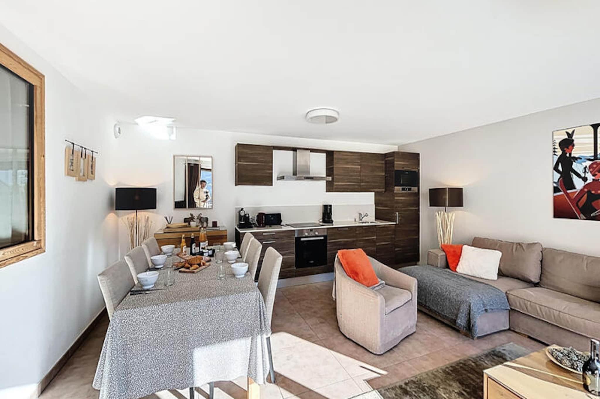 I det maleriske Perrières-kvarter, hvor Alpernes charme møder moderne komfort, inviterer denne fantastiske lejlighed dig til en uforglemmelig bjergferie. Forestil dig at vågne op til den friske bjergluft og træde ud på din private terrasse for at nyde den betagende udsigt over pisterne, en perfekt baggrund for din morgenkaffe eller en aften under stjernerne. Denne rolige, men tilgængelige beliggenhed tilbyder det bedste fra begge verdener: ro og nærhed til eventyr. Lejligheden er designet til at rumme op til seks gæster og kan prale af et varmt og indbydende interiør med alle de faciliteter, du har brug for til et behageligt ophold. Den rummelige opholdsstue er perfekt til hyggelige aftener, mens det fuldt udstyrede køkken giver dig mulighed for at tilberede solide måltider efter en dag med udforskning. Med sin gennemtænkte indretning og moderne detaljer sikrer dette tilflugtssted en afslappende og problemfri ferie for familier, par eller venner. Kun fem minutters gang fra skilifterne har du hurtig og nem adgang til pisterne, hvilket gør det til en ideel base for skientusiaster. I de varmere måneder forvandles de omkringliggende stier og alpine landskaber til et vandreparadis. Uanset om du er her for at suse gennem frisk puddersne eller udforske regionens naturlige skønhed, tilbyder Perrières-kvarteret uendelige muligheder for udendørs eventyr. Vælg denne lejlighed til din næste ferie, og skab varige minder i hjertet af de franske alper. Med sin uovertrufne beliggenhed, fantastiske udsigt og hyggelige atmosfære er det de perfekte rammer for en foryngende ferie når som helst på året.