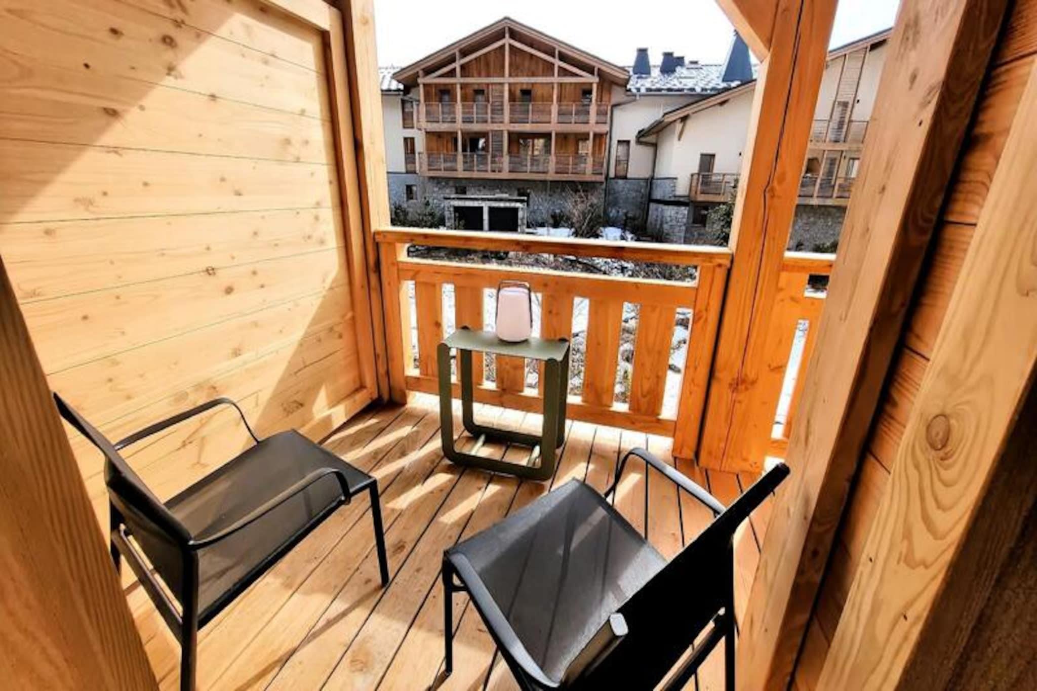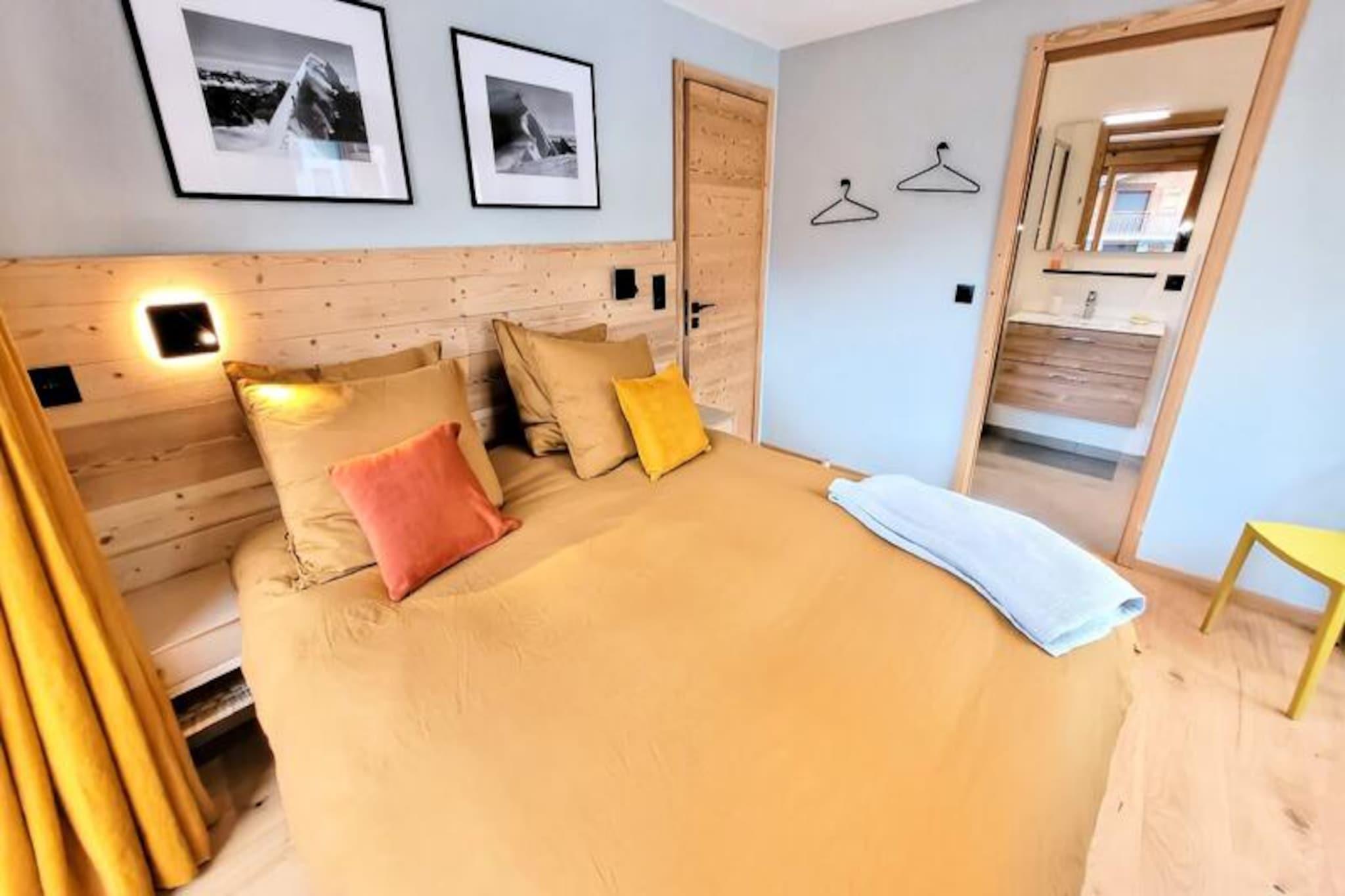 I hjertet af de maleriske franske alper, hvor roen fra snedækkede tinder møder moderne komfort, tilbyder Flocon Bleu Residence en rolig oase kun få skridt fra det pulserende markedsplads. Denne charmerende bolig, bygget i 2025, kombinerer moderne design med alpin varme og skaber det perfekte tilflugtssted for familier og venner, der søger en mindeværdig bjergferie. Forestil dig at vågne op til frisk bjergluft og en betagende udsigt, klar til at udforske regionens vidundere. \n\nIndvendigt kan lejligheden prale af en gennemtænkt planløsning, der blander elegance og funktionalitet. Med to soveværelser med eget badeværelse, en hyggelig sovekabine og en rummelig stue, der åbner ud til en privat balkon, indbyder hvert hjørne til afslapning. Det fuldt udstyrede køkken, komplet med Nespresso-kaffemaskine, induktionskogeplade og opvaskemaskine, sikrer, at du har alt, hvad du behøver for at tilberede solide måltider efter en dag med eventyr. Moderne faciliteter som Wi-Fi, vaskemaskine/tørretumbler og individuel varmepumpeopvarmning bidrager til bekvemmeligheden, mens den underjordiske parkeringskælder og skiboksen forenkler dit ophold. \n\nBeliggende kun 400 meter fra de nærmeste skiløjper og den berømte ESF franske skiskole, er denne bolig ideel for vintersportsentusiaster. Om sommeren forvandles regionen til et paradis for vandrere og naturelskere, med stier, der snor sig gennem frodige landskaber og betagende udsigter. Nærliggende butikker, restauranter og shuttle-services sikrer, at du altid er forbundet med den livlige landsbyatmosfære. \n\nUanset om du står på ski ned ad uberørte pister eller nyder en stille aften på balkonen med en varm drink, inviterer Flocon Bleu Residence dig til at skabe varige minder i hjertet af Alperne. En perfekt blanding af charme, komfort og bekvemmelighed venter dig her.