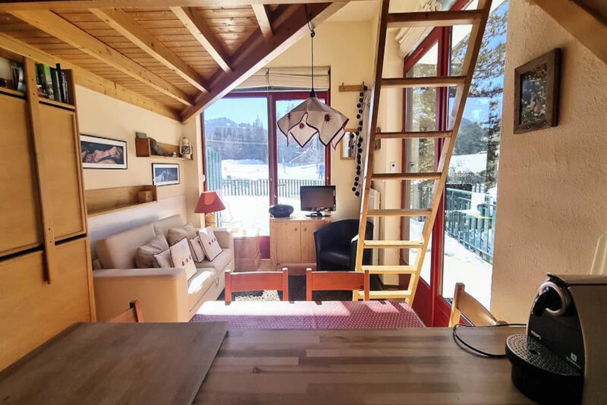 I hjertet af de franske alper, hvor snedækkede tinder møder endeløse eventyr, tilbyder denne charmerende lejlighed på 27 m² i Grizzli-residensen et hyggeligt tilflugtssted for op til fire gæster. Forestil dig at vågne op til den friske bjergluft og træde direkte ud på pisterne, da denne ejendom kan prale af uovertruffen ski-in, ski-out adgang for vintersportsentusiaster. Uanset om du er her for at stå på ski, vandre eller blot nyde den alpine atmosfære, er denne lejlighed din perfekte base. Indenfor byder lejligheden dig velkommen med en lys og indbydende opholdsstue, komplet med en behagelig sofa, hvor du kan slappe af efter en aktiv dag. Det åbne køkken er fuldt udstyret, så du kan tilberede solide måltider til at dele med dine kære. Gå ud på balkonen for at nyde den fantastiske udsigt over de omkringliggende bjerge og lad Alpernes ro skylle over dig. Bekvemmelighed er lige ved hånden med privat parkering tilgængelig ved residensen, hvilket gør din ankomst og daglige udflugter ubesværede. Ud over pisterne tilbyder Les Gets en pulserende landsbyatmosfære med charmerende butikker, restauranter og afterski-muligheder at udforske. I de varmere måneder forvandles området til et paradis for vandrere og mountainbikere med stier, der snor sig gennem betagende landskaber. Uanset om du søger spændende udendørseventyr eller en fredelig bjergflugt, kombinerer denne lejlighed moderne komfort med en uovertruffen beliggenhed og lover uforglemmelige minder i enhver sæson.
