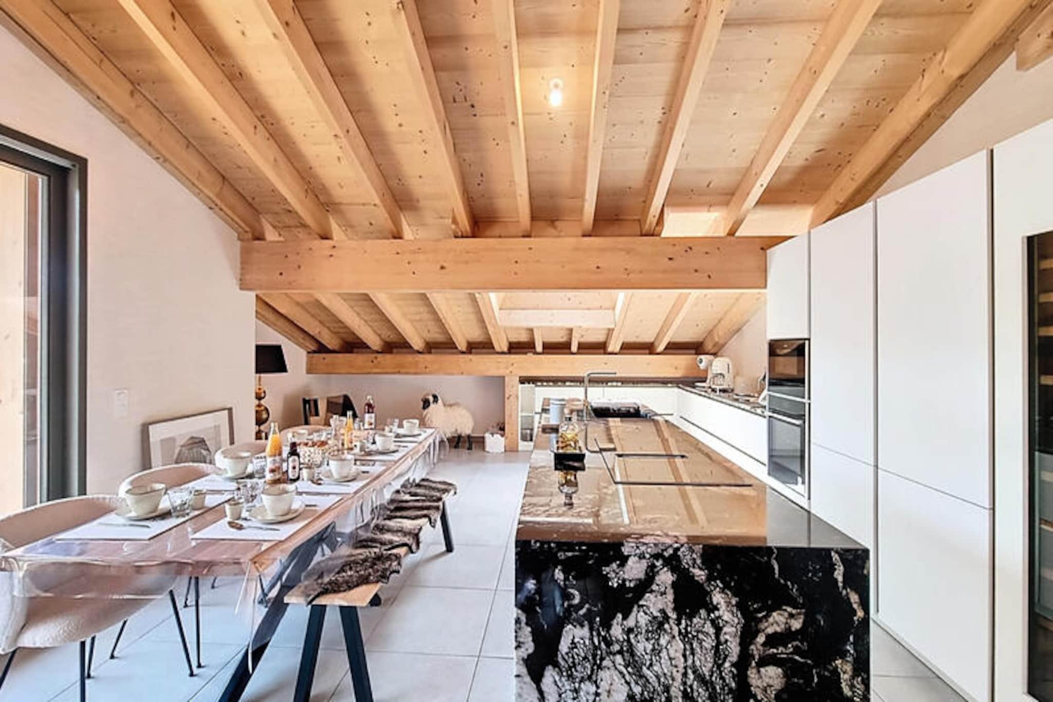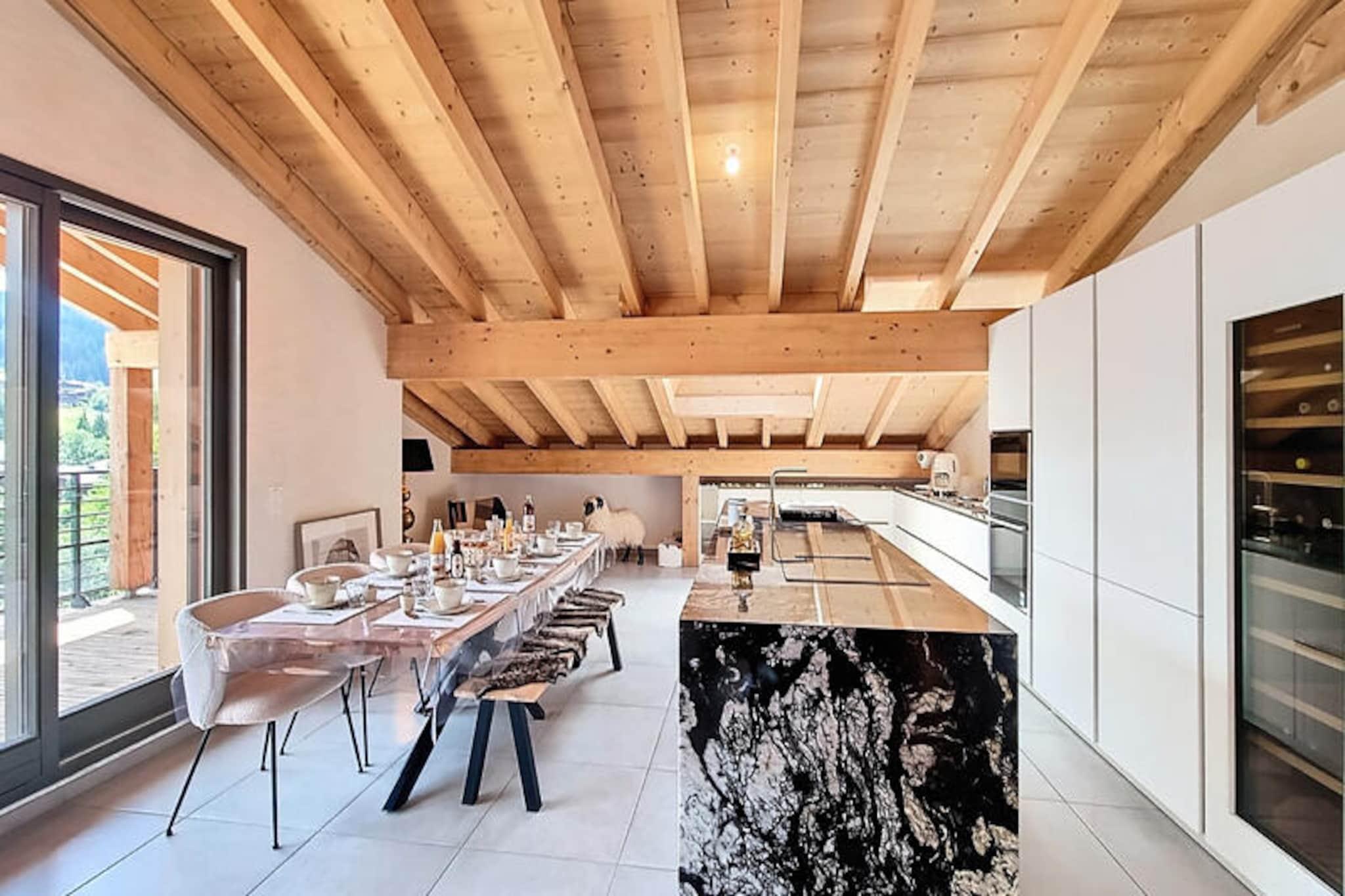 I hjertet af den maleriske landsby Les Gets tilbyder denne fantastiske lejlighed på 90 m² en harmonisk blanding af moderne elegance og alpin charme, hvilket skaber det perfekte tilflugtssted for familier og grupper på op til otte personer. Forestil dig at vågne op til den friske bjergluft, omgivet af en betagende udsigt over de franske alper, og træde ind i en verden af ??afslapning og eventyr. Uanset om du er her for vintersport eller sommervandreture, lover denne ejendom en uforglemmelig flugt. \n\nLejligheden kan prale af fire smukt designede soveværelser, herunder et med en hyggelig køjeseng og tre med bløde dobbeltsenge, der sikrer afslappende nætter for alle. Med tre badeværelser - to med brusere og et med et luksuriøst badekar - finder du rigelig plads til at slappe af efter en dag med udforskning. Det åbne køkken i amerikansk stil er fuldt udstyret med moderne apparater, herunder køleskab, fryser, opvaskemaskine, ovn, mikrobølgeovn, kaffemaskine og elkedel, hvilket gør det nemt at tilberede solide måltider til at nyde i den indbydende spiseplads. Wi-Fi og privat parkering bidrager til bekvemmeligheden, mens de elegante møbler skaber en varm og indbydende atmosfære. \n\nLejlighedens førsteklasses beliggenhed ligger kun 280 meter fra Carrefour Montagne og 550 meter fra Chavannes-svævebanen, hvilket sikrer nem adgang til butikker, skilifter og offentlig transport. Les Gets er en pulserende landsby med en rig alpin kulturarv, der tilbyder et udvalg af restauranter, butikker og aktiviteter til enhver sæson. Om vinteren lokker pisterne med uberørt sne, mens sommeren forvandler regionen til et paradis for vandrere og cyklister. \n\nUanset om du søger spændende eventyr eller fredelige øjeblikke omgivet af natur, er denne lejlighed din port til det bedste af Les Gets. Med sine gennemtænkte faciliteter og uovertrufne beliggenhed er det det ideelle valg til at skabe dyrebare minder i hjertet af Alperne.