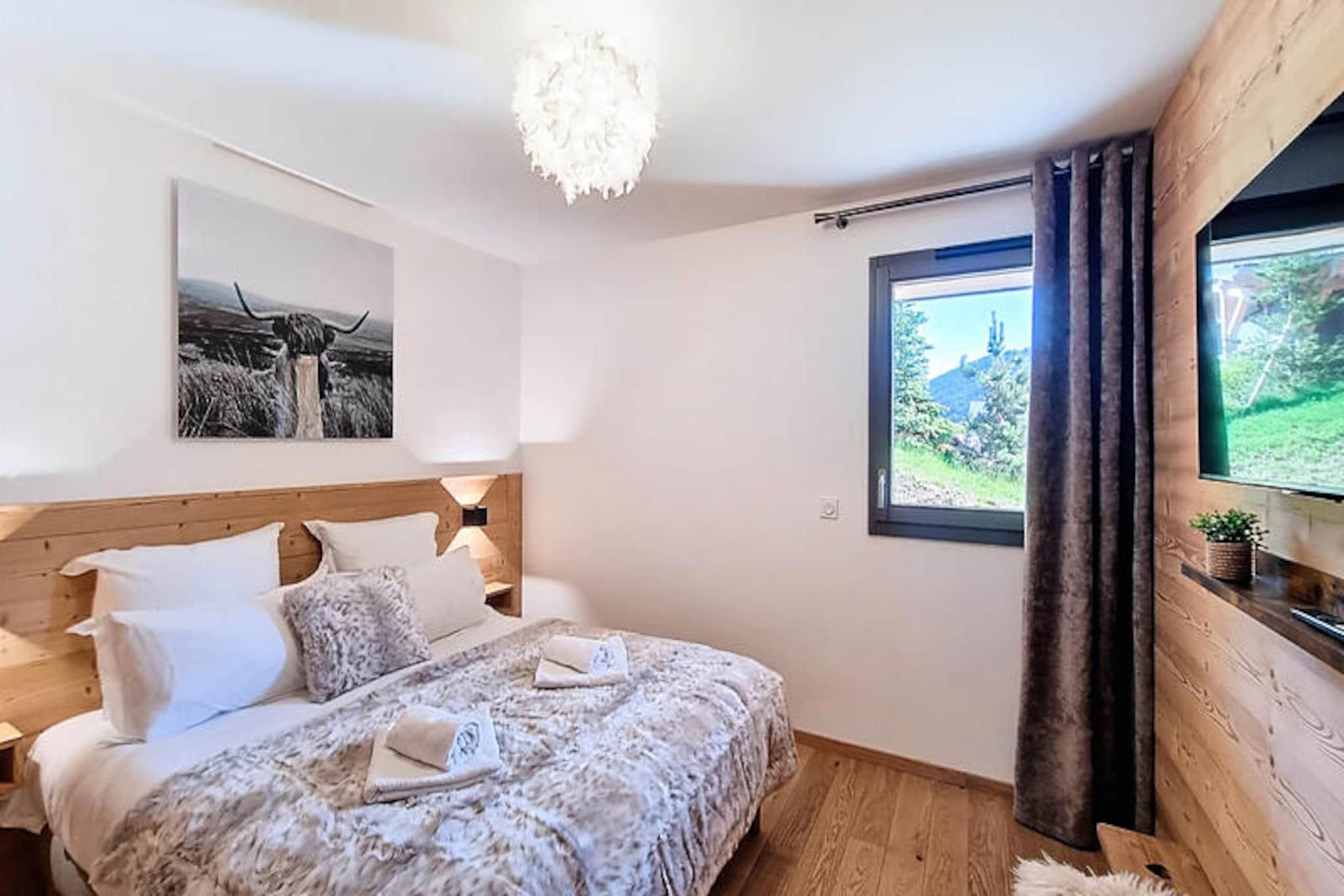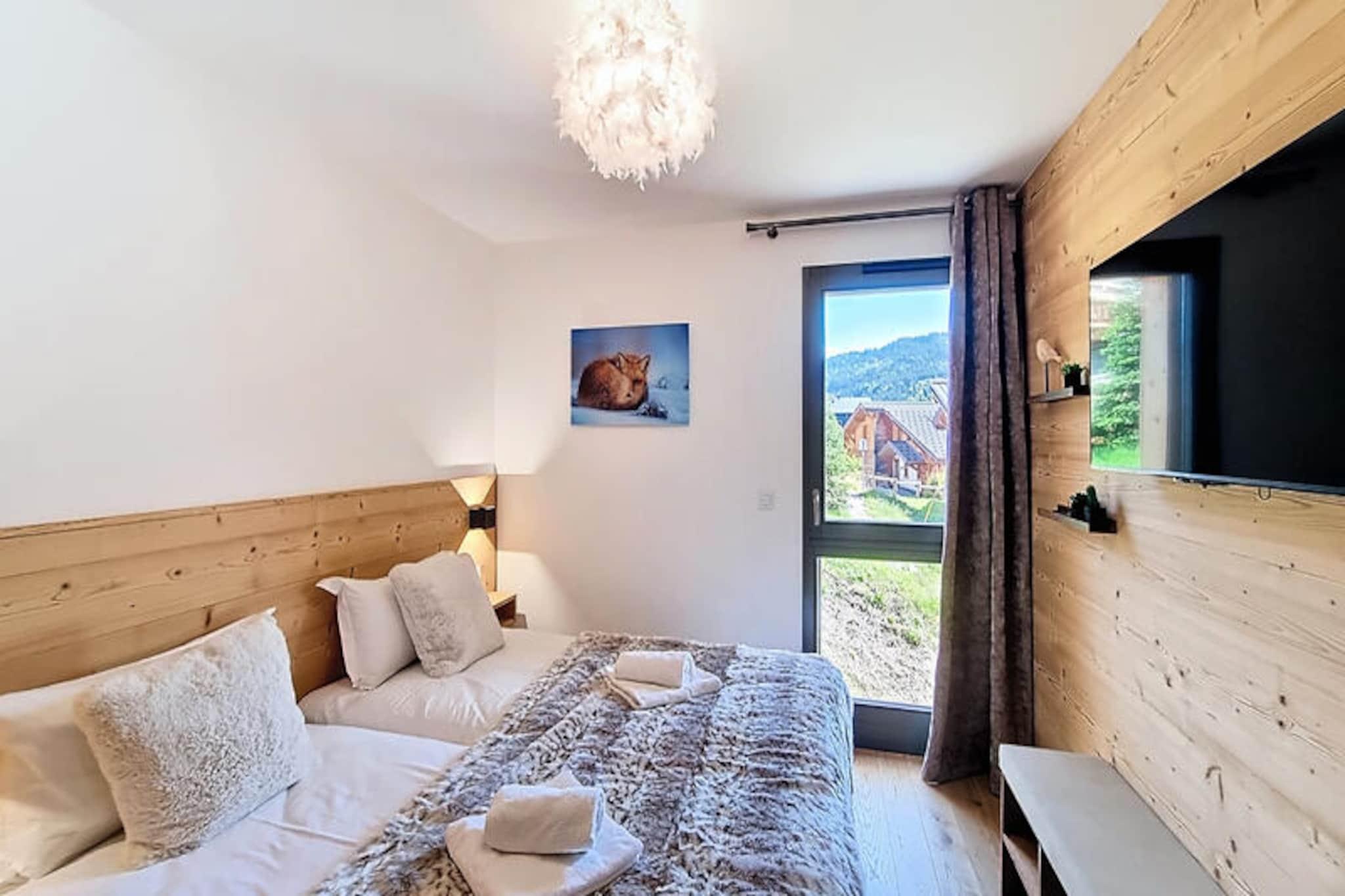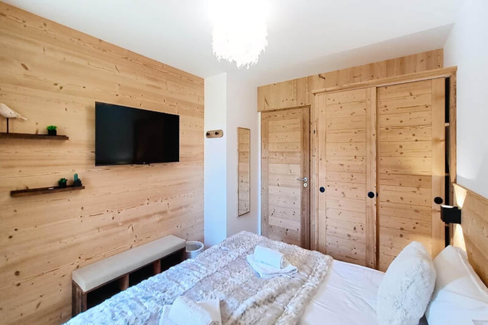 I den maleriske bjerglandsby Les Gets tilbyder denne dejlige lejlighed på 54 m² et perfekt tilflugtssted for familier og venner, der søger både eventyr og afslapning. Med sin blanding af moderne komfort og alpin charme lover den et uforglemmeligt ophold i hjertet af de franske alper. Forestil dig at vågne op til frisk bjergluft og fredfyldt udsigt, klar til at udforske de fantastiske omgivelser. \n\nLejligheden har komfortabel plads til op til fire gæster med to indbydende soveværelser - det ene med en blød dobbeltseng og det andet med to hyggelige enkeltsenge. Det åbne køkken er fuldt udstyret med alt hvad du behøver for at tilberede lækre måltider, herunder køleskab, ovn, opvaskemaskine, mikrobølgeovn, Nespresso-kaffemaskine og meget mere. Efter en dag med skiløb eller vandreture kan du slappe af i opholdsstuen med tre fjernsyn eller gå ud på balkonen for at nyde den rolige atmosfære. Et moderne badeværelse med bruser sikrer din komfort, mens privat overdækket parkering med en ladestation øger bekvemmeligheden for dem, der rejser i bil. \n\nBeliggende kun 550 meter fra Chavannes-skilifterne og en kort gåtur fra det pulserende bycentrum, placerer denne lejlighed dig i hjertet af Les Gets' aktiviteter. Uanset om du er på skitur om vinteren eller udforsker naturskønne stier om sommeren, er alt inden for rækkevidde. Selve landsbyen kan prale af charmerende butikker, hyggelige caféer og en indbydende atmosfære, der indfanger essensen af ??alpint liv. \n\nVælg denne hyggelige lejlighed til din næste ferie og skab varige minder omgivet af de franske alpers skønhed. Uanset om du er her for at stå på ski, vandre eller blot slappe af, er dette den perfekte base for din bjergferie.