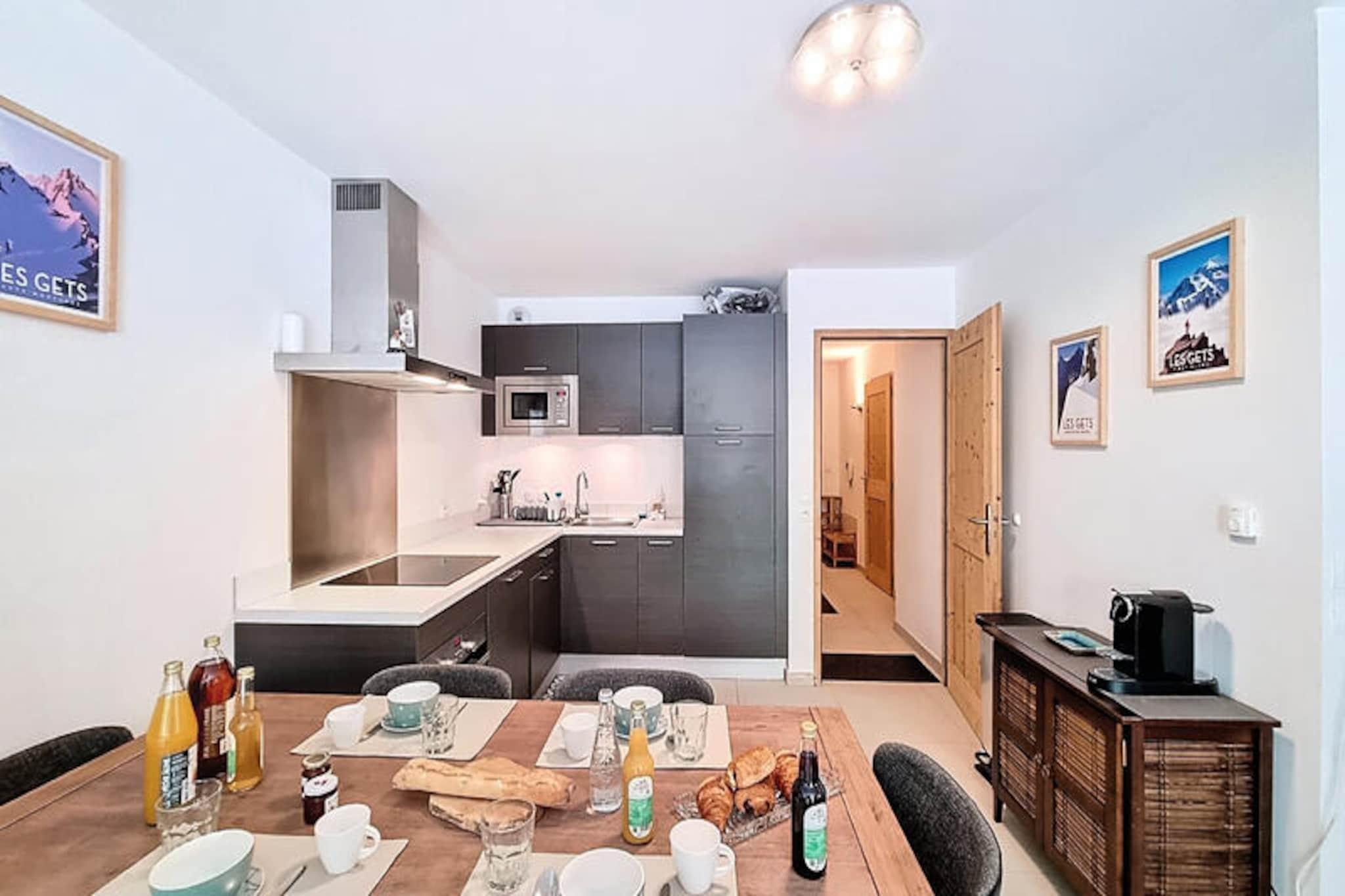 I den maleriske landsby Les Gets, hvor charmen fra de franske alper møder moderne komfort, tilbyder denne dejlige lejlighed på 64 m² et roligt tilflugtssted for både familier og bjergentusiaster. Forestil dig at vågne op til den friske alpeluft, træde ud på din private balkon og nyde den betagende udsigt over de omkringliggende tinder - en perfekt start på dagen i disse idylliske omgivelser. \n\nLejligheden er designet til at rumme op til fire gæster og har to hyggelige soveværelser: et med en blød dobbeltseng og det andet med to komfortable enkeltsenge. Det fuldt udstyrede køkken inviterer dig til at tilberede solide måltider, komplet med køleskab, ovn, opvaskemaskine, kaffemaskine og alt det redskab, du har brug for. Efter en dag med eventyr kan du slappe af i den indbydende opholdsstue med WiFi og tv til din underholdning. Den private overdækkede parkering sikrer, at dit køretøj er sikkert og let tilgængeligt under hele dit ophold.\n\nDenne ejendom ligger kun 400 meter fra Perrières-stoleliften og er en ideel base for at udforske de omfattende skiløjper om vinteren eller vandre- og mountainbike-stier om sommeren. Et Sherpa-supermarked ligger bekvemt placeret kun 350 meter væk, og landsbyens centrum tilbyder et udvalg af restauranter, butikker og tjenester, der vil forbedre dit ophold.\n\nUanset om du søger spændende udendørsaktiviteter eller fredelige øjeblikke omgivet af natur, tilbyder denne lejlighed den perfekte balance mellem afslapning og eventyr. Book din ferie til Les Gets i dag, og skab uforglemmelige minder i hjertet af Alperne.