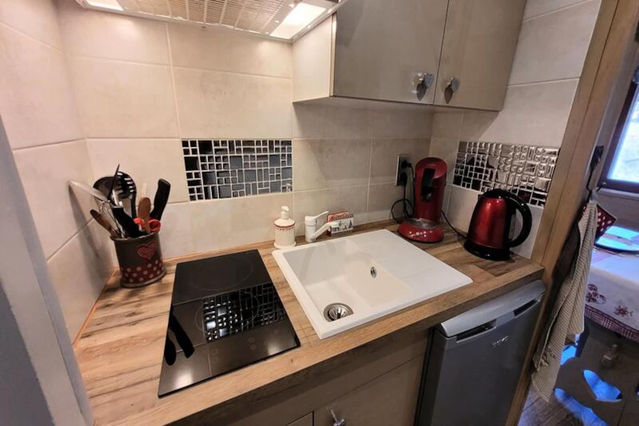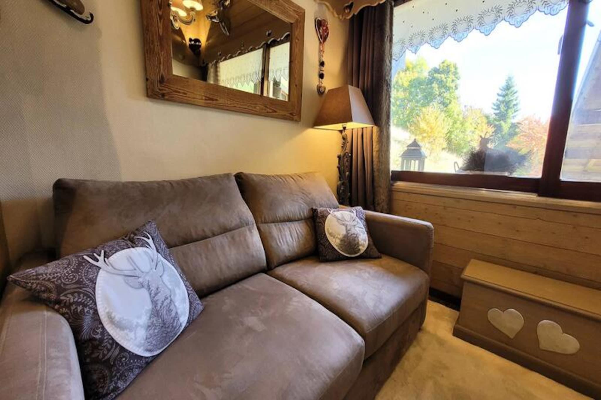 Højt over den charmerende landsby Les Gets tilbyder dette dejlige mezzanin-studie et hyggeligt tilflugtssted for par eller små familier, der søger en intim alpin flugt. Med en betagende udsigt over de omkringliggende tinder og kun en kort gåtur fra Mont Chéry-svævebanen kombinerer denne bolig bekvemmelighed og komfort i hjertet af de franske alper. Uanset om du er her for at stå på ski, vandre eller blot nyde den fredfyldte bjergatmosfære, er dette studie på øverste etage den perfekte base for dine eventyr. \n\nStudioet er omhyggeligt designet til to gæster og har et soveområde på mezzanin med en komfortabel dobbeltseng og garderobe, der sikrer afslappende nætter efter aktive dage. Stue-/spisestuen har en sovesofa, spisebord og et kompakt tekøkken udstyret med fornødenheder som mikrobølgeovn, brødrister og Senseo-kaffemaskine med kapsler. Det moderne brusebad tilføjer et strejf af luksus, mens faciliteter som et tv, fondue-sæt og raclette-grill inviterer dig til at omfavne de lokale kulinariske traditioner. Individuel elektrisk opvarmning holder rummet varmt og indbydende, og det inkluderede sengetøj og håndklæder sikrer et problemfrit ophold. \n\nBeliggende kun 400 meter fra landsbyens centrum finder du butikker, restauranter og ESF-skiskolen inden for rækkevidde. Mont Chéry-pisterne ligger blot 100 meter væk, hvilket gør det nemt at komme ud på pisterne hver morgen. Et shuttlebusstoppested er bekvemt placeret 100 meter fra boligen, hvilket giver nem adgang til andre dele af feriestedet. For ekstra ro i sindet er en overdækket parkeringsplads inkluderet, og vigtige tjenester som en læge er kun få skridt væk. \n\nUanset om du er tiltrukket af Les Gets for dets skiløb i verdensklasse, pulserende landsbyliv eller rolige sommerstier, lover dette hyggelige studie et mindeværdigt ophold. Med gennemtænkte detaljer som slutrengøring, velkomstfaciliteter og en ikke-rygerpolitik vil du føle dig hjemme i dette charmerende alpine paradis.