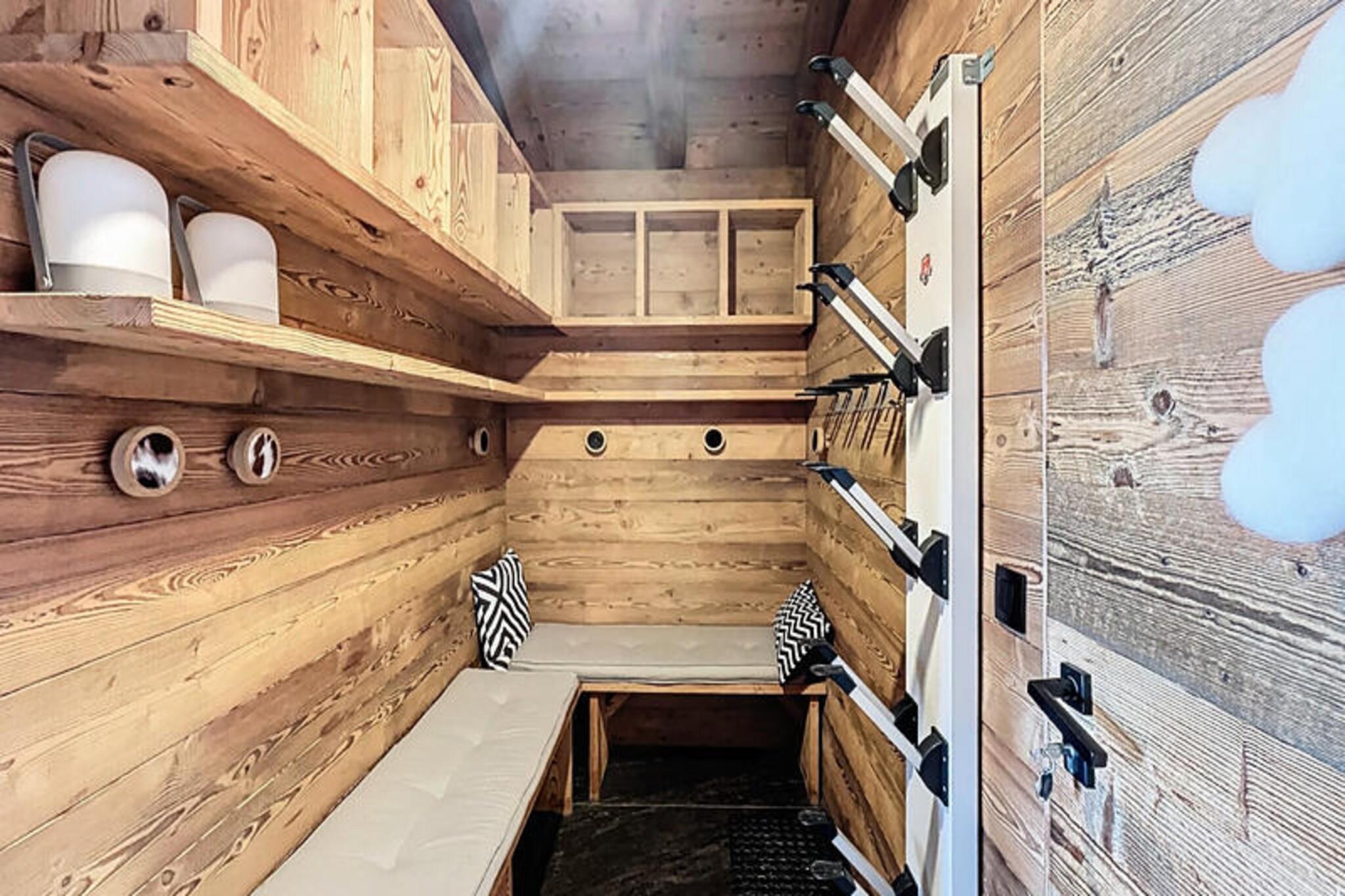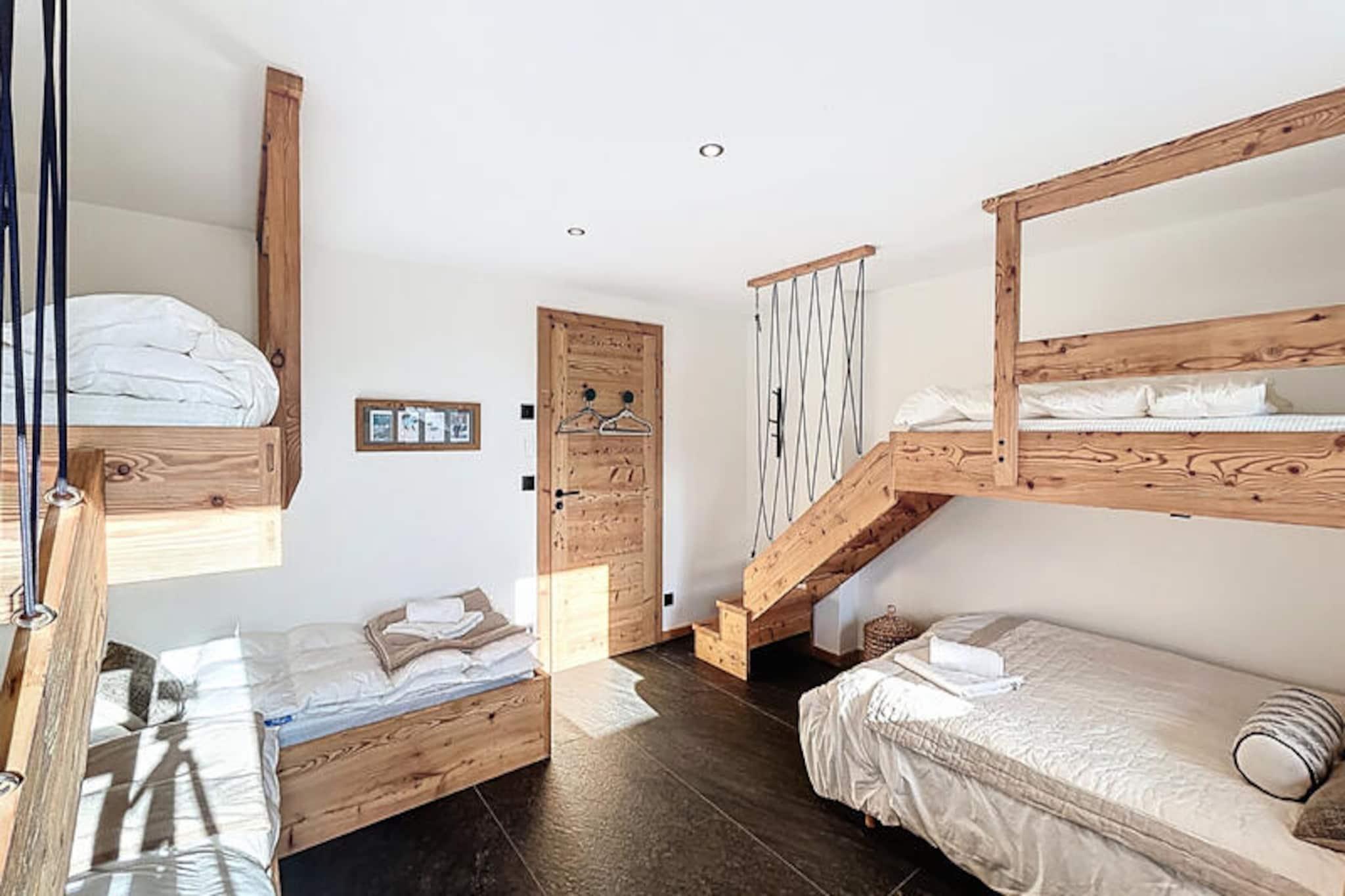 I det maleriske Les Chavannes-område i Les Gets tilbyder Chalet Aramis et uovertruffent alpint tilflugtssted, hvor tidløs bjergcharme møder moderne luksus. Med en betagende panoramaudsigt over Mont Chéry og Arve-dalen er denne fredfyldte oase omgivet af frodigt grønt, hvilket skaber en idyllisk ramme for din næste ferie. Uanset om du søger eventyr på pisterne eller rolige øjeblikke i naturen, er denne hytte den perfekte kulisse for uforglemmelige minder. Chalet Aramis er designet til at rumme op til 10 gæster og kan prale af fire smukt indrettede soveværelser, herunder tre dobbeltværelser med fleksible sengekonfigurationer og en specialdesignet sovesal med køjesenge, læselamper og individuelle stikkontakter. Ejendommen er fordelt på tre etager og omfatter flere brusebadeværelser, et badeværelse og tre separate toiletter, hvilket sikrer rigelig plads og privatliv for familier eller vennegrupper. Hjertet i hytten er dens indbydende opholdsstue, hvor raffineret alpin indretning blander naturligt træ, bløde tekstiler og moderne accenter. Samles omkring pejsen efter en dag på ski, eller tilbered en fest i det moderne åbne køkken, komplet med high-end apparater og et rummeligt spisebord. Yderligere faciliteter inkluderer en hyggelig tv-stue, et skirum med støvlevarmere, et fuldt udstyret vaskerum og højhastighedsinternet, så du kan holde dig forbundet. Gå udenfor på den solbeskinnede terrasse og fordyb dig i Alpernes skønhed. Slap af i det nordiske bad, mens du nyder den fantastiske udsigt over bjergene, eller nyd en aperitif, mens solen går ned over dalen. Med bekvemmeligheden ved et nærliggende gratis shuttle-stoppested er landsbyens centrum og skiløjperne kun få øjeblikke væk. Chalet Aramis lover en harmonisk blanding af alpin elegance og moderne komfort, hvilket gør det til den ultimative destination for din næste bjergferie.