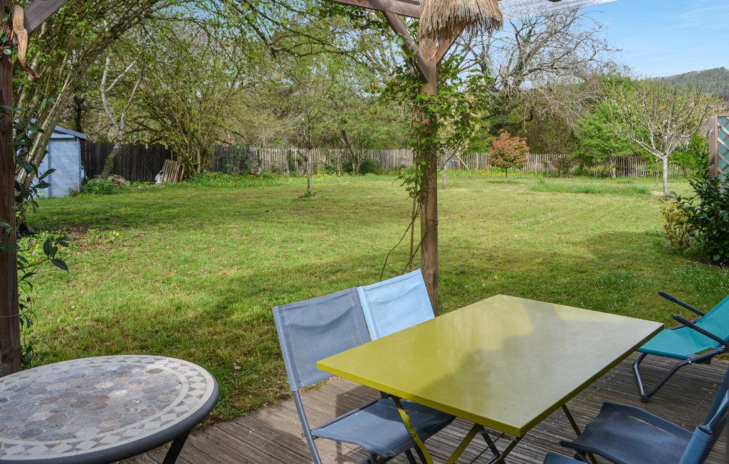 Feriehuset ligger kun få hundrede meter fra Vézère-floden, hvor I kan svømme og snuppe en frisk dukkert. Landsbyen byder på adskillige restauranter, herunder et gourmetsted. Gå en tur gennem landsbyen og oplev kunsthåndværksbutikker af høj kvalitet. Besøg Manoir de la Salle og dens parker med et århundrede gammelt cedertræ. I udkanten af ??landsbyen kan I besøge troglodyterne Conquils rebbane. Oplev landskabets skønhed fra vandet på en kanotur. Oplev Périgord Noirs fulde rigdoms mange slotte, kirker, landsbyer, forhistoriske steder og Lascaux-hulerne, turistaktiviteter eller markeder, floder og vandrestier. Benyt jer også af fritidscentret i Le Bugues mange attraktioner.