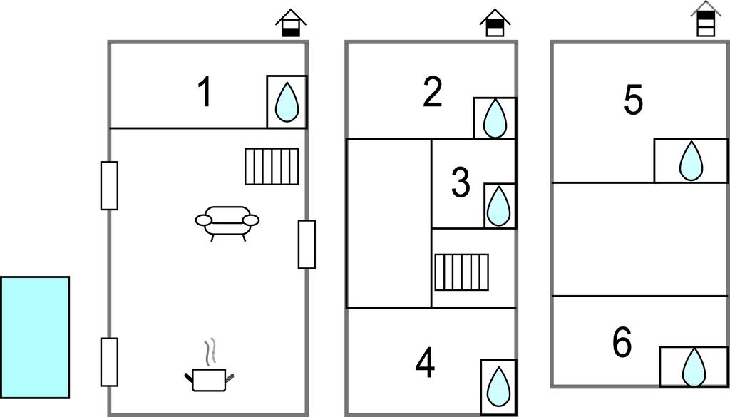 Soveværelse (nr. 6) - 1 Soveplads. (Enkeltseng(e)). 2 Sovepladser. (Dobbeltseng(e)).