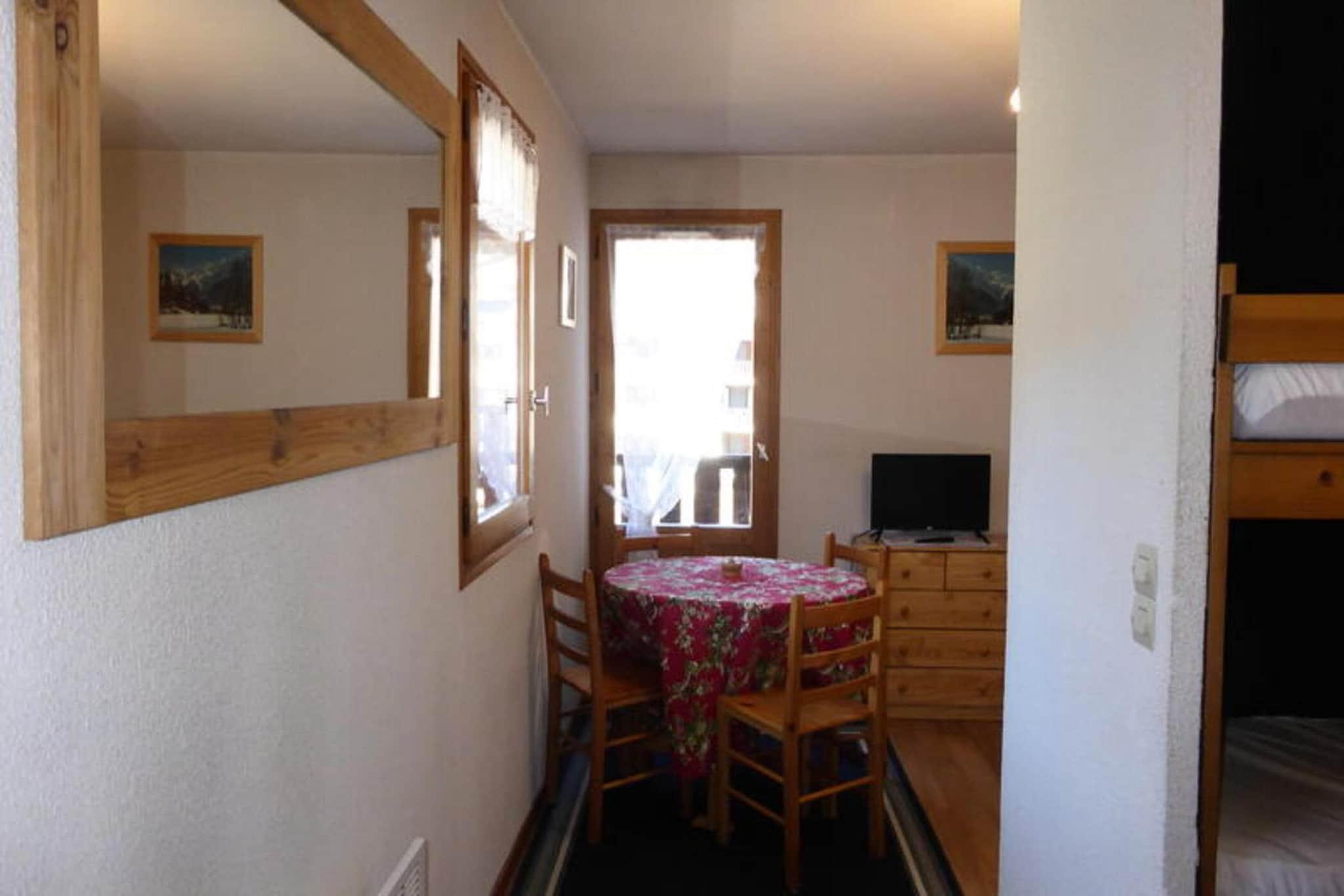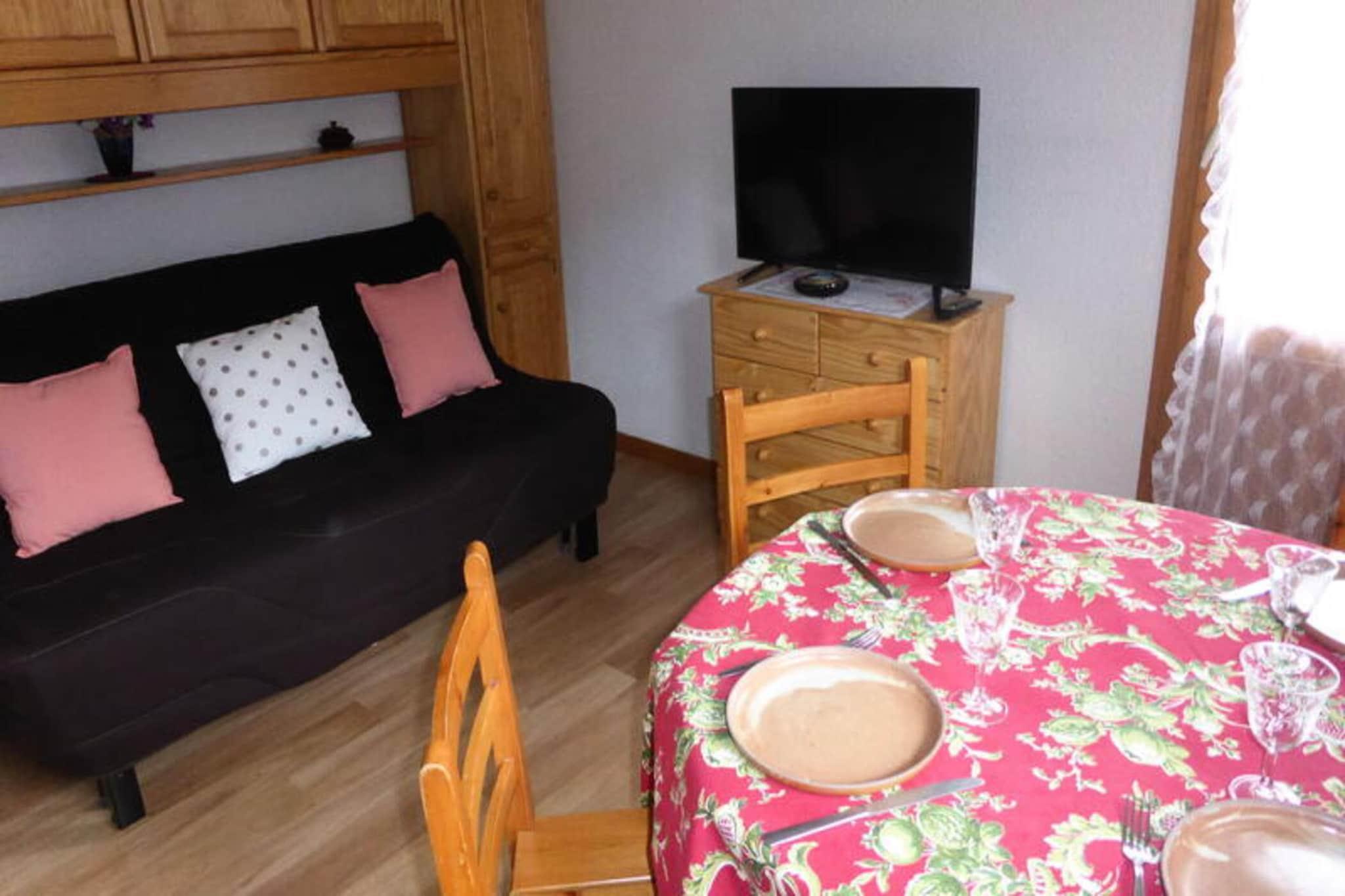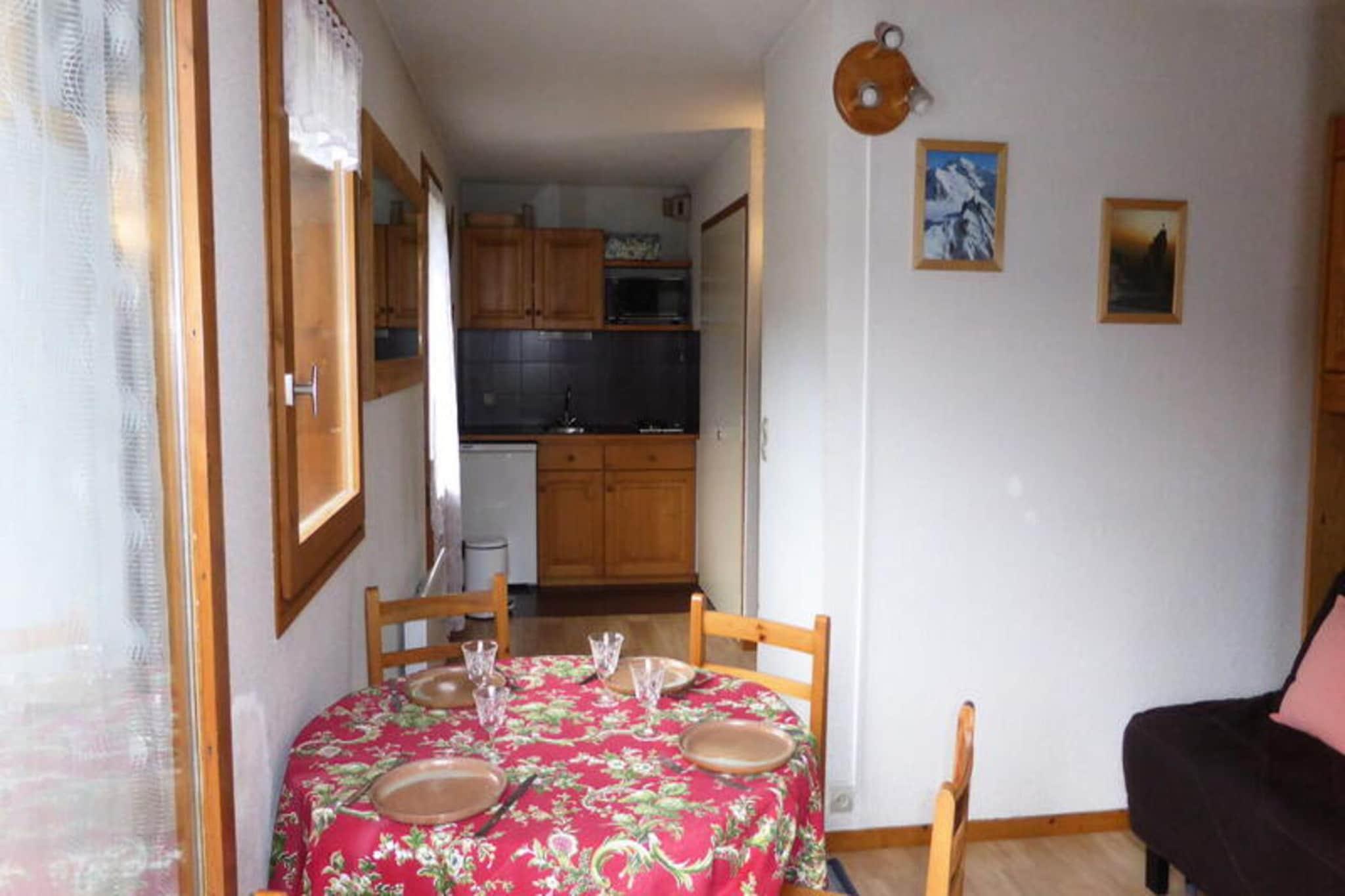 Denne charmerende studiolejlighed i Les Houches tilbyder et hyggeligt tilflugtssted for op til 4 personer, hvilket gør den perfekt til familier eller venner. Studiet har et opholdsområde med en sovesofa, tv og spiseplads samt et separat soveværelse med køjesenge. Indkvarteringen er fri for kæledyr, hvilket sikrer et roligt miljø for alle gæster. Vigtigt sengetøj, såsom puder, dyner og tæpper, er til rådighed, selvom husholdningsprodukter ikke er inkluderet. Valgfrie tjenester såsom leje af Wi-Fi-boks, leje af sengetøj og slutrengøring er tilgængelige efter anmodning. Placeringen er ideel for udendørsentusiaster, idet den kun er 200 meter fra Prarion-svævebanerne, hvilket giver nem adgang til skiløb og vandreture. Centrum af Les Houches ligger kun 1,5 km væk, hvor du finder en række lokale caféer, restauranter, et bageri og skibutikker. Den charmerende by byder på en blanding af afslapning og eventyr, med masser af butikker og spisemuligheder at udforske efter en dag i bjergene. Inde i studiet finder du et tekøkken udstyret med elektriske kogeplader, et køleskab og en ovn, perfekt til at tilberede måltider under dit ophold. Badeværelset har bruser, håndvask og toilet. Ejendommen tilbyder også parkeringspladser og et skiskab for ekstra bekvemmelighed.