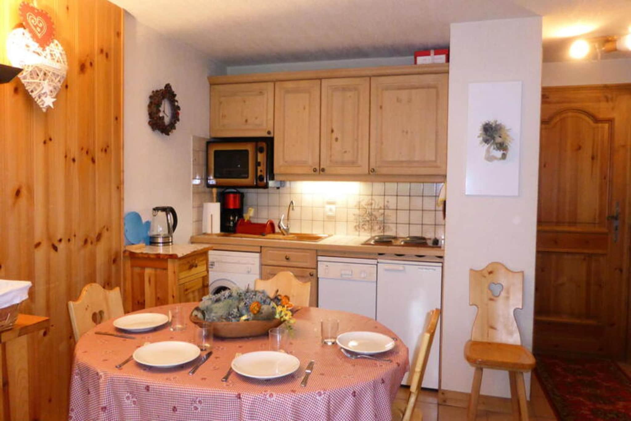 Denne hyggelige 2-værelses hyttelejlighed, beliggende på første sal, kan komfortabelt rumme op til 5 personer. Det har en stue med en sovesofa, tv og spiseplads samt et separat soveværelse med en dobbeltseng og en kabine med køjesenge. Lejligheden byder på sydlig eksponering, med balkon til at nyde udsigten. Husdyr er ikke tilladt, og lejen inkluderer puder, dyner, tæpper og service. Lejligheden er bekvemt beliggende kun 1,3 km fra skøjtebanen og 1,6 km fra centrum af Les Houches, og giver nem adgang til lokale restauranter, en bar, bageri og skibutikker. Der ligger et supermarked blot 100 meter derfra, og der er 200 meter fra ejendommen et busstoppested, hvilket gør det nemt at udforske det omkringliggende område og pisterne. Området er perfekt til både afslapning og udendørsaktiviteter, med masser at opdage. Lejligheden indeholder et veludstyret tekøkken med 4 elektriske kogeplader, køleskab, opvaskemaskine og vaskemaskine. Bruserummet har bruser, håndvask, bidet og toilet. For yderligere bekvemmelighed er en lukket garage tilgængelig. Valgfri tjenester som Wi-Fi-leje, husholdningslinned, børnepasningsudstyr og slutrengøring er tilgængelige mod et ekstra gebyr, afhængigt af tilgængelighed og reservation.