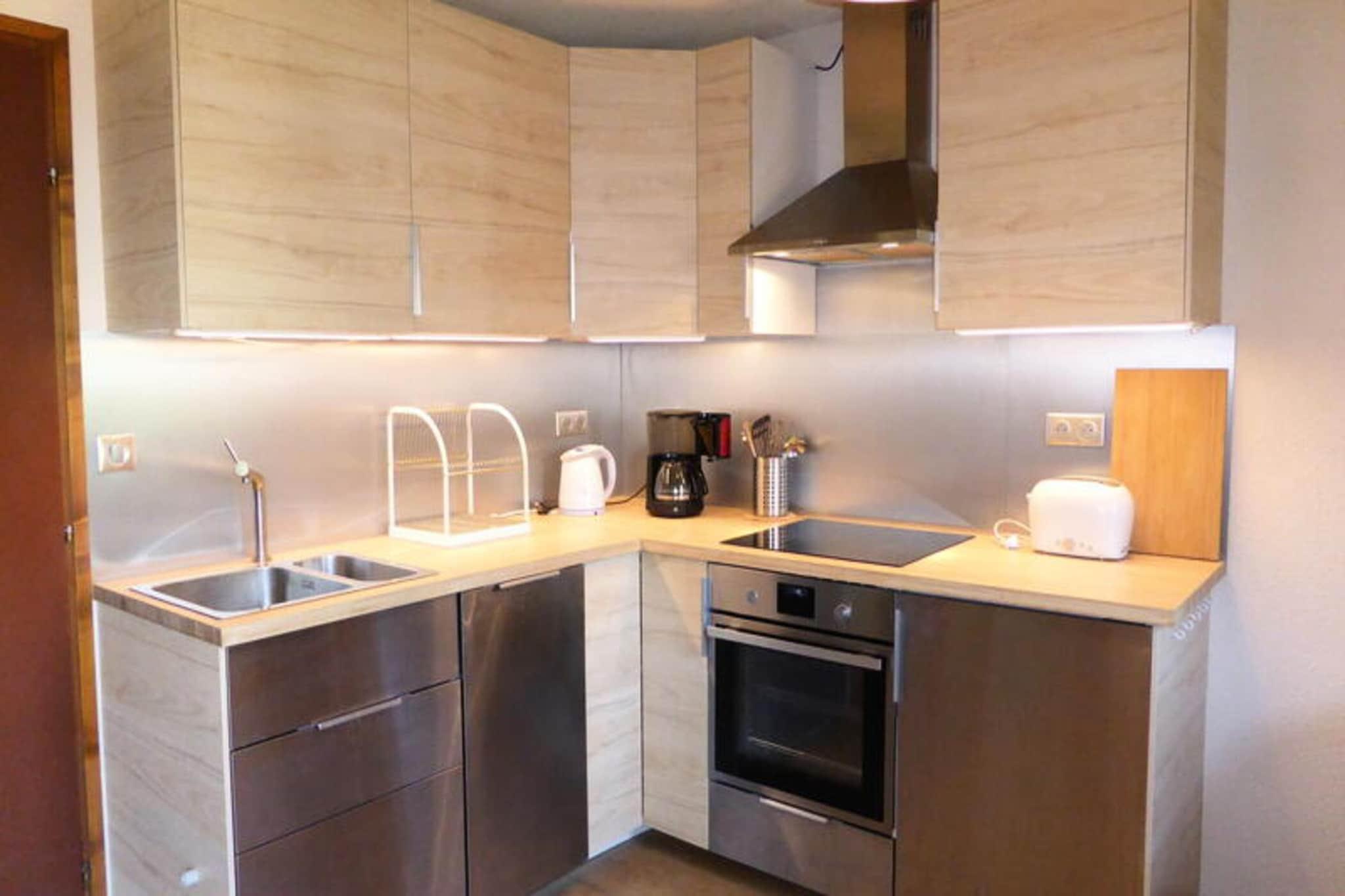 Denne hyggelige 2-værelses lejlighed i Les Houches tilbyder et behageligt ophold for op til 4 personer. Lejligheden har et soveværelse med en dobbeltseng og en stue med en sovesofa, tv og spiseplads. Et veludstyret tekøkken med 4 keramiske kogeplader, køleskab, ovn og opvaskemaskine sikrer, at du nemt kan tilberede måltider. Badeværelset har badekar, håndvask og vaskemaskine, og der er separat toilet. Lejligheden er beliggende på -1 sal med en vestlig eksponering. Boligen er ideelt beliggende kun 800 meter fra Bellevue-svævebanen, der giver nem adgang til skiløjperne, og kun 200 meter fra centrum af Les Houches, hvor du finder restauranter, barer, et bageri og skibutikker. Den centrale beliggenhed tilbyder en bekvem base for at udforske landsbyen og det omkringliggende område, hvilket gør det ideelt til både skiferier og udendørs eventyr. Yderligere faciliteter inkluderer en lukket garage (til små biler), skiskab og valgfri tjenester såsom leje af Wi-Fi-boks, husholdningslinned og børnepasningsudstyr. Slutrengøring er tilgængelig efter anmodning. Kæledyr er ikke tilladt i lejligheden, hvilket sikrer et roligt og behageligt ophold for alle gæster.