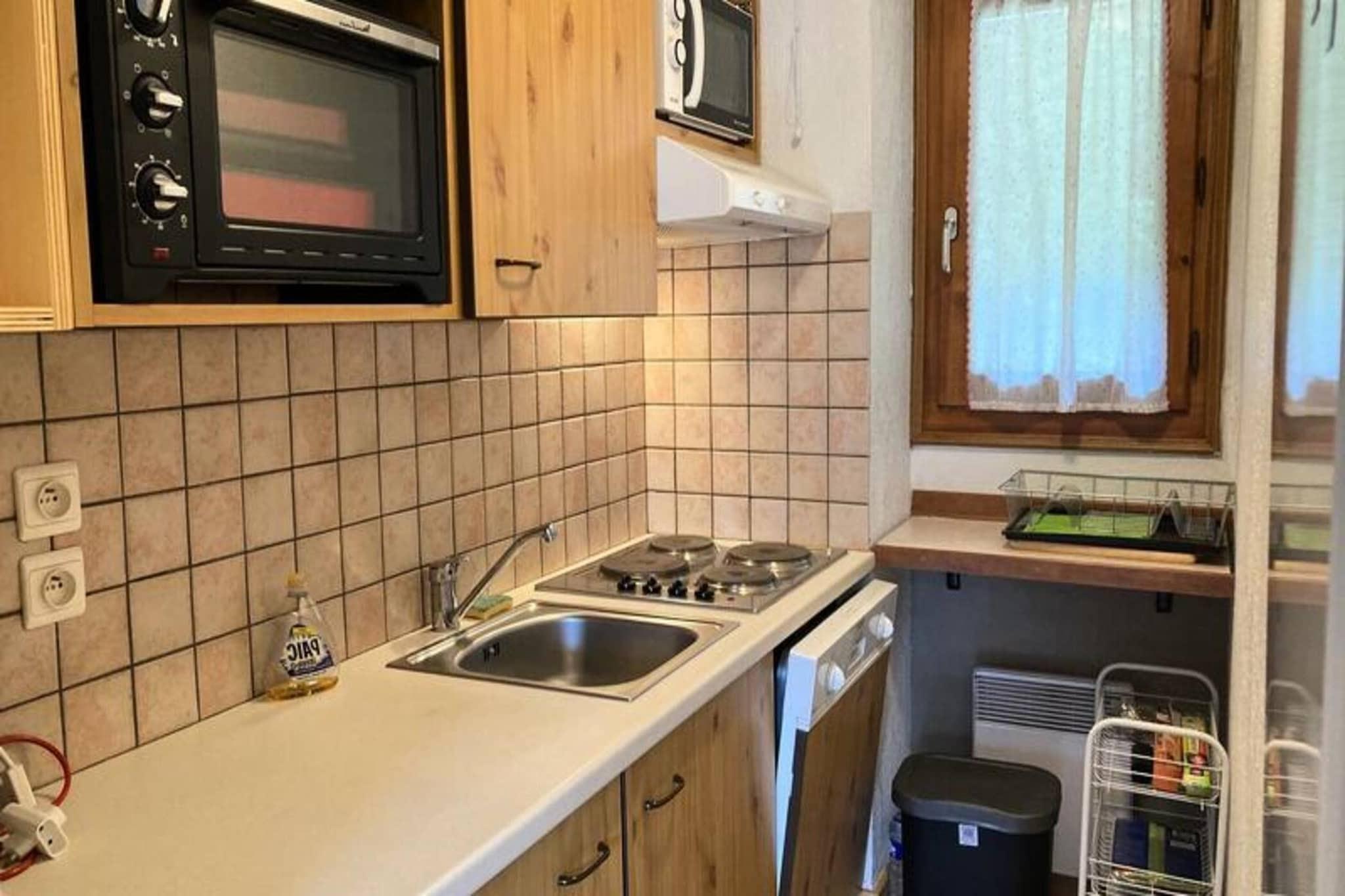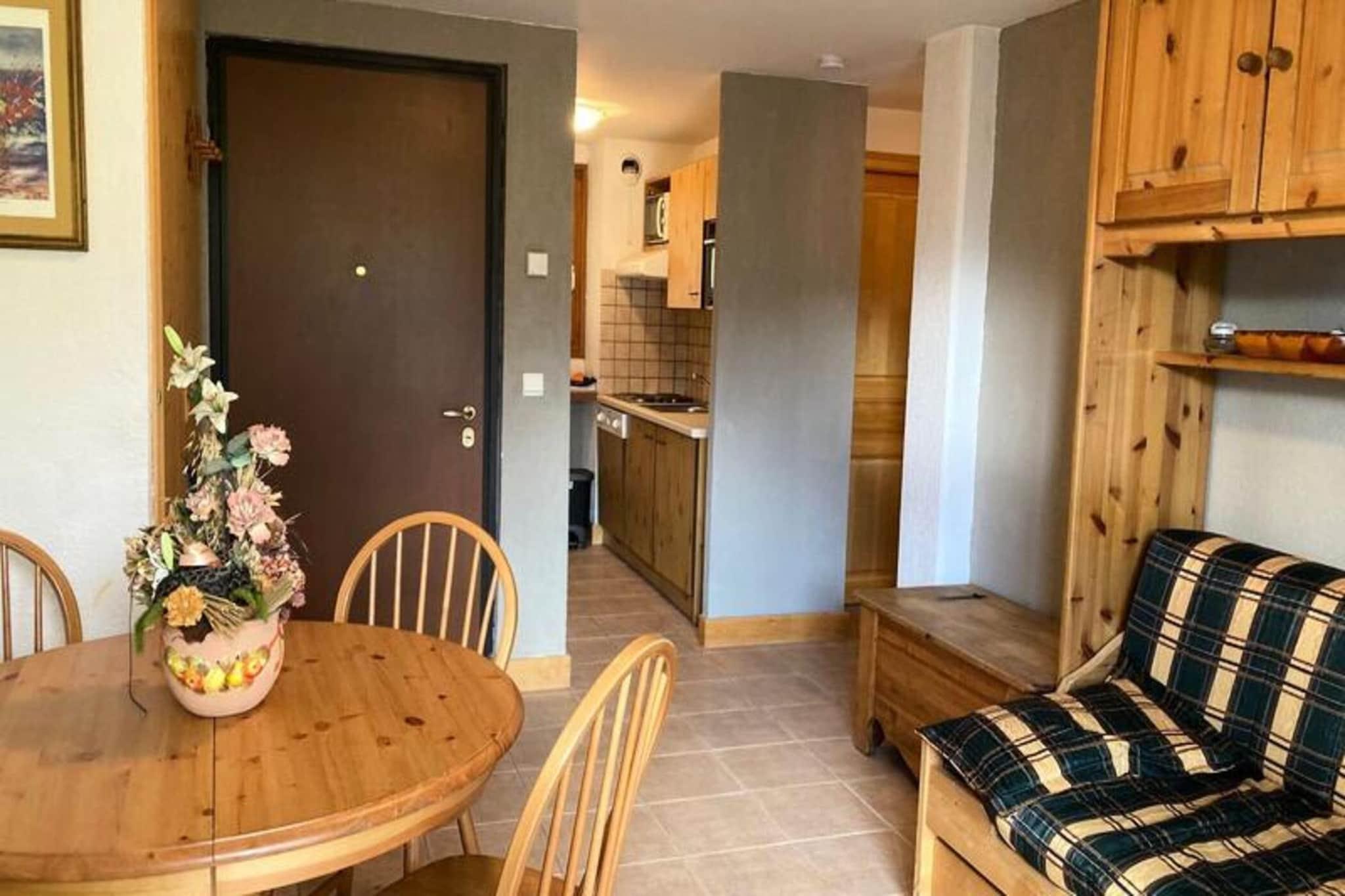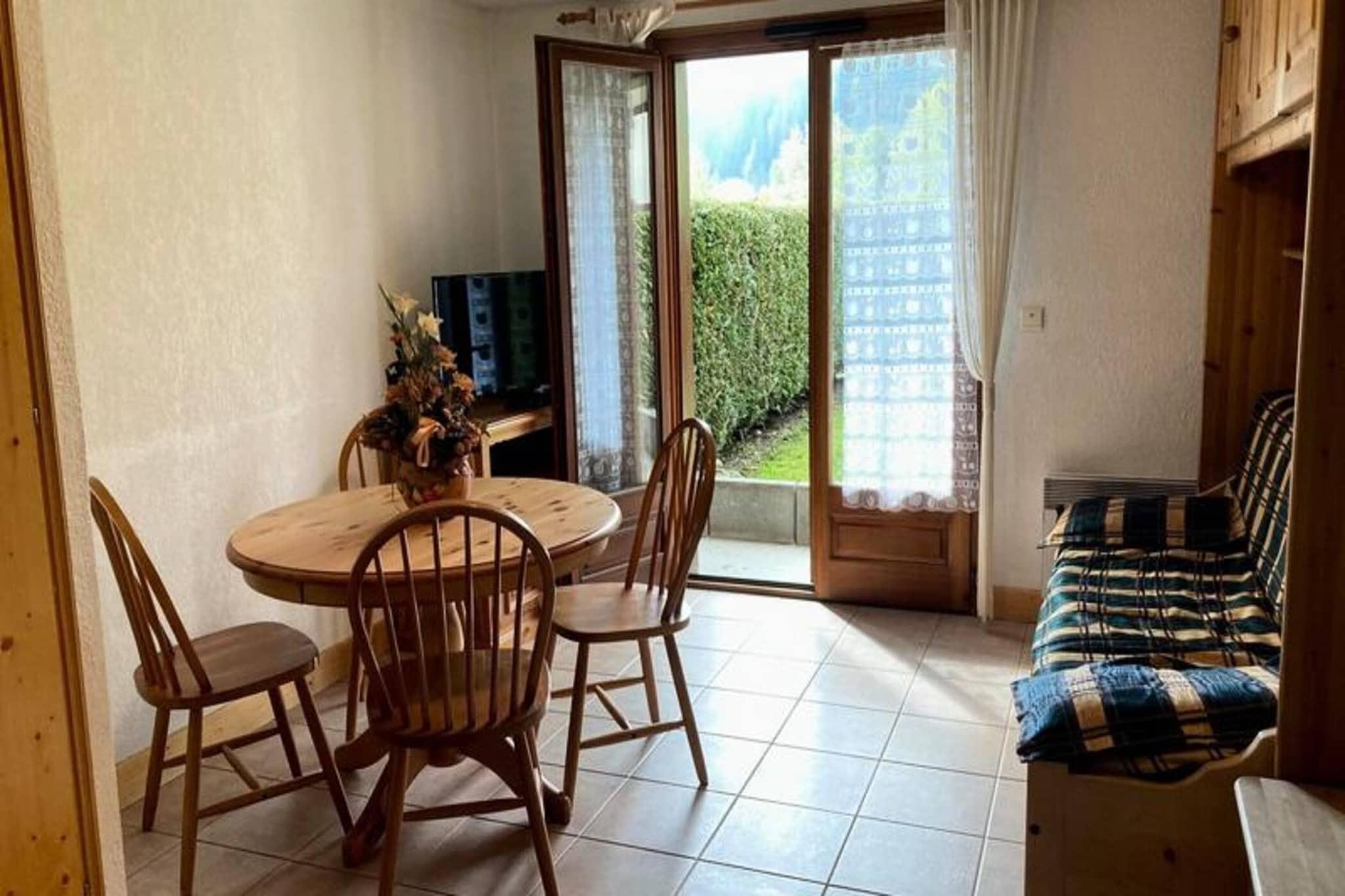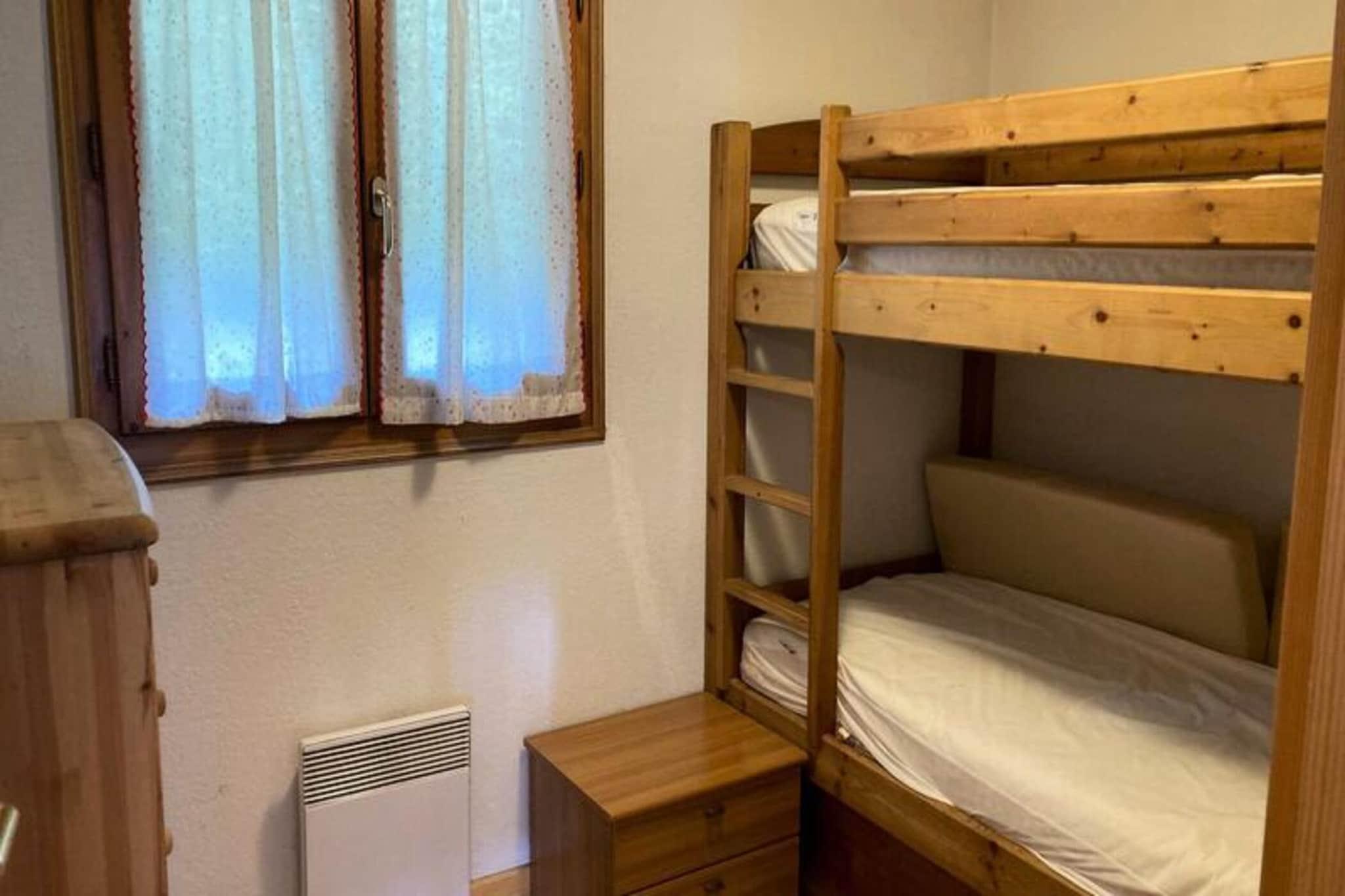 El edificio está situado a 100 m del teleférico de Prarion, muy cerca de la zona del lago Chavants, escalada en roca, tenis. Ideal para unas vacaciones en familia o con amigos, le ofrecemos en Les Houches, este apartamento tipo cabaña de 2 habitaciones de 41 m² con capacidad para 5 personas. El apartamento está en la planta baja con un bonito jardín. Composición del apartamento: - Salón con televisión que da a la terraza, un sofá individual. - Cocina equipada con vitrocerámica de 4 fuegos, horno, microondas y lavavajillas. - Un dormitorio con cama de matrimonio que da a una terraza. - Un dormitorio tipo cabina con litera y ventana. - Un cuarto de baño con ducha, lavabo, bidé y WC. Equipamiento adicional: lavadora, guardaesquís y garaje cerrado. No se permiten mascotas. Servicios adicionales (opcionales, con suplemento, sujetos a reserva y sujetos a disponibilidad; para precios, consúltanos): - Alquiler de caja wifi - Alquiler de ropa de hogar: sábanas, toallas. - Alquiler de material de puericultura: trona, cuna de viaje. - Limpieza de final de estancia. En el alquiler se proporcionan almohadas, edredones, mantas y vajilla. No se proporcionan productos para el hogar en el alquiler. Depósito (en euros) - 260 Calefacción - 1
