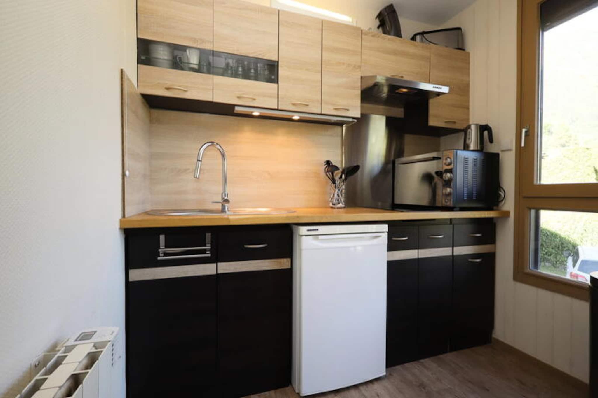 Omgivet af de majestætiske tinder i de franske alper tilbyder denne charmerende studiolejlighed i Les Houches et hyggeligt tilflugtssted for familier eller venner, der søger en mindeværdig bjergferie. Med Prarion-svævebanerne kun 100 meter væk er du perfekt placeret til at udforske pisterne og stierne i denne berømte alpine destination. Den vestvendte balkon inviterer dig til at slappe af med en fantastisk udsigt, mens solen går ned over de snedækkede bjerge og skaber en atmosfære af ro og varme. Indenfor er det 36 m² store studio omhyggeligt designet til at rumme op til fire gæster. Stuen har en komfortabel sovesofa, mens soveområdet tilbyder en dobbeltseng til afslappende nætter. Tekøkkenet er udstyret med moderne apparater, herunder induktionskogeplader, ovn, mikrobølgeovn og køleskab, hvilket gør det nemt at tilberede måltider efter en dag med eventyr. Yderligere faciliteter såsom Wi-Fi, vaskemaskine og en aflåst garage sikrer bekvemmelighed og komfort under hele dit ophold. Ud over lejligheden ligger landsbyens centrum i Les Houches kun 1,6 kilometer væk, der tilbyder et udvalg af restauranter, barer, skibutikker og en Carrefour Contact for alle dine fornødenheder. Uanset om du står på ski om vinteren eller vandrer om sommeren, giver de nærliggende stier og faciliteter uendelige muligheder for at fordybe dig i naturen. For familier er der mulighed for at leje babyudstyr og linnedservice, hvilket sikrer en problemfri oplevelse. Dette dejlige studie kombinerer praktisk anvendelighed med alpin charme, hvilket gør det til den perfekte base for at udforske skønheden i Les Houches og den omkringliggende Chamonix-dal. Skab varige minder i dette idylliske bjergparadis.