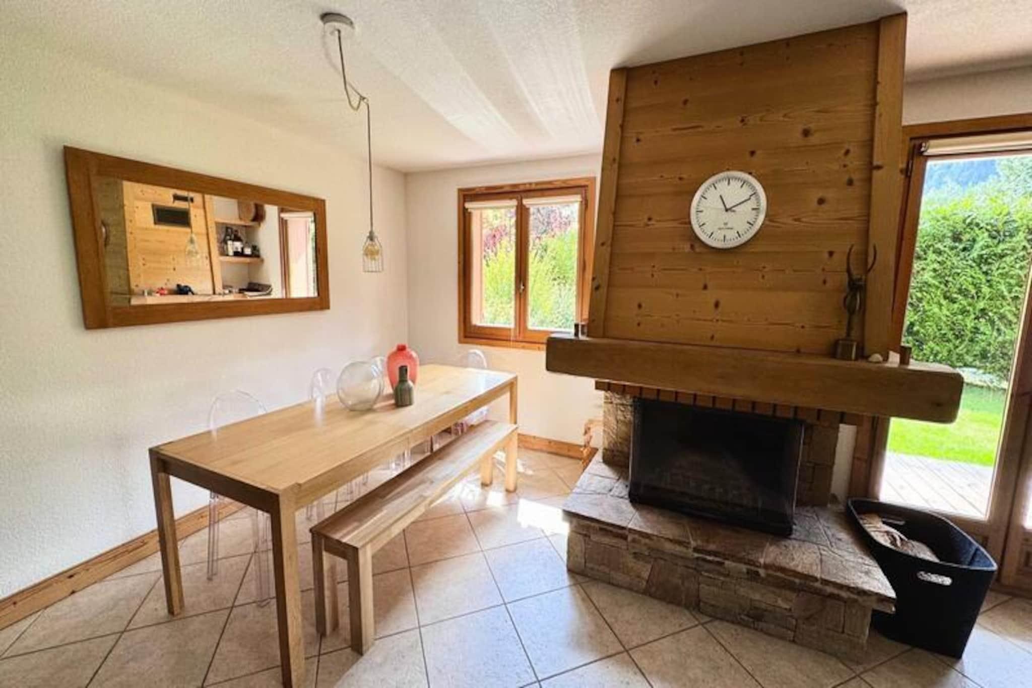 Omgivet af de majestætiske tinder af Mont Blanc-massivet tilbyder denne elegante lejlighed på 97 m² i Le Pont-distriktet i Les Houches et roligt alpint tilflugtssted for op til otte gæster. Kun 10 minutters kørsel fra Chamonix kombinerer denne ejendom charmen ved bjerglivet med moderne komfort, hvilket gør den til en ideel base for at udforske de franske alper. Uanset om du er her for at stå på ski, vandre eller blot slappe af, sætter det betagende landskab og den rolige atmosfære scenen for en uforglemmelig ferie. \n\nLejligheden er omhyggeligt designet på tværs af tre etager, hvilket sikrer rigelig plads og privatliv for familier eller grupper. I stueetagen har den hyggelige opholds- og spisestue en pejs og tv, der åbner ud til en terrasse og have, hvor du kan nyde den friske bjergluft. Det fuldt udstyrede tekøkken indeholder alt, hvad du behøver til hjemmelavede måltider, mens soveværelserne på første sal tilbyder afslappende dobbeltsenge og adgang til balkon med panoramaudsigt. Et spillerum med billard og bordfodbold på den nederste etage tilføjer et strejf af sjov til dit ophold, og cykler er tilgængelige for gæster, der er ivrige efter at udforske de omkringliggende stier. \n\nLejligheden har en bekvem beliggenhed, kun 350 meter fra et busstoppested og 1,3 kilometer fra Taconnaz togstation, hvilket sikrer nem adgang til lokale attraktioner. Les Houches centrum og skiløjperne ligger i nærheden, mens den pulserende by Chamonix er inden for rækkevidde for restauranter, shopping og eventyr. Uanset om du står på ski på de berømte pister eller nyder sommervandreture, placerer denne ejendom dig i hjertet af alpin spænding. \n\nMed sin blanding af komfort, beliggenhed og fantastiske omgivelser inviterer denne lejlighed dig til at opleve magien i Mont Blanc-regionen. Perfekt til familier, venner og endda dine pelsede venner, det er et sted at skabe varige minder i en af ??de mest ikoniske bjergdestinationer i verden.