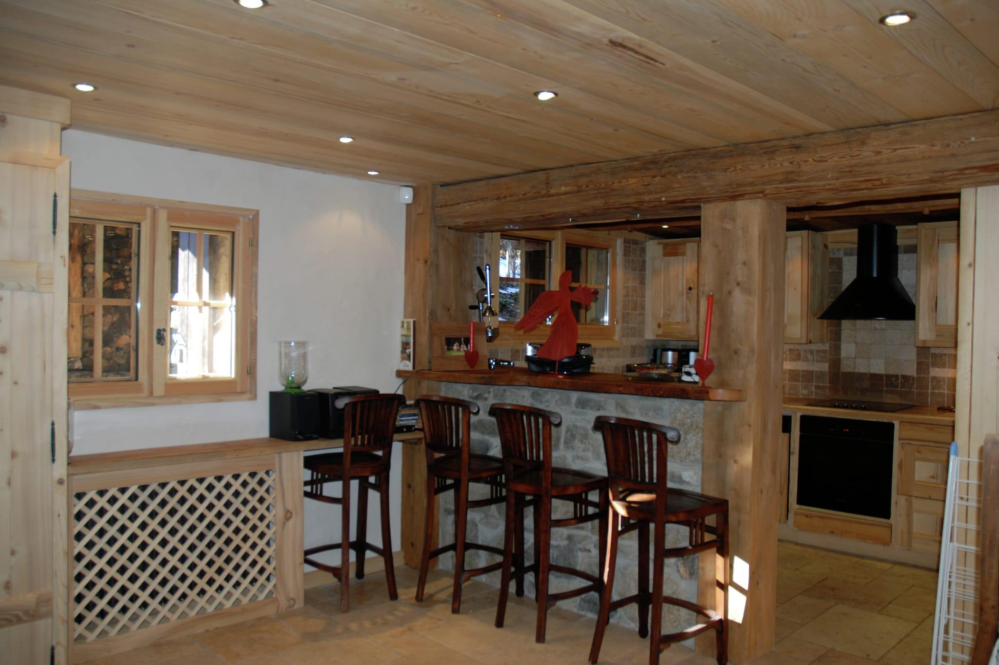 Denne tidligere gård er blevet fuldstændig renoveret, og din lejlighed (ca. 120 m2) ligger i stueetagen. Din hytte er rummelig og indbydende og er blevet renoveret med stor charme. Skjult blandt fyrretræerne, er dette gård blevet restaureret med stor smag. Ilden vil oplyse dine vinteraftener, og den store have omkring huset vil være en rigtig god fornøjelse om sommeren. Les Houches landsby resort er i Haute-Savoie, i Chamonix dalen, 6 km fra verdens hovedstad for skiløb og klatring. 1000 meter over havets overflade, ved foden af Mont Blanc (4807m), har Les Houches en bemærkelsesværdig udsigt over Aiguilles de Chamonix. Lige til hytten (ca. 500m) finder du alle faciliteter (børnepasning, ski leje mv.). Centrum af Les Houches med alle forretninger ligger ca. 1 km væk.