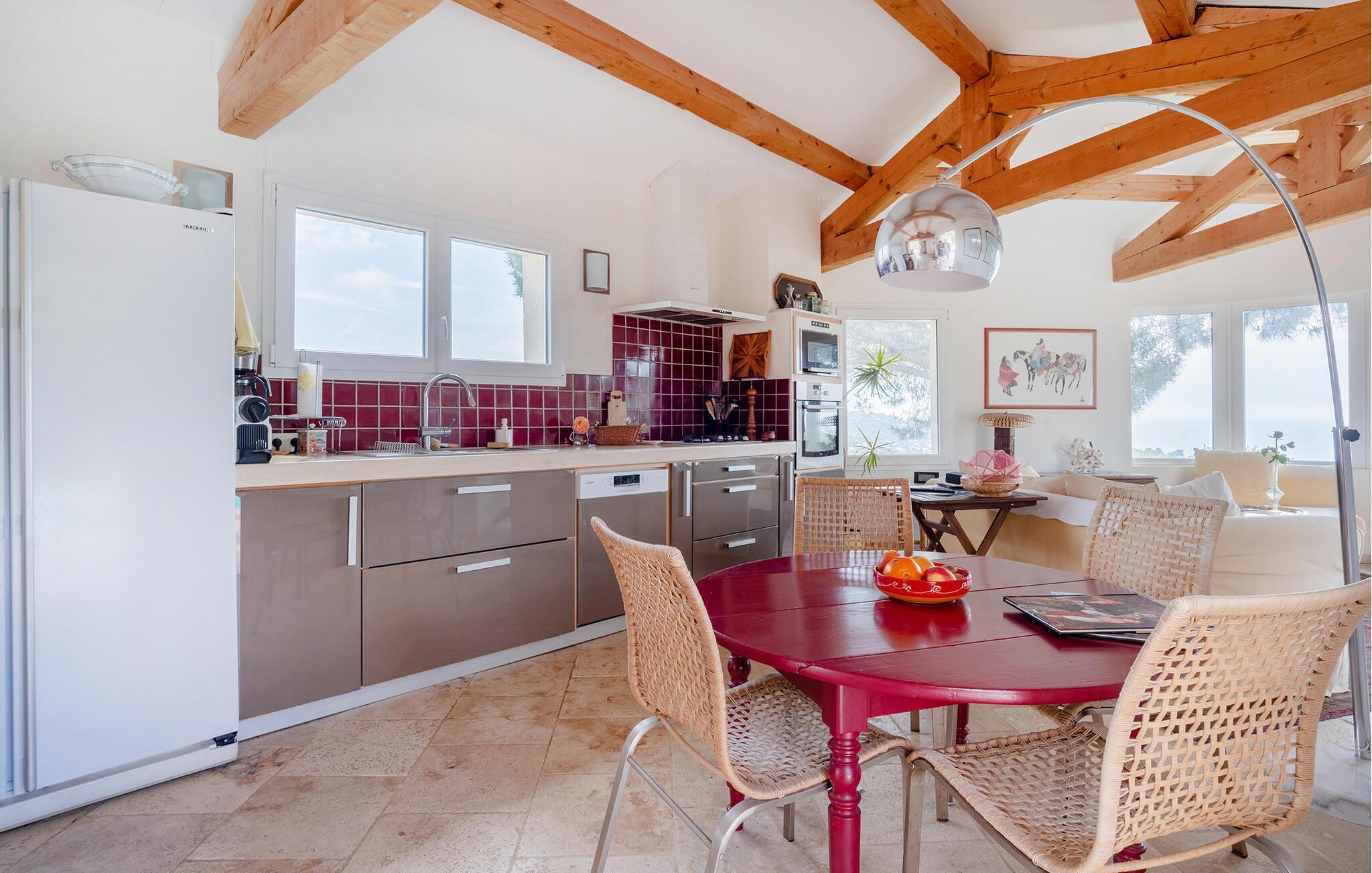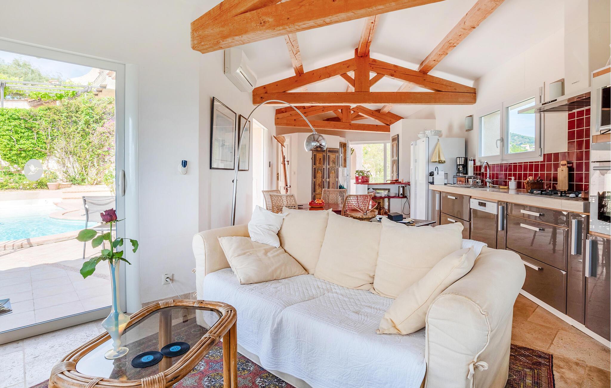 Tag familien under armen og rejs til Les Issambres, hvor I i bjergrige omgivelser venter jer denne perle af en feriebolig. Huset er virkelig flot indrettet med et vellykket mix af det rustikke og det moderne, og med de finurlige rumløsninger skabes en hyggelig atmosfære, som det er nemt at slappe af i. Den lyse stue er husets hjerte, der får dejlige lysindfald og en distinkt rummelighedsfølelse af de store vinduespartier. Tilbered jeres livretter i det veludstyrede køkken med udsigt, inden I runder en dejlig dag af i sofaområdet med snacks og en god film på tv'et.