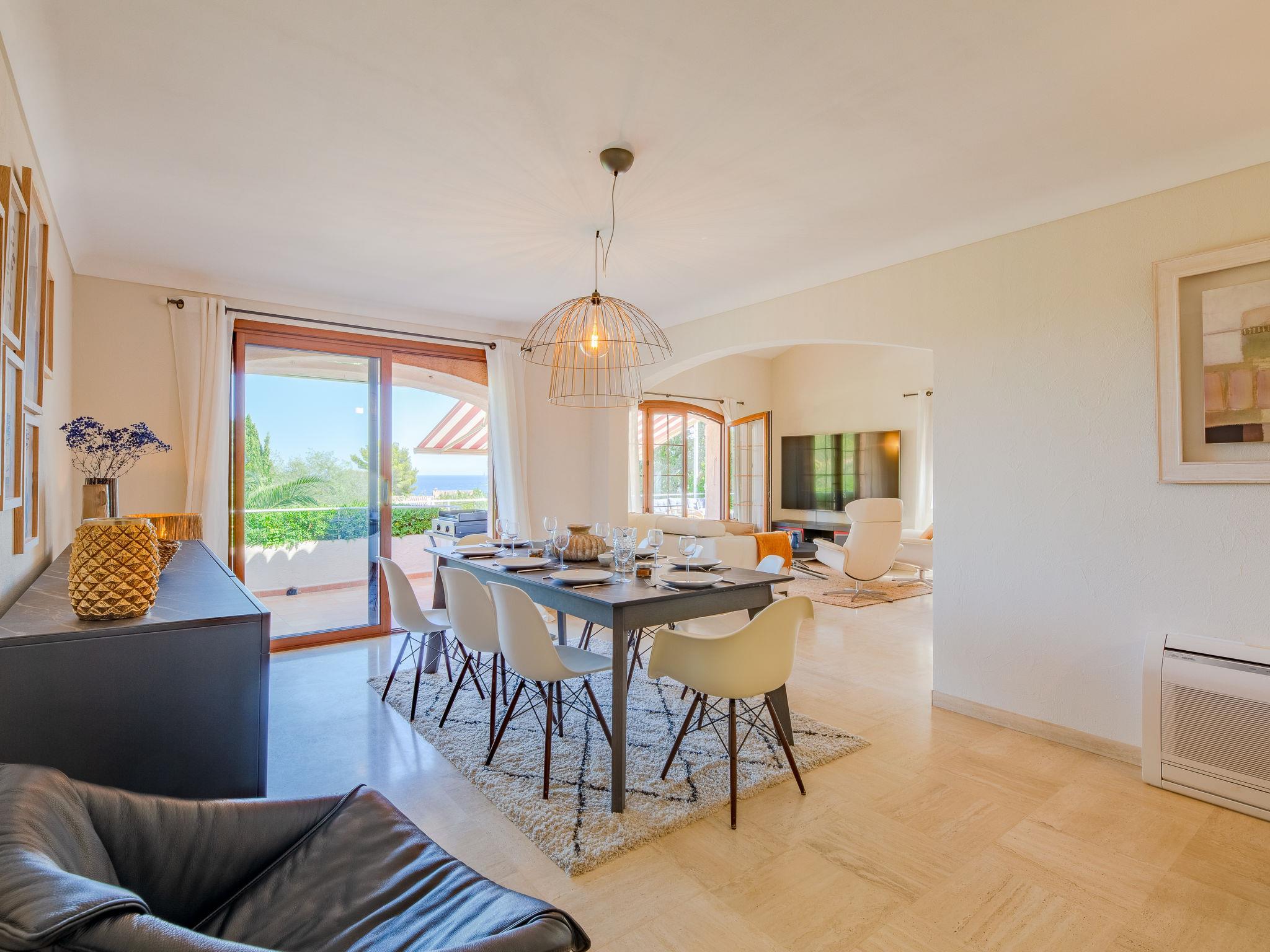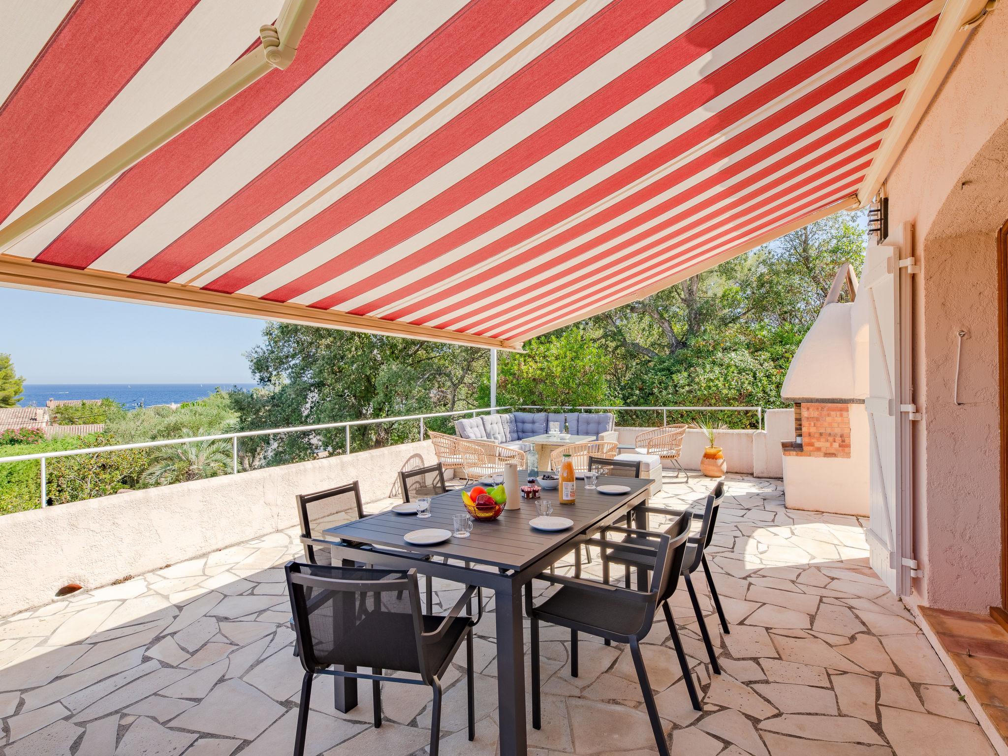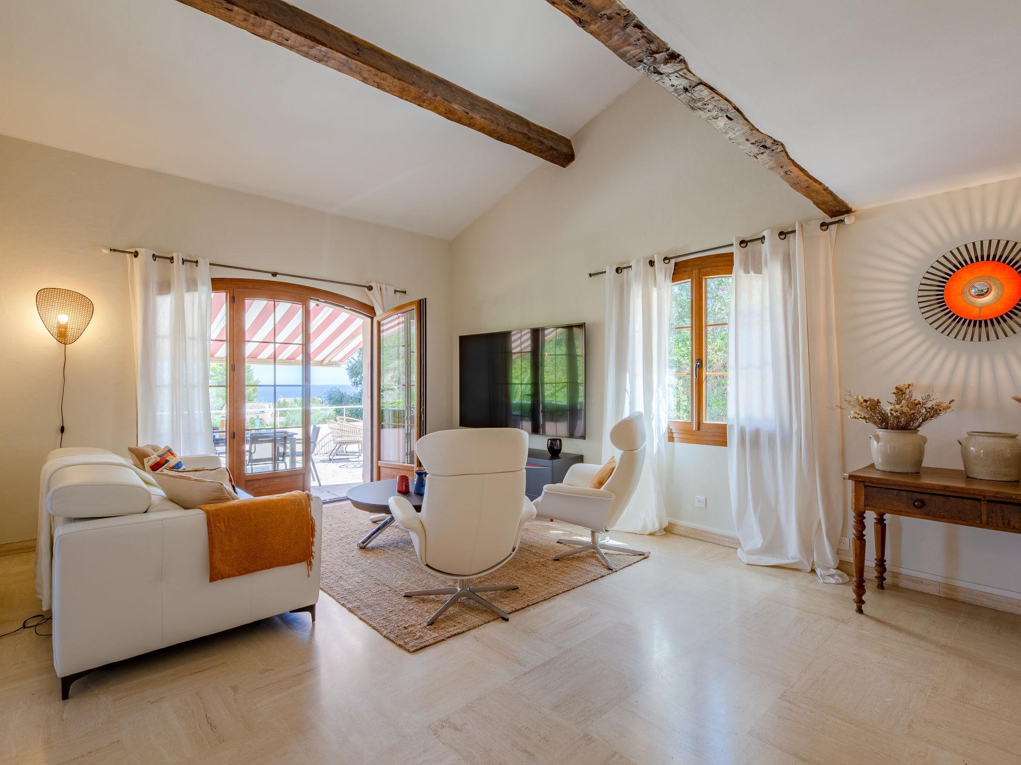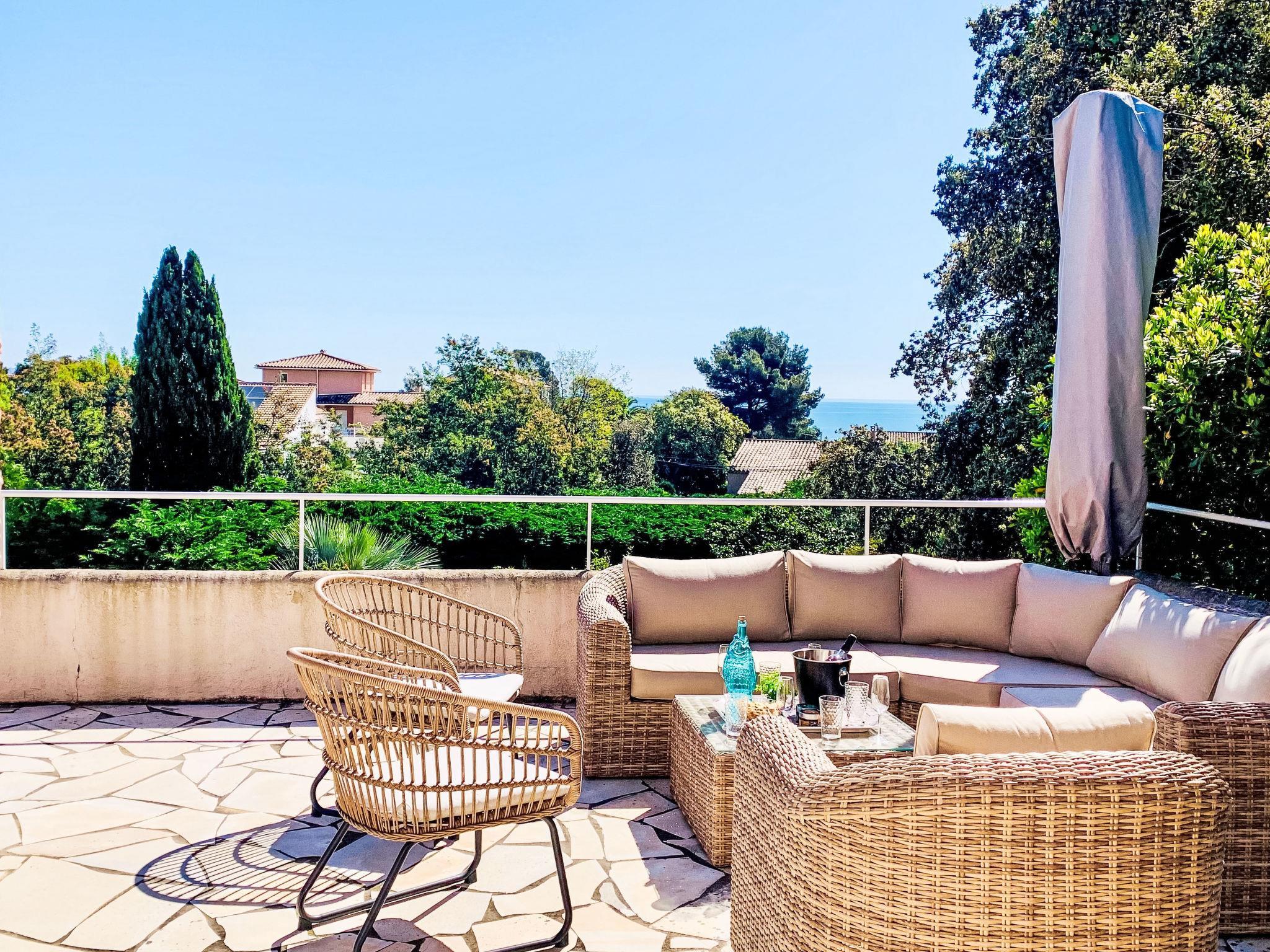 5-room villa 150 m2, on the upper floor. Renovated in 2024, comfortable furnishings: living/dining room with TV, flat screen and air conditioning. Exit to the terrace. 2 rooms with Dressing room, each room with 1 french bed (1 x 180 cm, length 200 cm), shower, TV, flat screen and air conditioning. Large kitchen (oven, dishwasher, 4 induction hot plates, toaster, kettle, microwave, freezer, electric coffee machine, Capsules for coffee machine (Nespresso) extra). Exit to the terrace. Electric heating. On the lower ground floor: 1 room, ceiling height 185 cm with 1 french bed (1 x 140 cm, length 190 cm), TV (flat screen). Shower/WC. Electric heating. Upper floor: office. 1 room with 1 french bed (1 x 160 cm, length 200 cm), TV, flat screen and air conditioning. Exit to the balcony. Shower/WC. Electric heating. Balcony 6 m2, south facing position, large terrace 60 m2, south facing position. Terrace furniture, electric barbecue, deck chairs (6). Beautiful view of the sea. Facilities: washing machine, dryer, iron, hair dryer. Internet (WiFi, free). Parking. Please note: maximum 1 pet/ dog allowed. Smoke alarm. Offer by a private individual according to Art. 155, IV of CGI. 83107001863XM