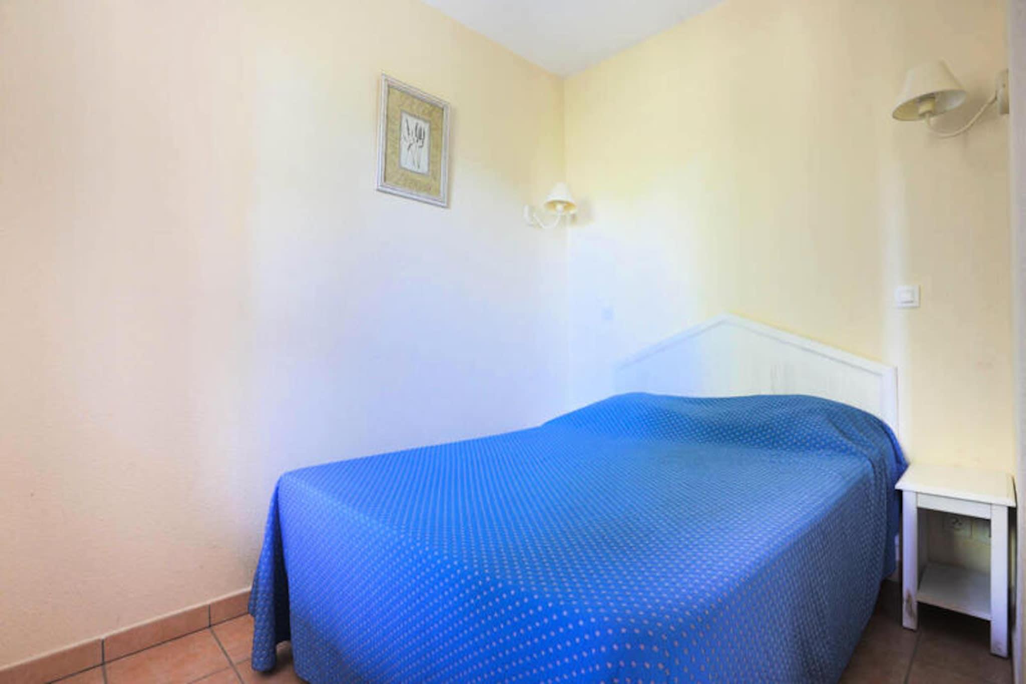 Denne 2-v?relses lejlighed tilbyder rummelig, fuldt udstyret indkvartering ideel til op til 5 g?ster. Det har en stue, et sovev?relse, et k?kken, et badev?relse og et separat toilet. G?sterne kan nyde komforten af ??et velindrettet rum, med parkering tilg?ngelig for nemheds skyld. Lejligheden er k?ledyrsvenlig (der kan forekomme ekstra gebyrer), hvilket g?r den perfekt til dem, der rejser med deres lodne ledsagere. For ekstra komfort er Wi-Fi tilg?ngelig mod et ekstra gebyr, og senget?j leveres efter anmodning. Beliggende kun 7 km fra Sainte-Maxime og beliggende mellem Saint-Rapha?l og Saint-Tropez, tilbyder denne ejendom nem adgang til en r?kke n?rliggende attraktioner. Udforsk de lokale strande og bugter, eller tag en natursk?n g?tur langs toldstien for at nyde udsigten over bugten og Saint-Tropez. Vandsportsentusiaster kan nyde aktiviteter s?som sejlads, vandski, dykning og kajaksejlads. Den n?rliggende by Sainte-Maxime byder p? et marked, en havn og sandstrande til afslapning og sightseeing. Lejligheden har et veludstyret k?kken til selvforplejning, s? g?sterne kan tilberede deres m?ltider. For dem, der foretr?kker at spise ude, byder det omkringliggende omr?de p? en r?kke restauranter og caf?er. Den udend?rs swimmingpool er tilg?ngelig for s?sonen, hvilket giver et fantastisk sted til afslapning. Slutreng?ring og andre tjenester er tilg?ngelige mod et ekstra gebyr, hvilket sikrer et bekvemt og behageligt ophold.