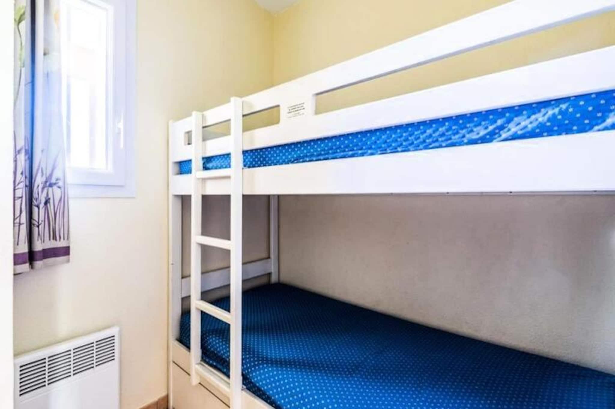 Denne rummelige ferielejlighed tilbyder et behageligt ophold med en række faciliteter. Plads til op til 4 personer, det har et soveværelse med dobbeltseng og et kabineområde med køjesenge, hvilket gør det ideelt til familier eller små grupper. Lejligheden er kæledyrsvenlig, så du kan tage din lodne ledsager med. Yderligere bekvemmeligheder inkluderer Wi-Fi (afhængigt af tilgængelighed), et fjernsyn og en dedikeret parkeringsplads for din lethed og komfort. Beliggende kun få kilometer fra strandene i Sainte Maxime og Issambres, tilbyder denne ejendom en førsteklasses beliggenhed for dem, der ønsker at udforske det omkringliggende område. En naturskøn vandresti fører dig direkte til stranden, mens nærliggende Fréjus, Saint Raphael og Sainte Maxime er perfekte til dagsture. Området byder også på en række udendørs aktiviteter såsom vandreture, vandsport som sejlads og kajaksejlads og endda golf, hvilket sikrer, at der er noget for enhver smag. Indvendigt har lejligheden et køkken i amerikansk stil, fuldt udstyret med vigtige apparater til at tilberede måltider, herunder en mikrobølgeovn og opvaskemaskine. Til ejendommen hører to badeværelser, det ene med badekar og det andet med bruser samt separat toilet. En overdækket terrasse med havudsigt er et perfekt sted at slappe af. Boligen tilbyder også en udendørs pool, tilgængelig fra maj til september, og yderligere faciliteter såsom en tennisbane og legeplads.