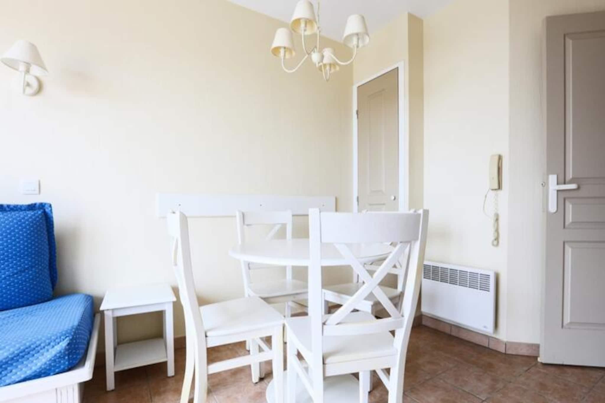 This holiday home offers a spacious and comfortable stay with well-equipped living spaces for up to 6 people. It features a living room with 2 sofa beds and a trundle bed, perfect for families or groups. The cabin area includes 2 single bunk beds, and the apartment also has a dining area with a table and chairs. Pets are allowed, ensuring a welcoming environment for those traveling with furry companions. A private parking space is provided, with additional storage space available for convenience. The property is ideally located between Saint-Raphaël and Saint-Tropez, just a few kilometers from the beautiful beaches of Sainte-Maxime and Issambres. A scenic 4 km walking path will lead you to the coast, where you can enjoy the clear waters. For adventure enthusiasts, water activities such as sailing, water skiing, and kayaking are available nearby. Explore the surrounding areas, including Fréjus, Saint-Raphaël, and Sainte-Maxime, with plenty of outdoor activities like hiking, tennis, golf, and even quad biking. The apartment is equipped with a fully functional kitchen area, open to the living room, and a bathroom with a bathtub and toilet. A furnished balcony with a table and chairs allows you to enjoy the sunny surroundings and the beautiful pool and sea views. The property offers an outdoor swimming pool (open from May to September), and additional amenities include Wi-Fi access (for a fee), TV, and a laundry service. For an even more comfortable stay, you can request additional cleaning services.