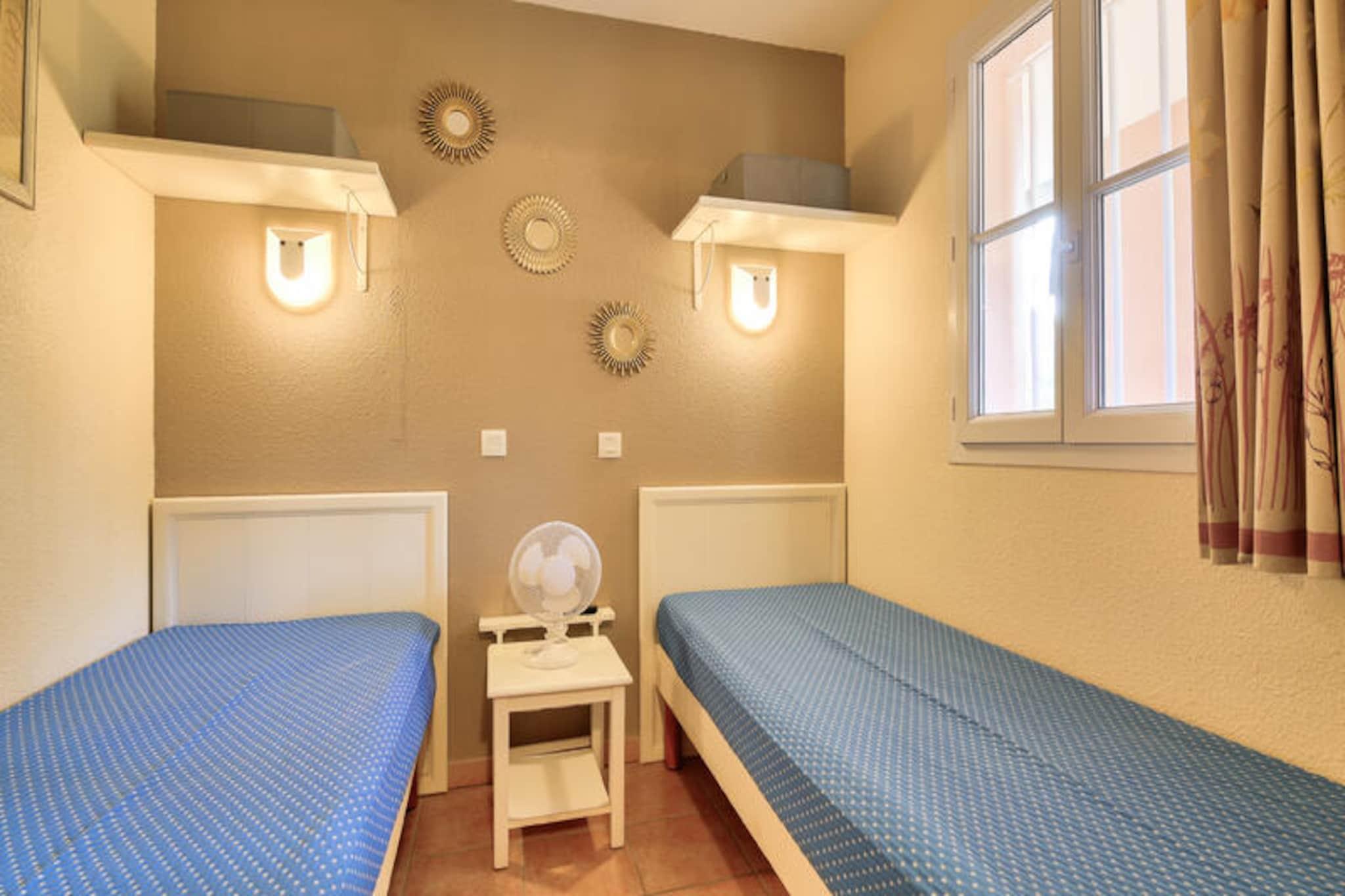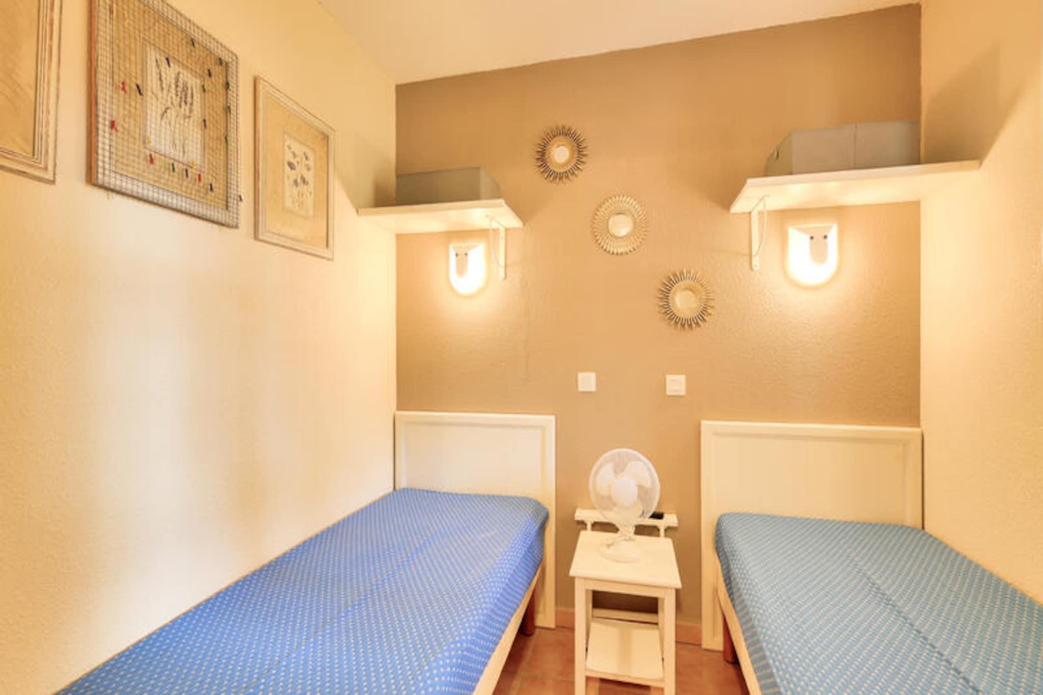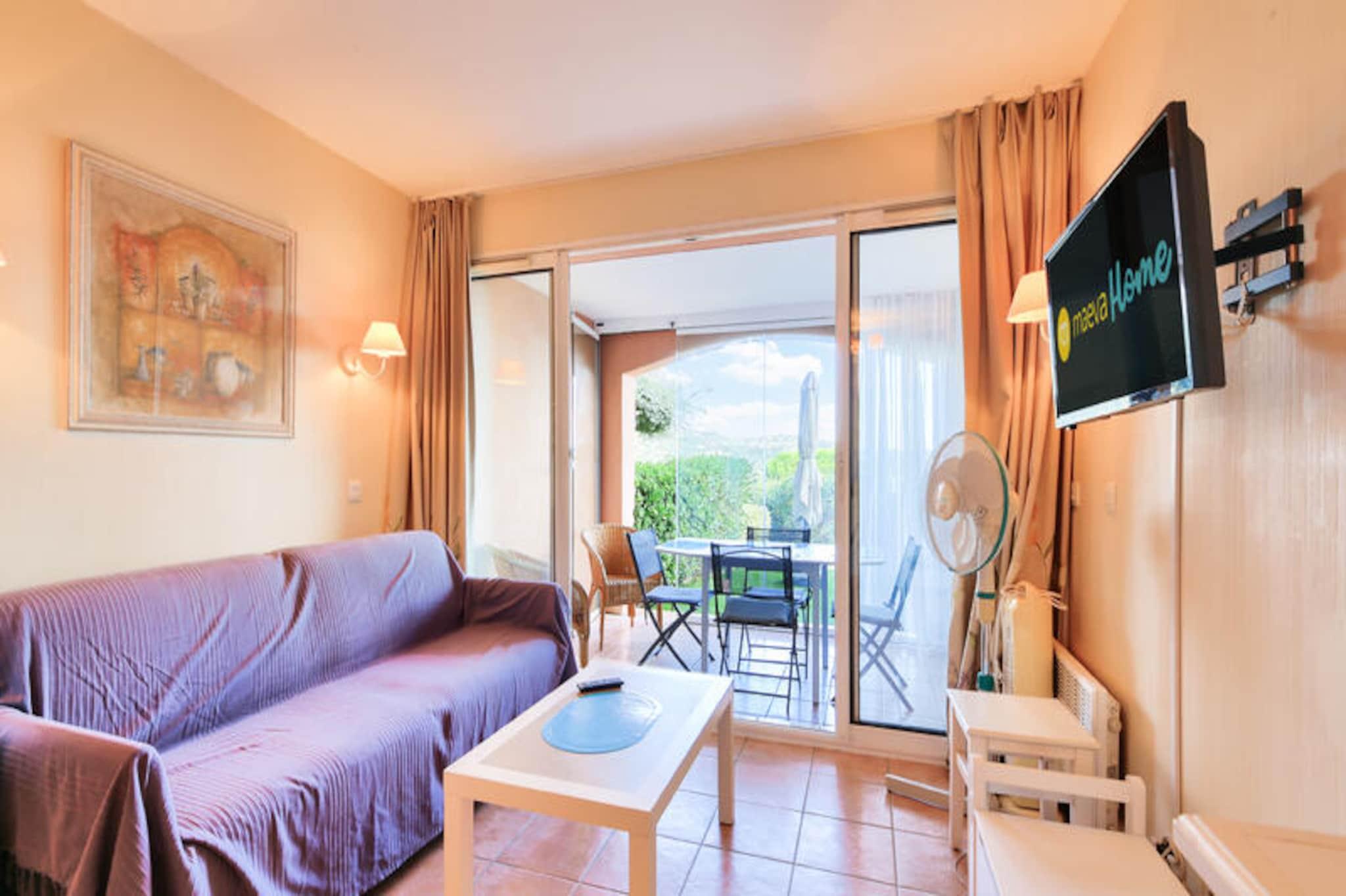 Denne charmerende lejlighed er perfekt til en budgetvenlig ferie, og tilbyder et hyggeligt og funktionelt layout for op til 4 personer. Det har en komfortabel stue med en sovesofa, et kabineområde og et soveværelse med to enkeltsenge. Kæledyr er tilladt mod ekstra gebyrer, hvilket gør det ideelt for en familie eller kæledyr elskere. Ejendommen omfatter gratis udendørs parkering og en privat have med en fantastisk havudsigt. Sengelinned og håndklæder er tilgængelige mod et ekstra gebyr, og der er et obligatorisk rengøringsgebyr ved slutningen af ??opholdet. Beliggende kun en kort afstand fra de smukke strande i Sainte Maxime og Issambres, giver denne lejlighed nem adgang til forskellige vandaktiviteter såsom sejlads, vandski, dykning og kajaksejlads. Det omkringliggende område er rigt på vandrestier, og de nærliggende byer Fréjus, Saint Raphael og Sainte Maxime byder på masser af caféer, markeder og spisemuligheder. Gæsterne kan nyde regionens naturlige skønhed og pulserende kultur, mens de drager fordel af de nærliggende aktiviteter og attraktioner. Lejligheden er udstyret med et velholdt køkkenområde, herunder et setup i amerikansk stil med bord og stole. Badeværelset har bruser og toilet, hvilket sikrer bekvemmelighed for gæsterne. Derudover tilbyder boligen adgang til en stor udendørs swimmingpool, der er sæsonåben fra maj til september. Denne lejlighed tilbyder stor værdi for pengene, med væsentlige faciliteter og fredelige omgivelser for en mindeværdig ferie.