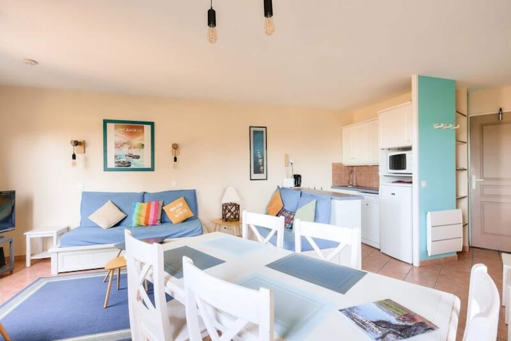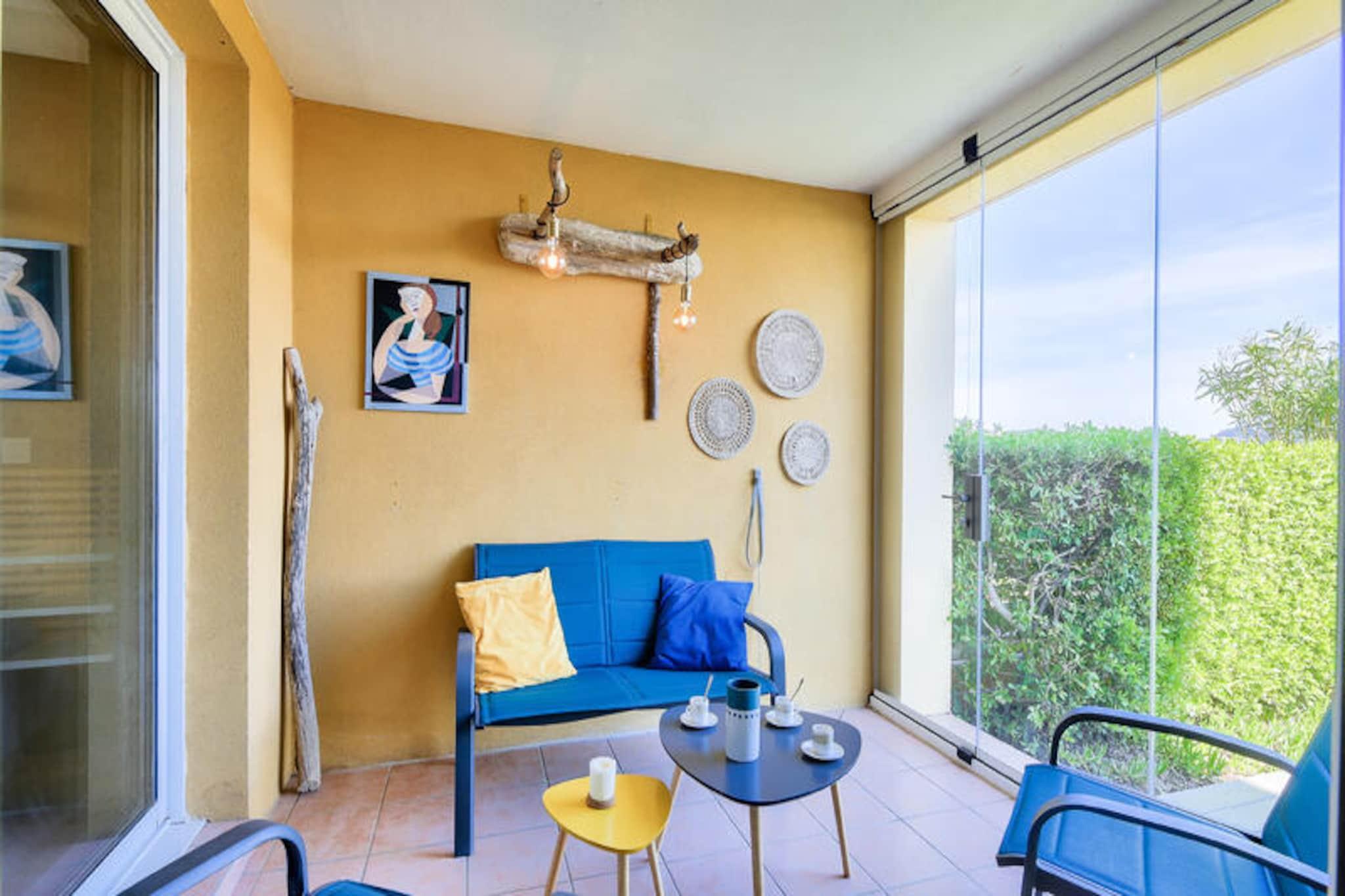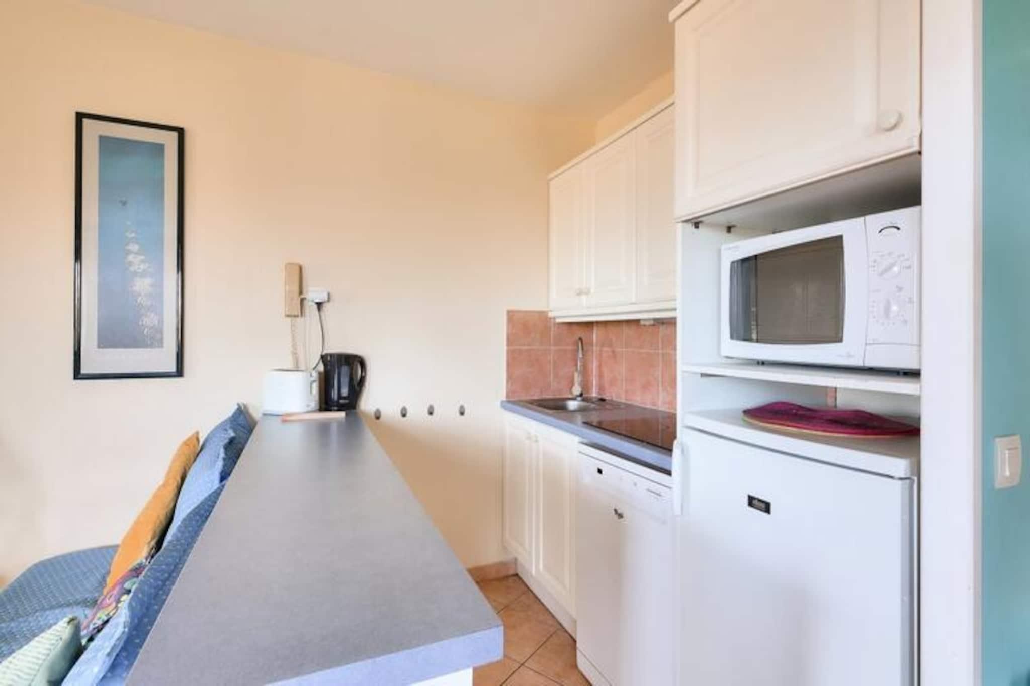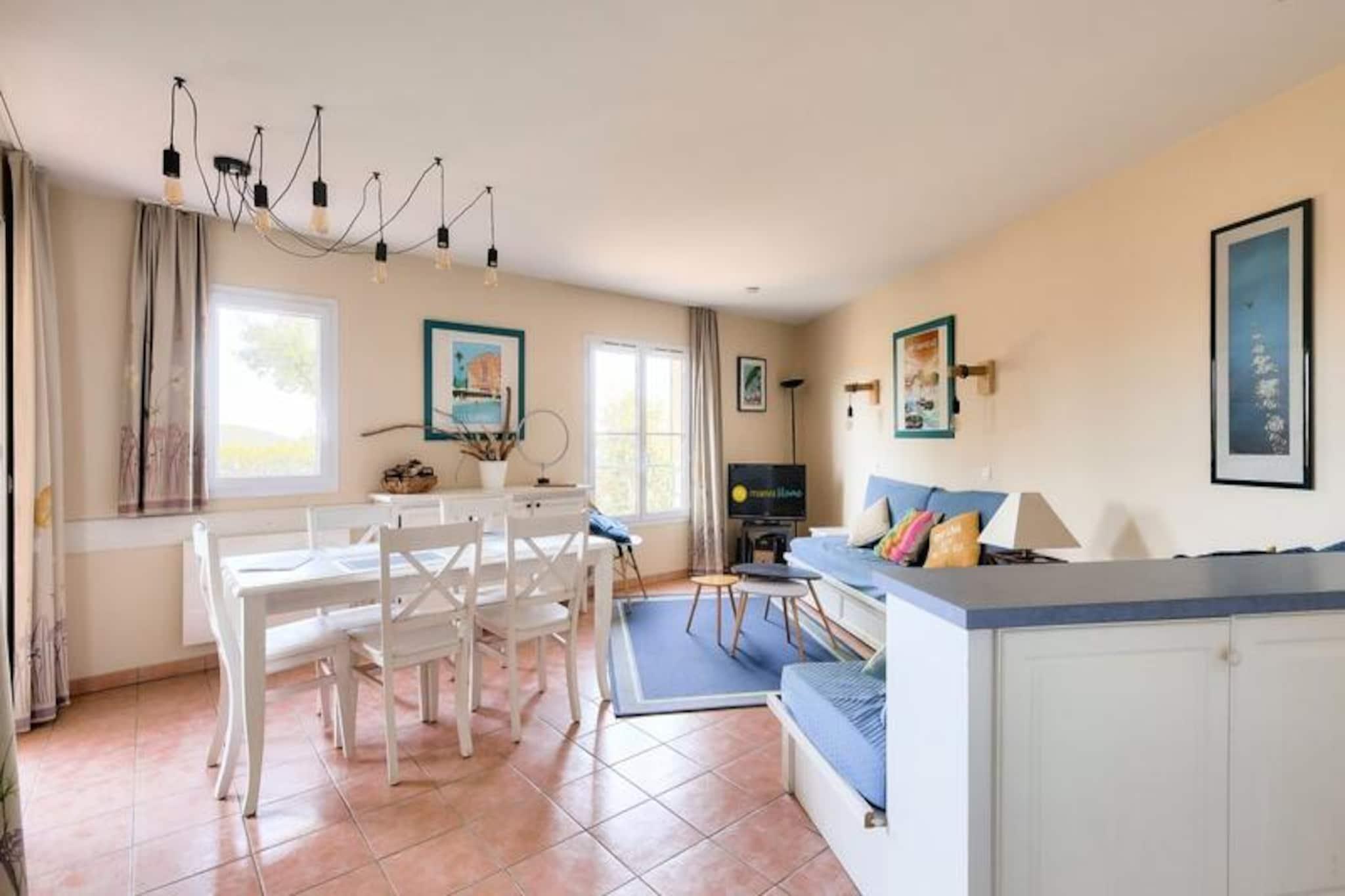Maeva Home-residensen, der ligger over mere end 15 hektar mellem Saint-Raphael og Saint-Tropez, tilbyder et smukt og roligt tilflugtssted, kun få kilometer fra strandene i Sainte Maxime og Issambres. En vandresti giver nem adgang til strandene, mens boligen kan prale af en udendørs swimmingpool, der er åben fra maj til september, med naturskøn udsigt over havet og de omkringliggende områder såsom Fréjus og Saint Raphael. Forskellige vandaktiviteter såsom sejlads, vandski, dykning og kajaksejlads er tilgængelige i nærheden, som gæsterne kan nyde. Denne lejlighed i stueetagen har aircondition og et areal på ca. 47 m² og er designet til et behageligt ophold. Det omfatter en stue med to sovesofaer og en udtræksseng, et køkkenområde åbent til stuen, to soveværelser (et med dobbeltseng og det andet med køjesenge) og et badeværelse med badekar og toilet. En møbleret overdækket terrasse med udsigt over haven og havet tilbyder et afslappende rum, komplet med et bord og seks stole. Lejligheden byder desuden på reserveret parkeringsplads og rigelig opbevaring. Gæsterne kan også drage fordel af faciliteter på stedet, såsom et legeområde, tennisbaner (mod ekstra gebyr) og vandrestier. Yderligere tjenester omfatter sengelinned, håndklæder og slutrengøring, som er tilgængeligt mod et ekstra gebyr. Kæledyr er tilladt, og WiFi-adgang er tilgængelig mod et tillægsgebyr. Ejendommen er et perfekt valg for dem, der leder efter et fredeligt tilflugtssted med kvalitetstjenester og nærliggende rekreative aktiviteter.