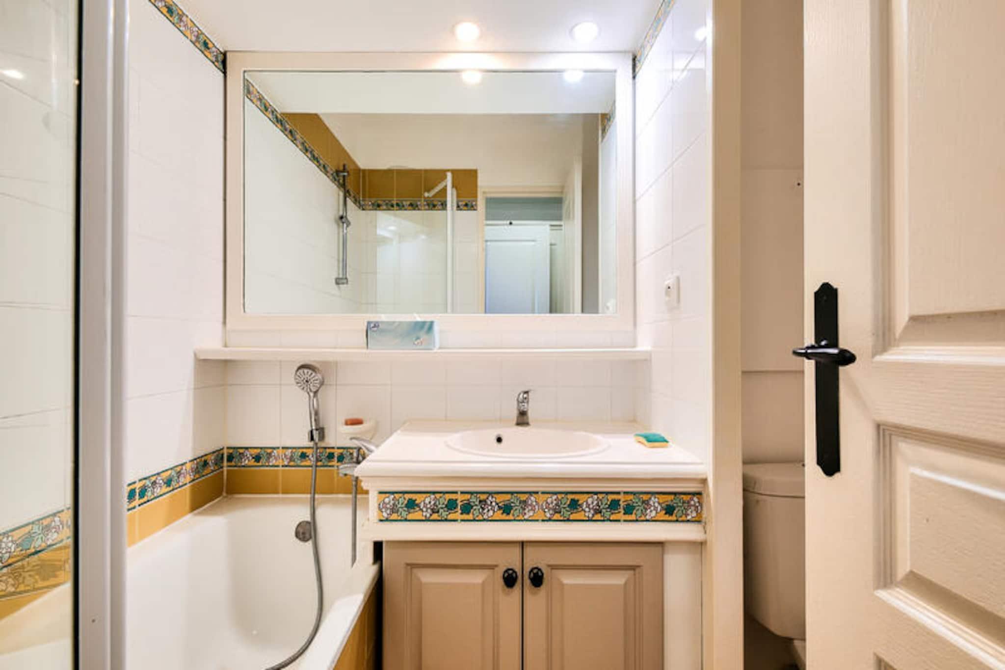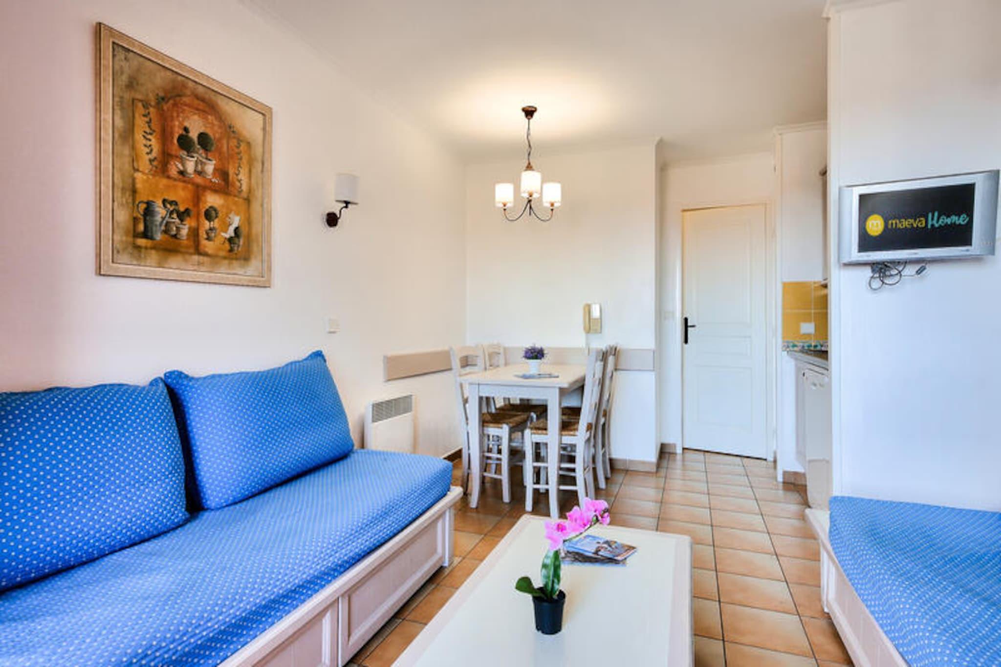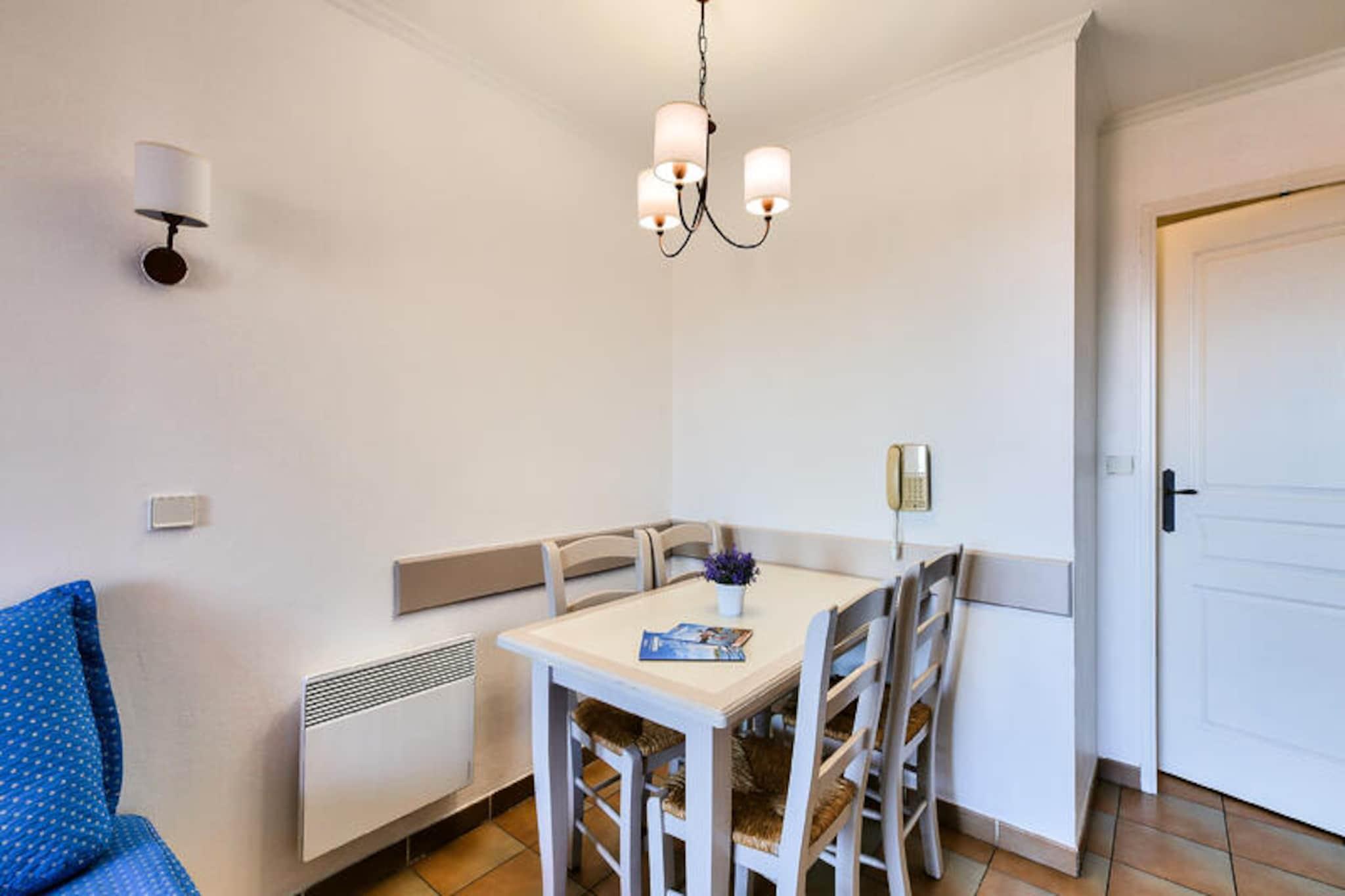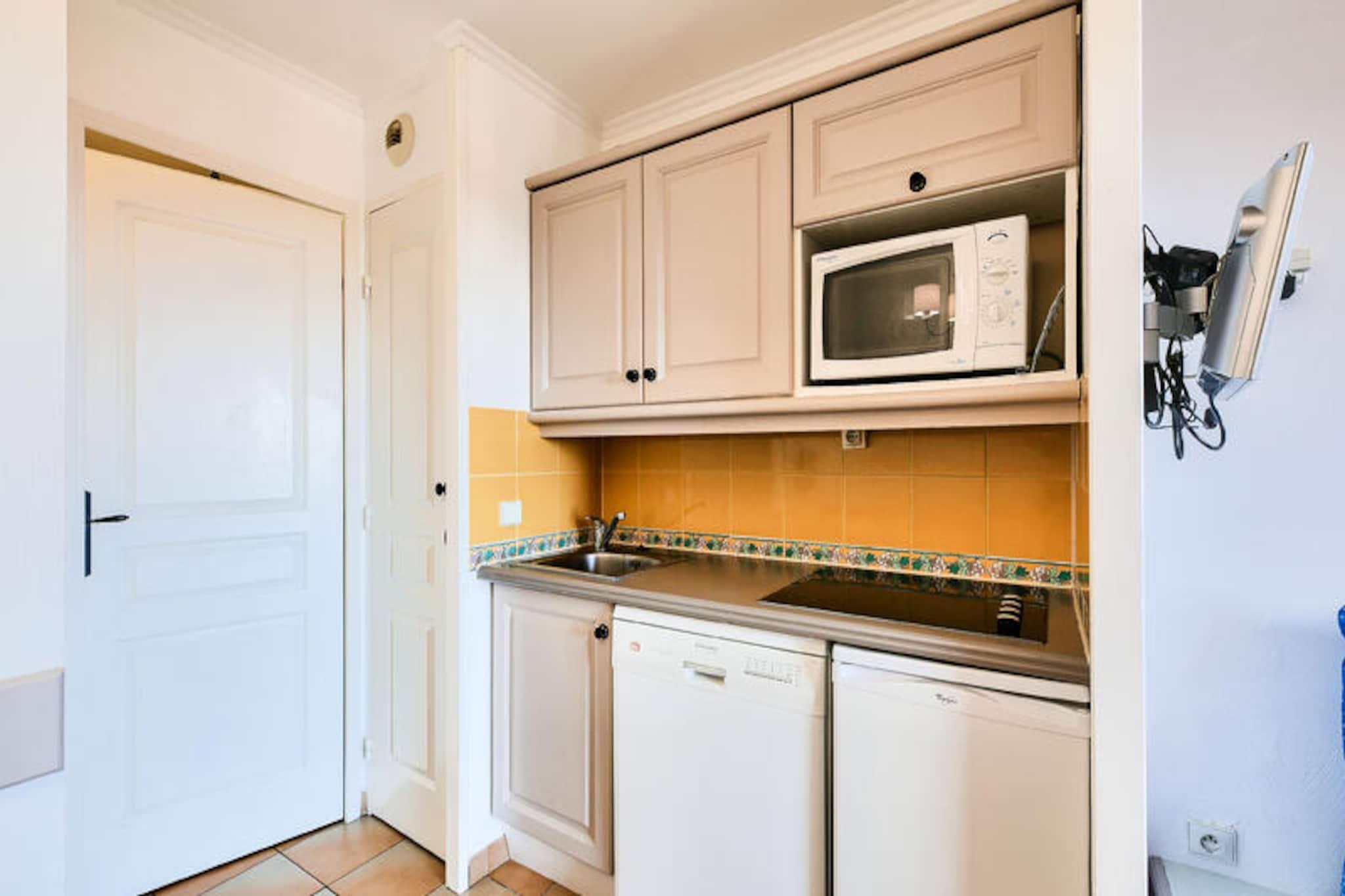 Beliggende mellem lystbådehavnen og den gamle landsby Les Issambres tilbyder denne feriebolig et fredeligt tilflugtssted med en betagende udsigt over Middelhavet. Boligen, der er beliggende i en have fuld af sydlige planter, har bygninger på 3 eller 4 etager, hvilket giver en charmerende og afslappende atmosfære. Stranden ligger kun 100 meter væk, med direkte adgang til havet, mens Thalasso-centret ved den nærliggende Premium Les Calanques des Issambres-residens tilbyder forkælelse. På stedet kan du nyde en smuk uopvarmet udendørs swimmingpool med et soppebassin og slappe af på liggestole i solen. Selve lejligheden byder på 30m² veldesignet plads, beliggende på anden sal. Det omfatter en stue med en sovesofa, et køkken med spiseplads i amerikansk stil, et soveværelse med en dobbeltseng og et badeværelse med badekar. Lejligheden har også en balkon med havudsigt, der vender mod sydøst, hvilket giver det perfekte sted at slappe af. Parkering er tilgængelig for din bekvemmelighed, og boligens førsteklasses beliggenhed sikrer, at du er tæt på landsbyens centrum og en række lokale aktiviteter, herunder dykning, tennis, sejlads og golf. Yderligere tjenester omfatter sengelinned, et vedligeholdelsessæt og adgang til Wi-Fi mod et gebyr. Kæledyr er tilladt efter forespørgsel, og et babysæt er tilgængeligt efter anmodning. Slutrengøring er påkrævet og kan arrangeres ved indtjekning. Med sin førsteklasses beliggenhed og veludstyrede lejlighed er denne bolig det perfekte sted for en afslappende ferie ved havet.