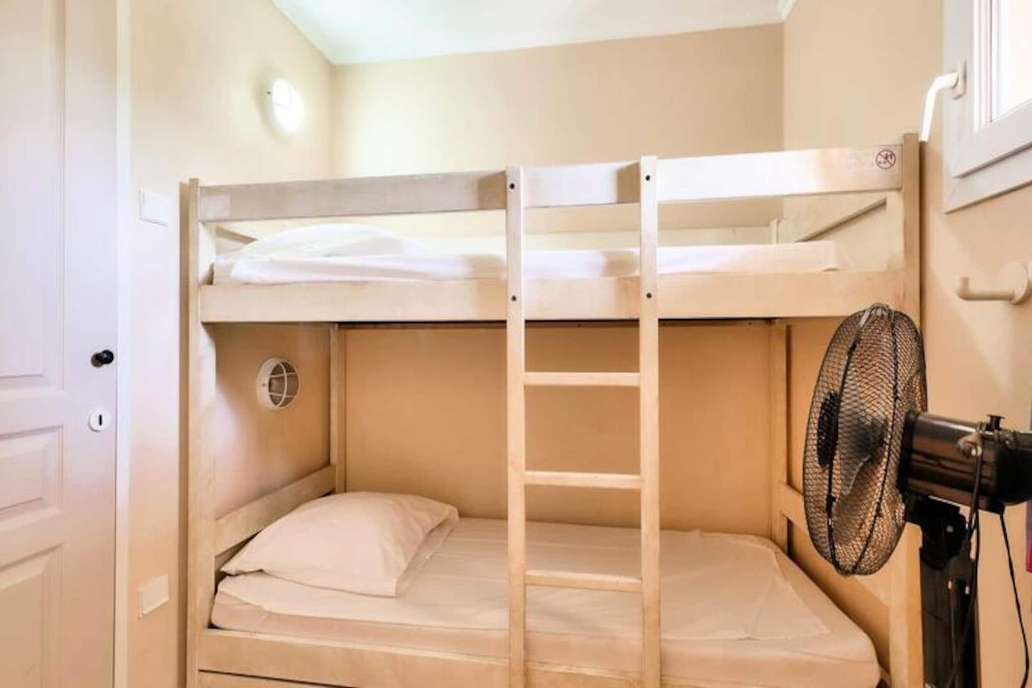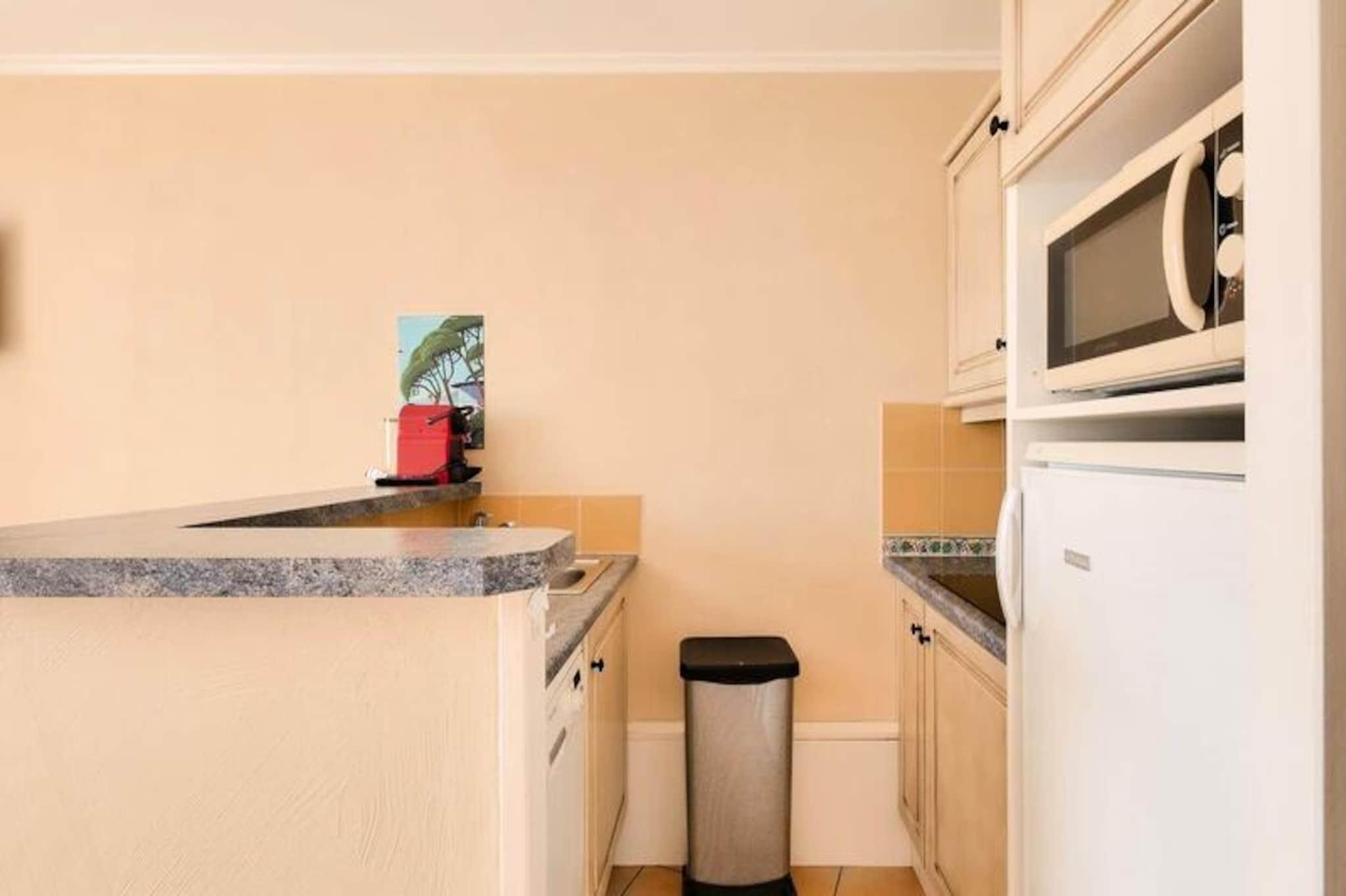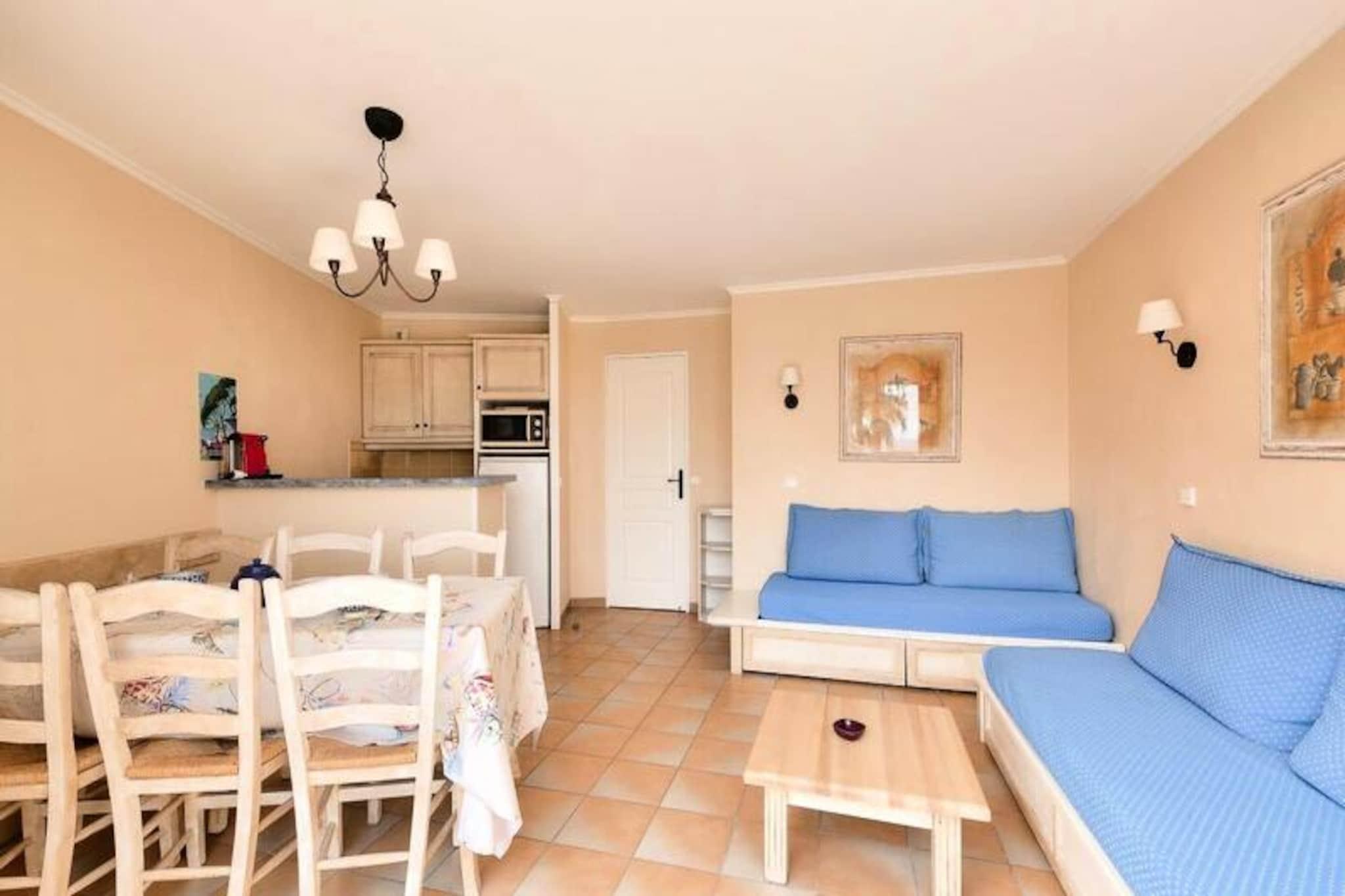 Denne charmerende lejlighed byder på et behageligt ophold for familier eller grupper med et soveværelse med dobbeltseng og et værelse med køjesenge. I stuen er der en sovesofa og en udtræksseng, perfekt til yderligere gæster. Kæledyr er tilladt (mod et ekstra gebyr), og sengetøj leveres. Lejligheden indeholder også en dedikeret overdækket parkeringsplads og en sydvendt terrasse med en fantastisk havudsigt. Slutrengøring og yderligere tjenester såsom håndklæder eller et babysæt er tilgængelige mod et tillægsgebyr. Denne ejendom ligger kun 100 meter fra stranden og tilbyder direkte adgang til havet og er beliggende i landsbyens centrum, tæt på lokale caféer, butikker og markeder. I nærheden kan du nyde en række aktiviteter såsom dykning, tennis, sejlads og golf, hvilket gør det til et ideelt sted for både afslapning og eventyr. Thalasso-centret ved naboboligen tilføjer et strejf af luksus for dem, der ønsker at slappe af. Lejligheden har et veludstyret amerikansk køkken med spiseplads og seks stole. Der er to badeværelser, det ene med bruser og det andet i god stand med moderne bekvemmeligheder. Ejendommen har også en terrasse, hvor du kan nyde måltider eller slappe af udendørs, mens du nyder den smukke havudsigt. Wi-Fi er tilgængeligt mod et ekstra gebyr, og turister skal betale den lokale turistskat under deres ophold.