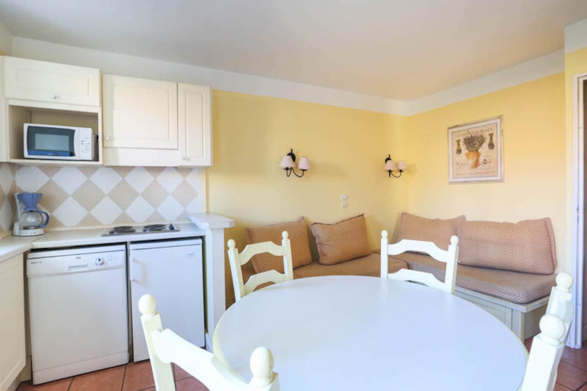 This cozy apartment offers a comfortable stay for up to 4 people, featuring 1 bedroom with a double bed, a living room with two sofa beds, and a separate sleeping area with a single bed. The bathroom includes a bathtub, and there is a separate toilet for added convenience. The apartment is located on the ground floor and includes a furnished terrace with a table and four chairs, ideal for enjoying the stunning surroundings. Pets are allowed with an additional charge, and there is free parking available on the property. Located in the Bellevue district, this apartment is just 5 km from the beautiful beaches of Issambres and 10 km from Sainte-Maxime. Nearby, you can explore hiking trails such as the Sentoral du Littoral, offering breathtaking views of the sea, or venture into the Massif des Maures for a more wooded, mountainous experience. For beach lovers, Plage de la Gaillarde is perfect for soaking up the sun, and San Peïre Beach is great for families with its calm waters and leisure facilities. The apartment features a fully equipped kitchen area open to the living room, making it easy to prepare meals during your stay. A large 200 m² infinity pool is available from May to October, providing a perfect spot to relax and enjoy the panoramic views of the Gulf of Saint-Tropez. While the pool is unsupervised, it is accessible with a badge provided at check-in. Additional services such as Wi-Fi, bed linen, towels, and end-of-stay cleaning are available for an extra charge.