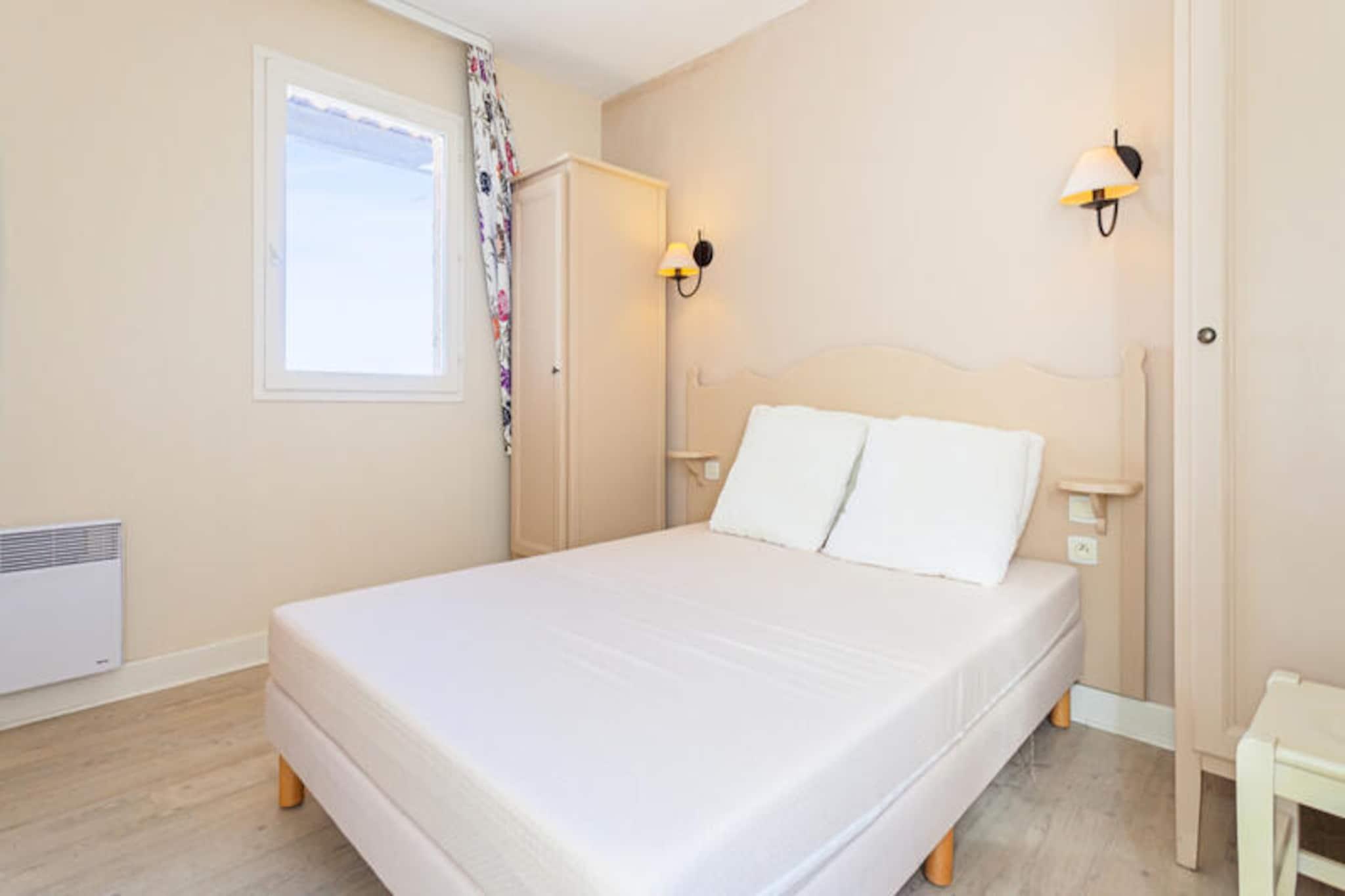 This charming apartment in Issambres, located within a 20-hectare natural park, offers an exceptional stay with stunning views of the Gulf of Saint Tropez. It features a cozy bedroom with a double bed and a cabin area with bunk beds for additional guests. The spacious living room provides two sofa beds, ideal for a small group or family. Enjoy your time on the private balcony with panoramic views, or unwind by the 200 m² infinity pool (open from May to October). The apartment is pet-friendly, so you can bring your furry companion to enjoy this beautiful setting. The surrounding area offers plenty of opportunities for outdoor activities and exploration. Nearby, you can enjoy scenic hikes such as the Sentoral du Littoral, offering magnificent sea views, or explore the wooded hills of Massif des Maures. For beach lovers, Plage de la Gaillarde is perfect for sunbathing, while San Peïre Beach is ideal for families seeking calm waters and leisure activities. The local cafes and markets provide a great chance to sample regional cuisine and purchase fresh, local produce. The apartment is well-equipped for your convenience, including a fully functional open kitchen with all essentials, a bathroom with a bathtub, and a separate toilet. The living area is bright and airy, providing a comfortable space for relaxation. For added comfort, services like wifi (for an additional fee), bed linen, towels, and daily linen changes are available. You’ll have free access to the residence's free parking and the inviting infinity pool for a refreshing dip after a day of exploring.