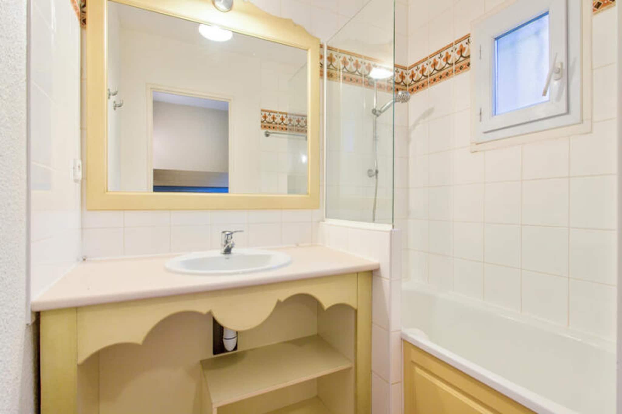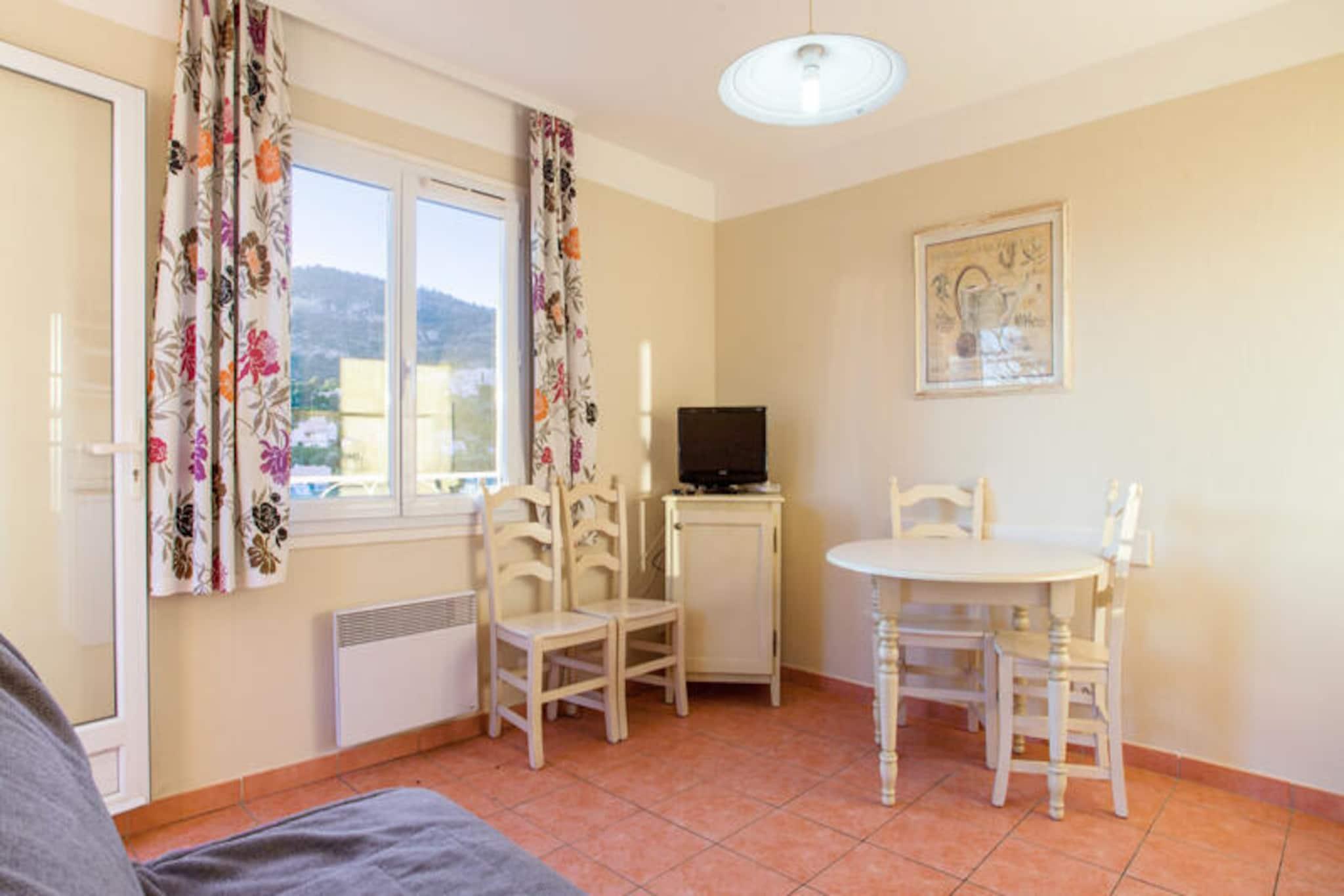 Denne lejlighed p? 33 m² i Les Issambres tilbyder en komfortabel ferieudlejning med et sovev?relse med to enkeltsenge og et kabineomr?de med k?jesenge. En sovesofa i stuen giver ekstra soveplads til op til 6 g?ster. Lejligheden er k?ledyrsvenlig og har balkon med panoramaudsigt over bugten og bakkerne. Sengelinned og h?ndkl?der er tilg?ngelige mod et ekstra gebyr, og slutreng?ring er obligatorisk. Beliggende kun 5 km fra strandene er denne ejendom en del af Domaine des Issambres-distriktet, hvilket giver dig gratis adgang til en smuk 330 m² stor swimmingpool, der er ?ben fra juni til september. Sainte Maxime ligger kun 10 km v?k, og du kan udforske andre n?rliggende badebyer langs C?te d'Azur. Der er ogs? lokale markeder, caf?er og restauranter for en fuld ferieoplevelse. Lejligheden har et fuldt udstyret k?kken ?bent til stuen, et badev?relse med badekar og et separat toilet. Der tilbydes parkeringsplads, og WiFi er tilg?ngeligt mod et till?gsgebyr. Nyd den f?lles swimmingpool og de natursk?nne omgivelser under dit ophold.