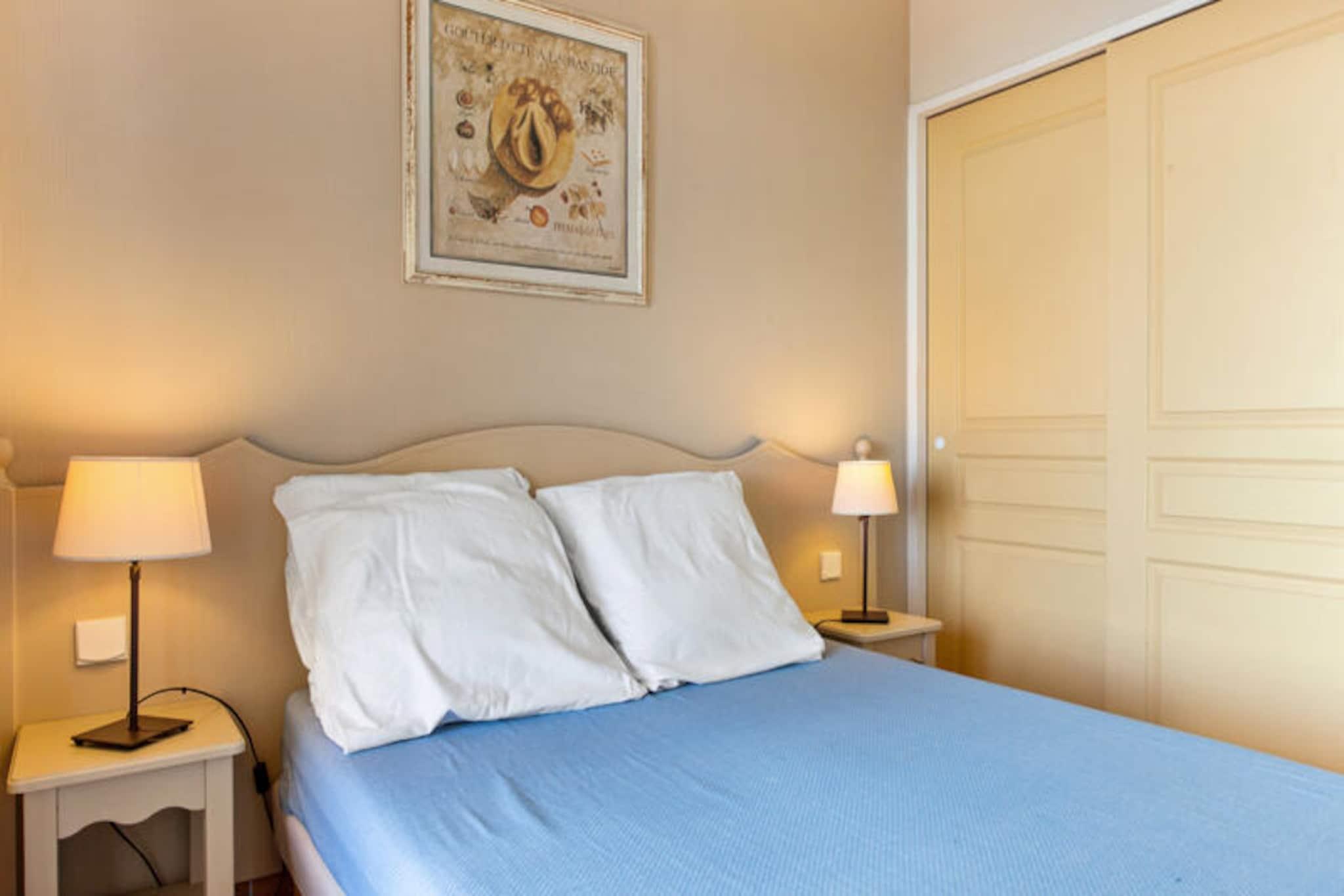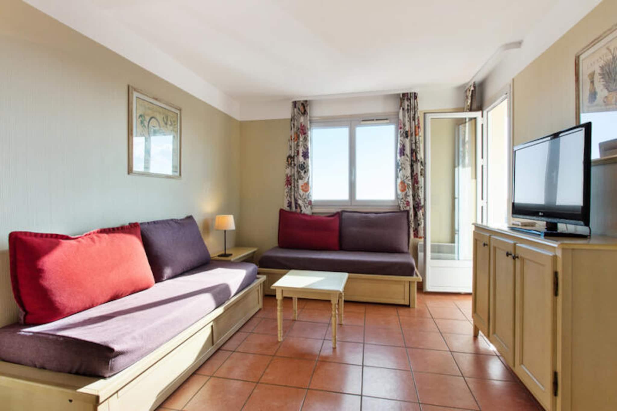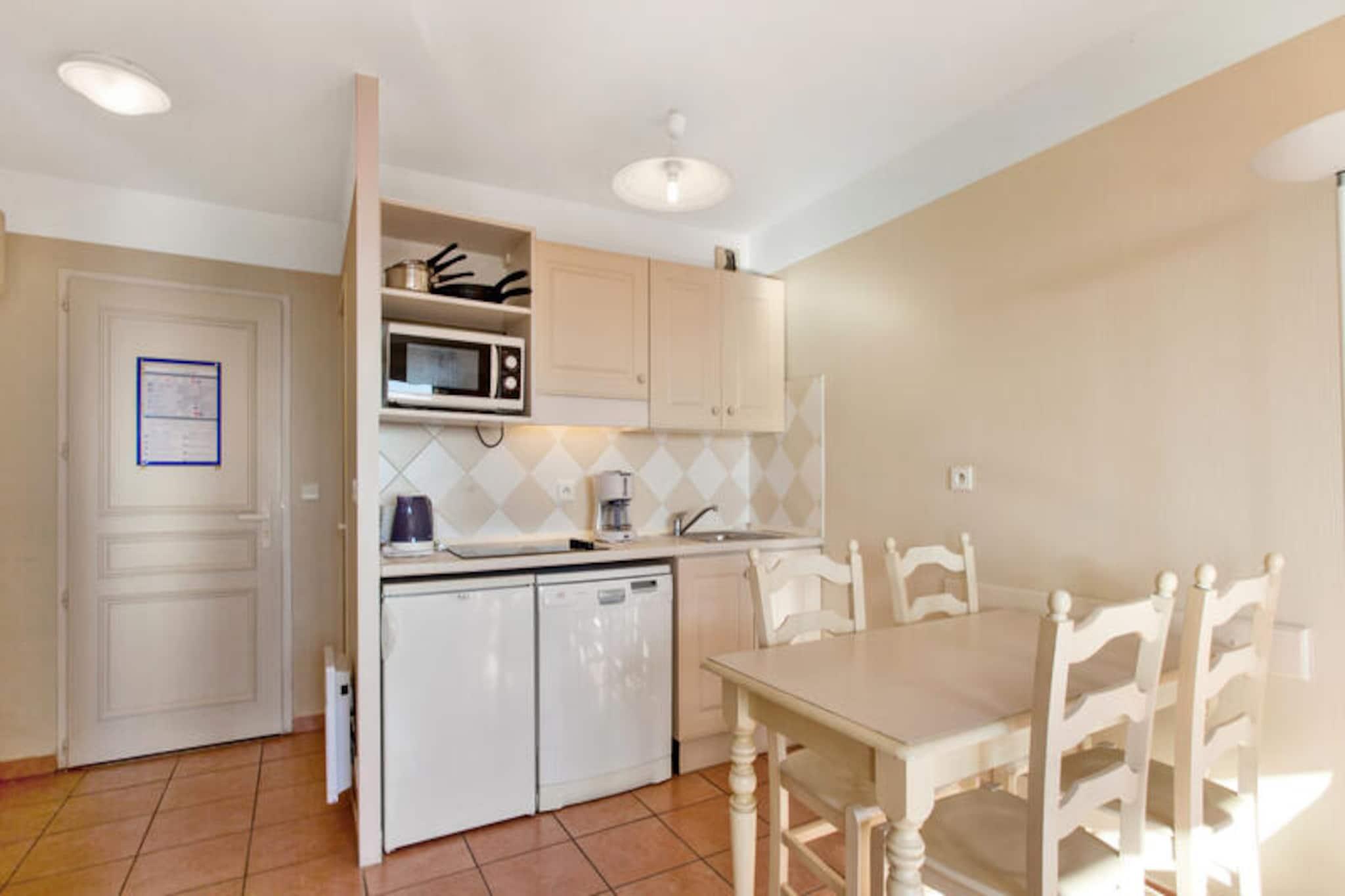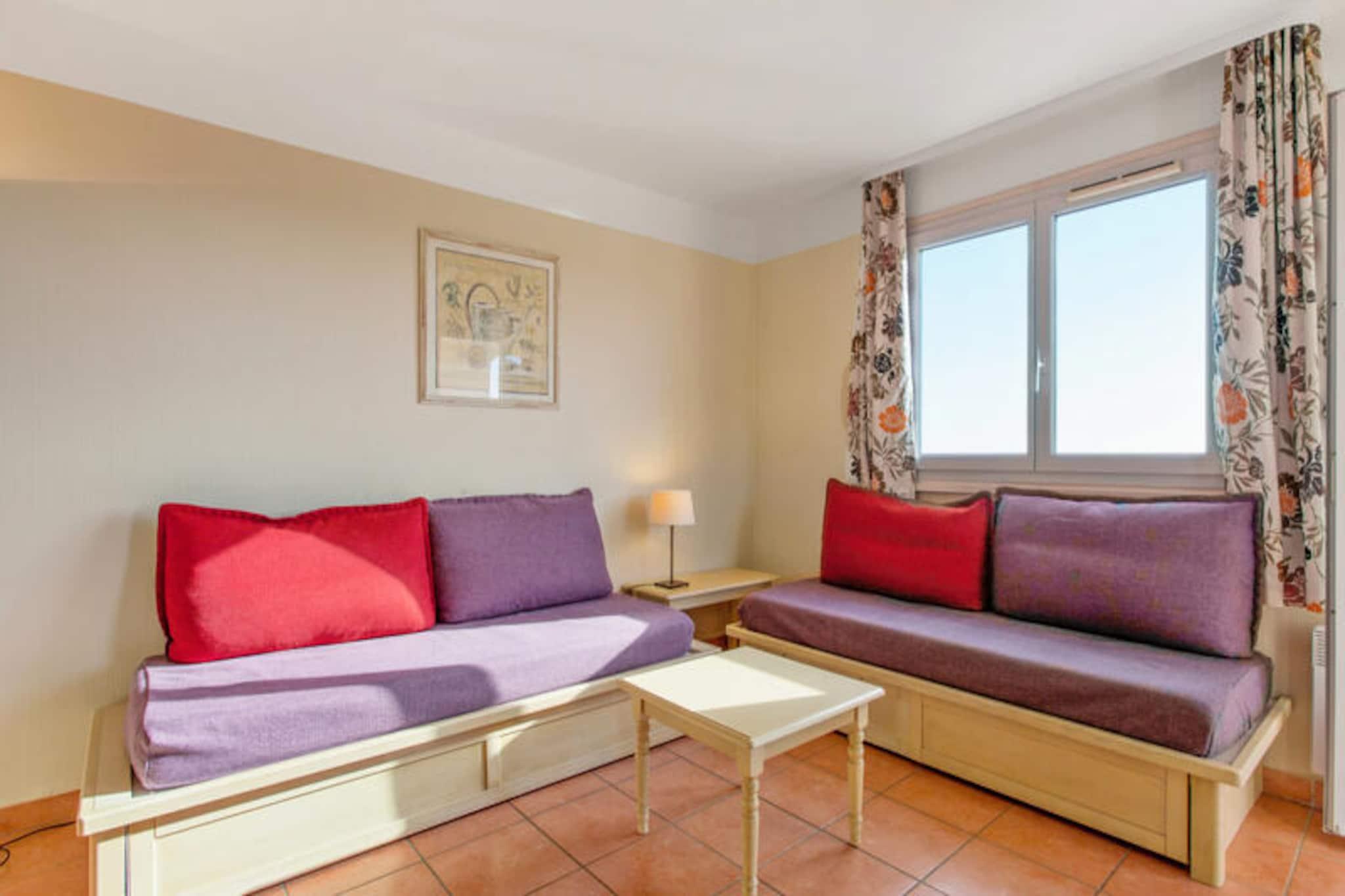 Denne komfortable lejlighed er beliggende i det fredelige Lauriers-distrikt i Les Issambres, og tilbyder en god base for dit ophold i Sydfrankrig. Lejligheden er ideel til familier med en stue med to enkeltsovesofaer og en udtræksseng samt et separat soveværelse med en dobbeltseng. Rummet er lyst, roligt og ikke overset, med en dejlig udsigt over Saint-Tropez-bugten. Kæledyr er tilladt mod et ekstra gebyr. Gæsterne har også adgang til en uovervåget swimmingpool og soppebassin fra maj til september. Lejligheden er perfekt beliggende for at udforske lokalområdet. Kun 3 km væk finder du smukke strande som Plage de la Gaillarde, hvor du kan slappe af i solen, eller San Peïre-stranden, der er ideel for familier. For naturelskere tilbyder nærliggende vandrestier som Sentoral du Littoral en fantastisk havudsigt, mens Massif des Maures byder på naturskønne ruter gennem skovklædte bakker. Saint-Tropez-bugten og andre lokale attraktioner er også let tilgængelige. Indvendigt er lejligheden fuldt udstyret med køkken åbent til stuen, badeværelse med både badekar og bruser samt separat toilet. Balkonen med bord og stole giver et afslappende sted at nyde den smukke havudsigt. Yderligere faciliteter omfatter valgfri Wi-Fi, parkering, sengetøj, håndklæder og slutrengøring mod et ekstra gebyr.