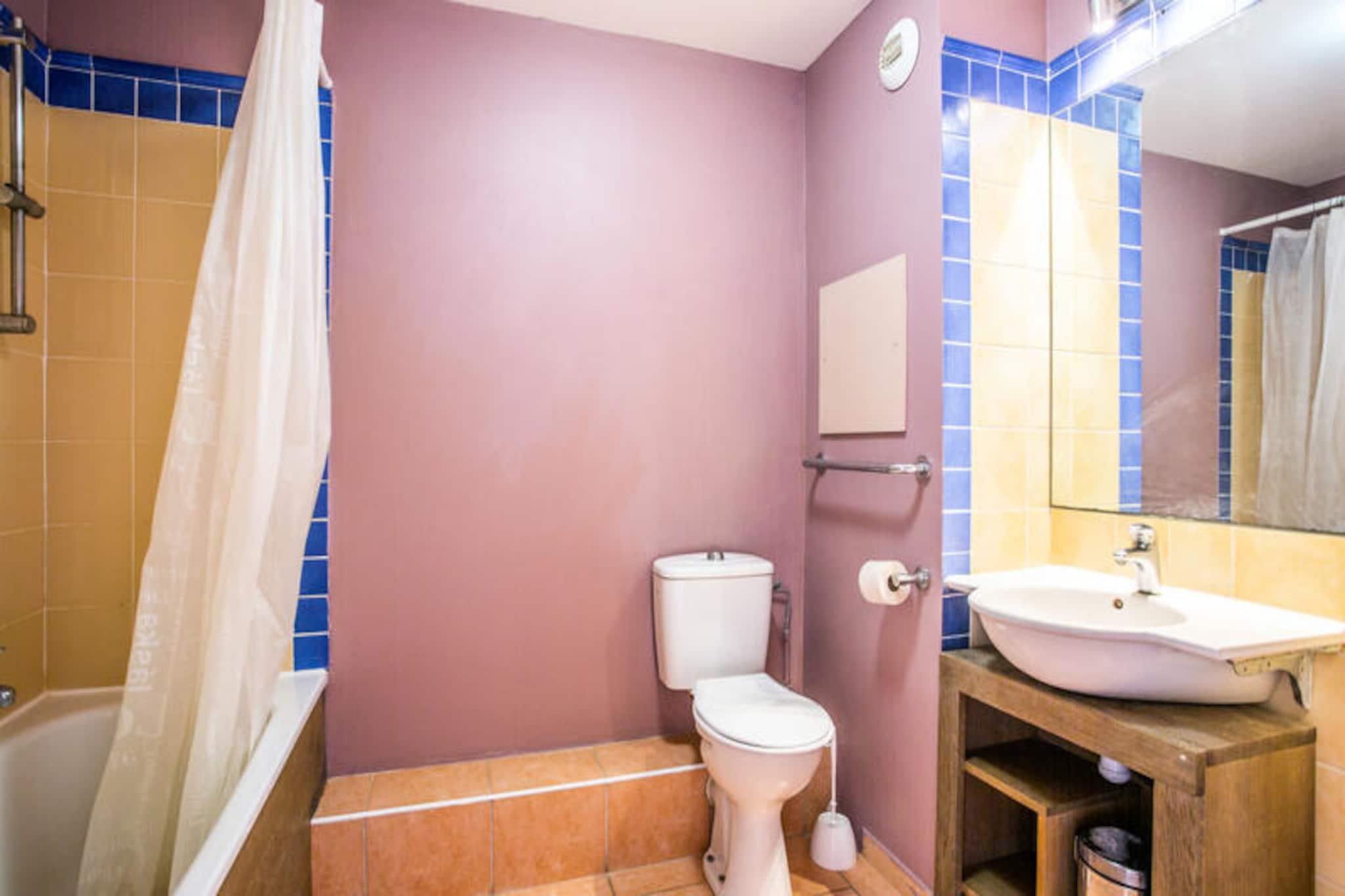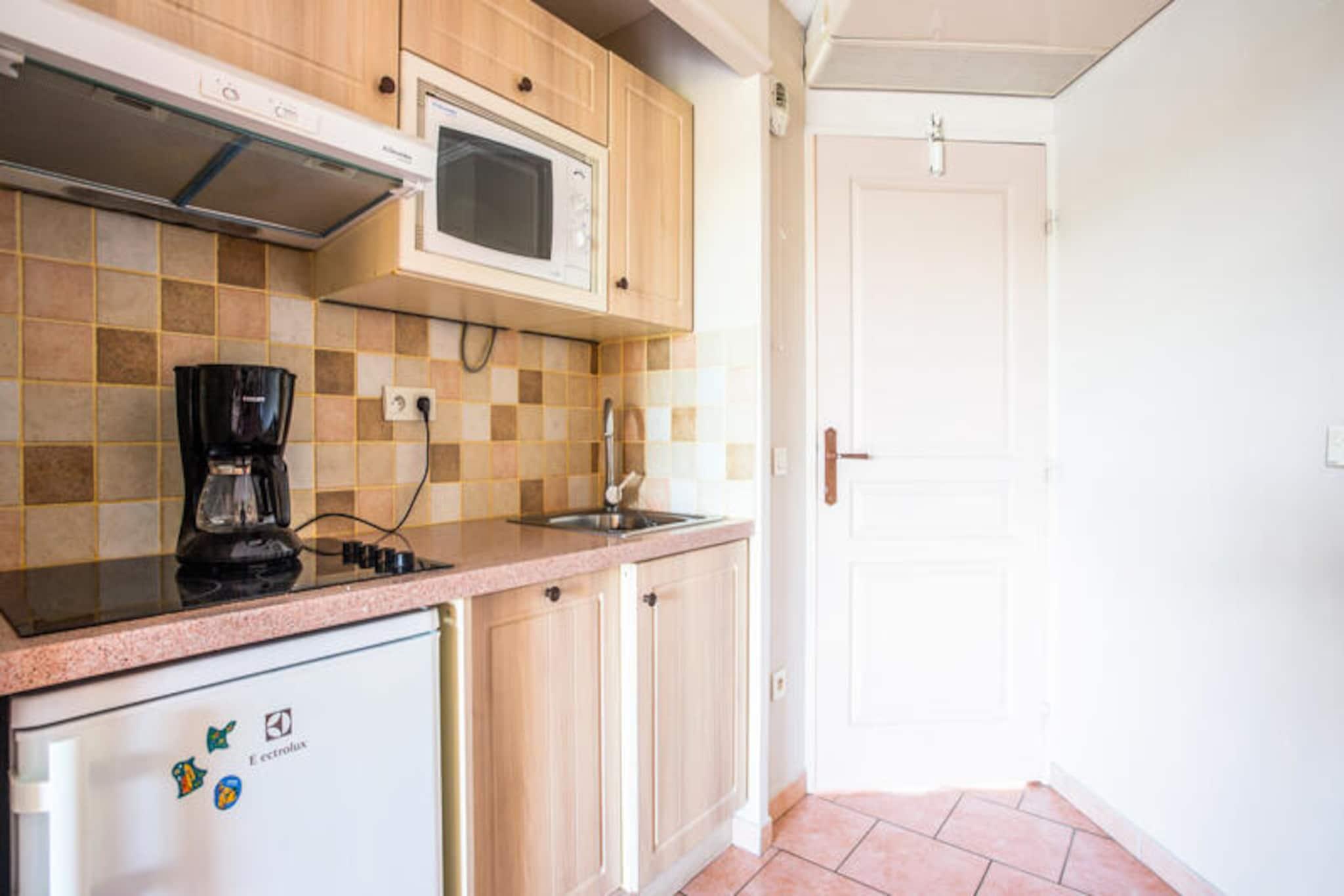 Denne charmerende feriebolig ligger i Les Calanques des Issambres-residensen og tilbyder en fantastisk udsigt over Saint-Tropez-bugten. Det kan rumme op til 5 personer med en stue med 2 enkeltsovesofaer, den ene med en udtr?ksseng og et kabineomr?de med 2 k?jesenge. K?ledyr er tilladt efter anmodning. P? stedet finder du en 300 m² havvandsswimmingpool (?ben april til oktober) og et legeomr?de, der sikrer sjov for hele familien. Ejendommen ligger kun 100 meter fra stranden, hvilket giver nem adgang til havnefronten. Udforsk det n?rliggende Thalgo® thalassoterapicenter for wellness-behandlinger, eller nyd aktiviteter som golf og dykning. Det omkringliggende omr?de byder p? en blanding af lokale caf?er, butikker og markeder at opdage, hvilket giver dig mulighed for at fordybe dig i den pulserende atmosf?re i C?te d'Azur. Lejen inkluderer et fuldt udstyret k?kken ?bent til opholdsomr?det, perfekt til at tilberede m?ltider. Badev?relset har badekar og toilet for ekstra bekvemmelighed. En privat terrasse giver mulighed for udend?rs afslapning, og du har din egen parkeringsplads. Sengelinned er valgfrit, og en slutreng?ringspakke er obligatorisk. Nyd dit ophold med adgang til den f?lles havvandspool og yderligere faciliteter s?som internetadgang mod et ekstra gebyr.