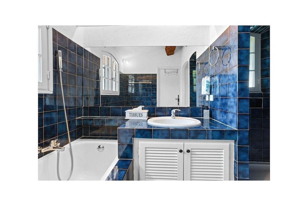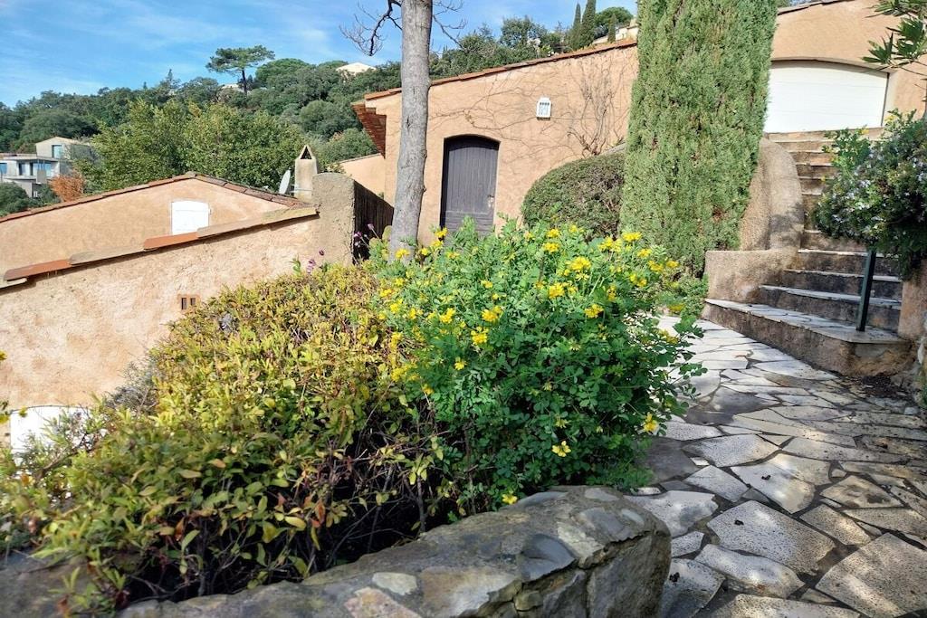 Villa Bellevue ligger kun 2,3 km fra Les Issambres centrum med dens forskellige strande, butikker, ugentlige marked, turistkontor, posthus, thalassoterapihotel, vandsportscenter, caféer, bagerier, privat marina med færgeforbindelse til St. Tropez (hver halve time i højsæsonen) og restauranter. Fra terrassen, stuen og alle soveværelser har du en smuk udsigt over havet og Saint Tropez. Havudsigten fra stuen og den store terrasse er så storslået og beroligende, at du føler dig som en kongelig, især når du ser lysene fra Saint Tropez om aftenen. Siden 2020 har vi tilbudt vores gæster en saltvandspool. Ideel til følsom hud. Vandet behandles ved elektrolyse, som producerer naturligt klor fra salt, så det ikke svier i hud eller øjne. Poolen rengøres og vedligeholdes regelmæssigt af et specialiseret firma.
