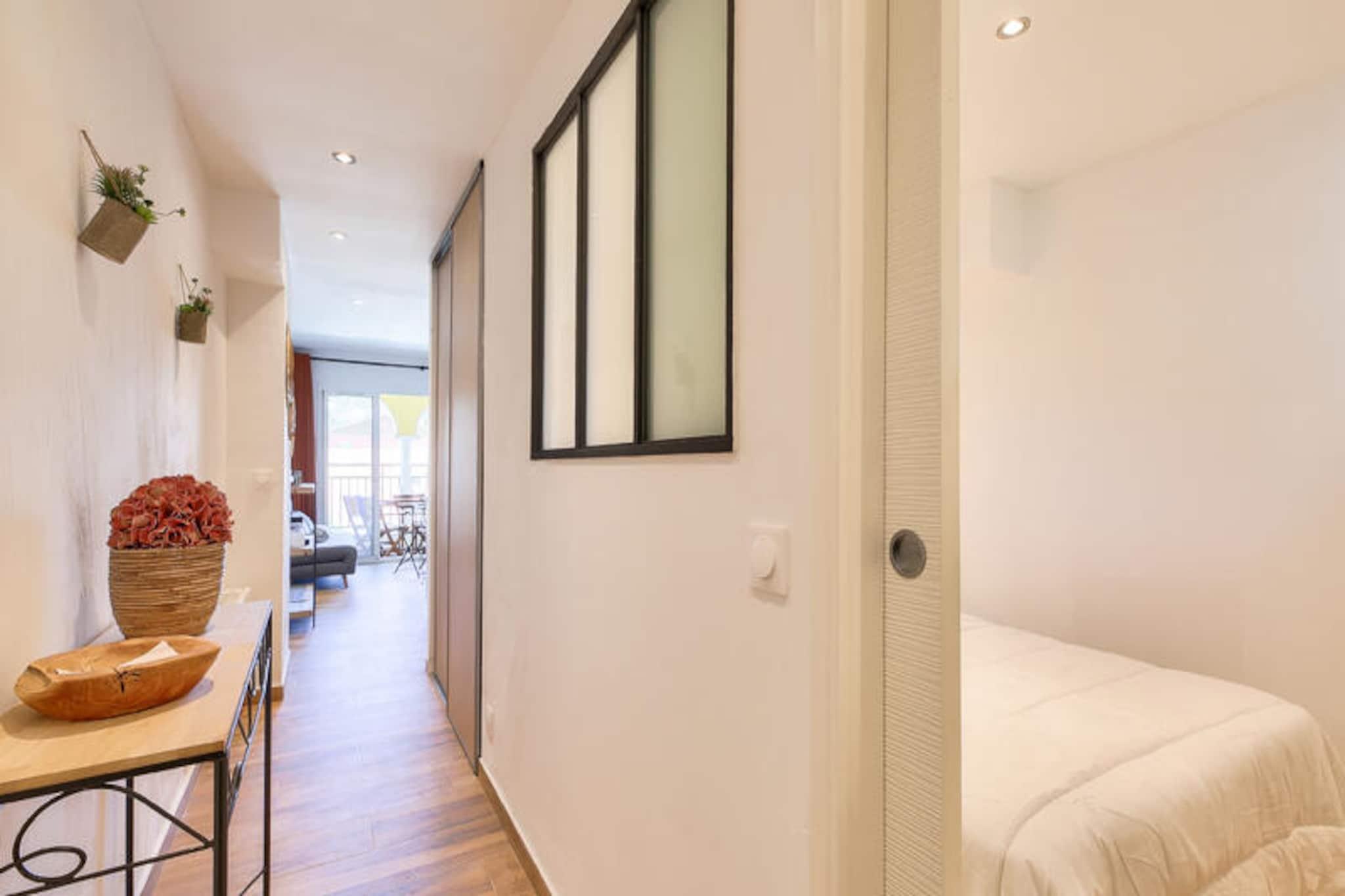 Hvor Middelhavets azurblå bølger møder Côte d'Azurs charme, inviterer denne dejlige lejlighed på Les Rivages des Issambres dig til at opleve kystlivet, når det er bedst. Omgivet af frodige middelhavshaver tilbyder boligen et roligt tilflugtssted kun få skridt fra stranden, hvor den blide havbrise og lyden af ??bølger skaber en rolig baggrund for dit ophold. Perfekt placeret mellem lystbådehavnen og den gamle landsby Les Issambres, er dette et paradis for både afslapning og udforskning. Indenfor er lejligheden omhyggeligt designet til at kombinere komfort og funktionalitet. Den lyse stue har en sovesofa til ekstra gæster, mens det halvåbne køkken er udstyret til at tilberede måltider, som du kan nyde på din private sydøstvendte terrasse med udsigt over poolen. Det hyggelige soveværelse med en dobbeltseng sikrer afslappende nætter, og det moderne badeværelse med bruser tilføjer et strejf af bekvemmelighed. Med 32 m² plads er denne lejlighed ideel til par eller små familier, der søger en fredelig ferie. Ud over boligen venter den gyldne sandstrand kun 100 meter væk, mens det nærliggende Thalasso-center tilbyder luksuriøse spabehandlinger. For de eventyrlystne er aktiviteter som dykning, sejlads og golf inden for rækkevidde, sammen med charmerende lokale markeder og naturskønne kyststier. Uanset om du slapper af ved den uopvarmede udendørs pool eller udforsker de pulserende omgivelser, er hvert øjeblik her fyldt med magien fra den franske riviera. Vælg denne kystperle til din næste ferie og skab uforglemmelige minder ved Middelhavets bred.