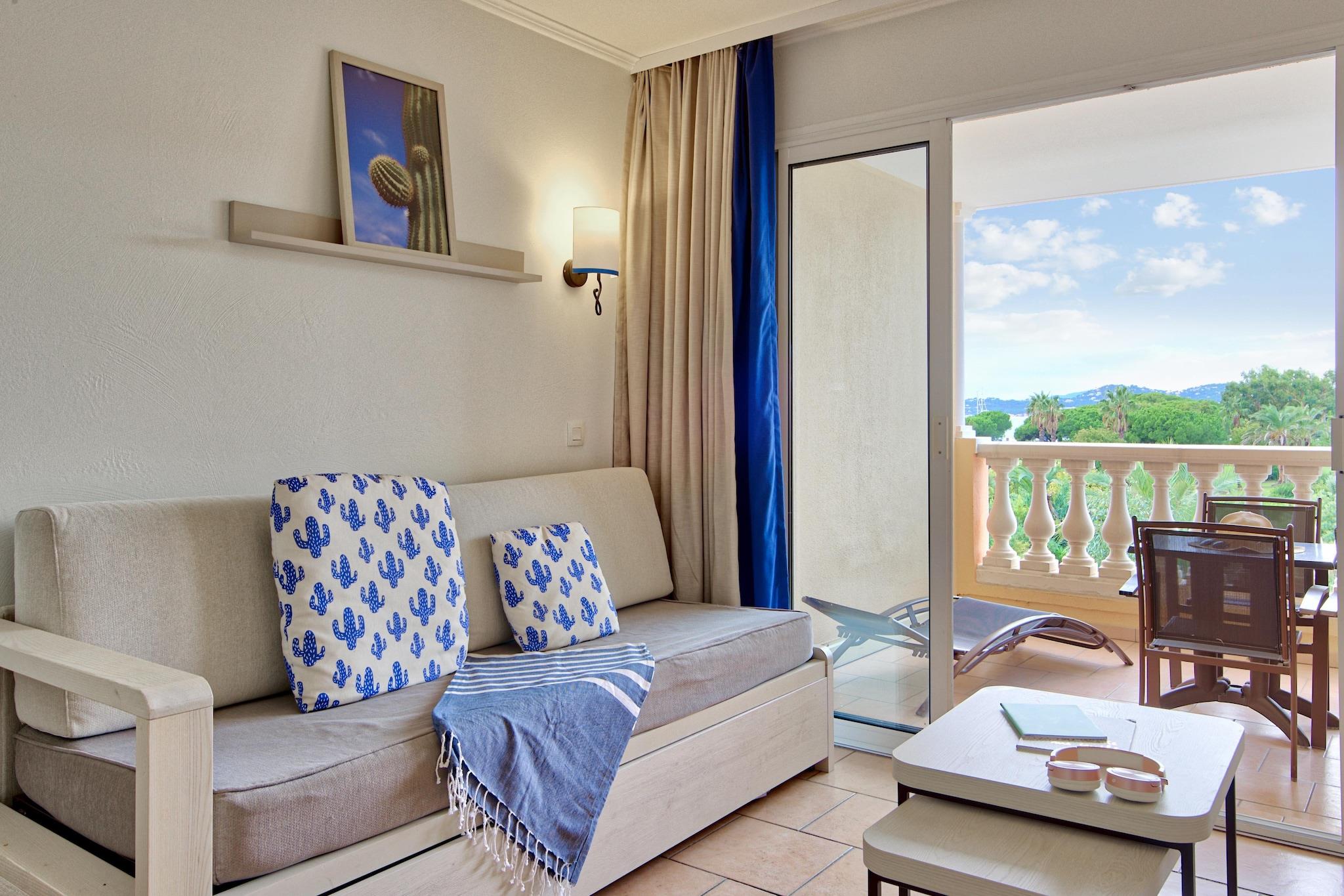 Idyllisk beliggenhed ved bugten St. Tropez og kun 100 m fra havet! Ferieboligen med tilstødende thalassoterapicenter er en sand ferieoase. Komplekset er omgivet af en middelhavspark og er i stil med Côte d'Azur. De klimatiserede lejligheders terrasser og balkoner har udsigt over bugten St. Tropez Takket være dens ideelle beliggenhed mellem Ste Maxime og Frejus du vil drage fordel af en bred vifte af fritidsaktiviteter. Det internationale vandskicenter i Roquebrune er meget kendt. Dykning, sejlads, surfing og ridning er tilgængelige. Vandforlystelsesparkerne Aqualand i Ste Maxime eller Fréjus vil glæde dine børn. kasino eller Lunapark med næsten 50 forskellige attraktioner giver et attraktivt aftenprogram. Du kan også udforske den smukke landskab i Mauren bjergene på de afmærkede vandrestier