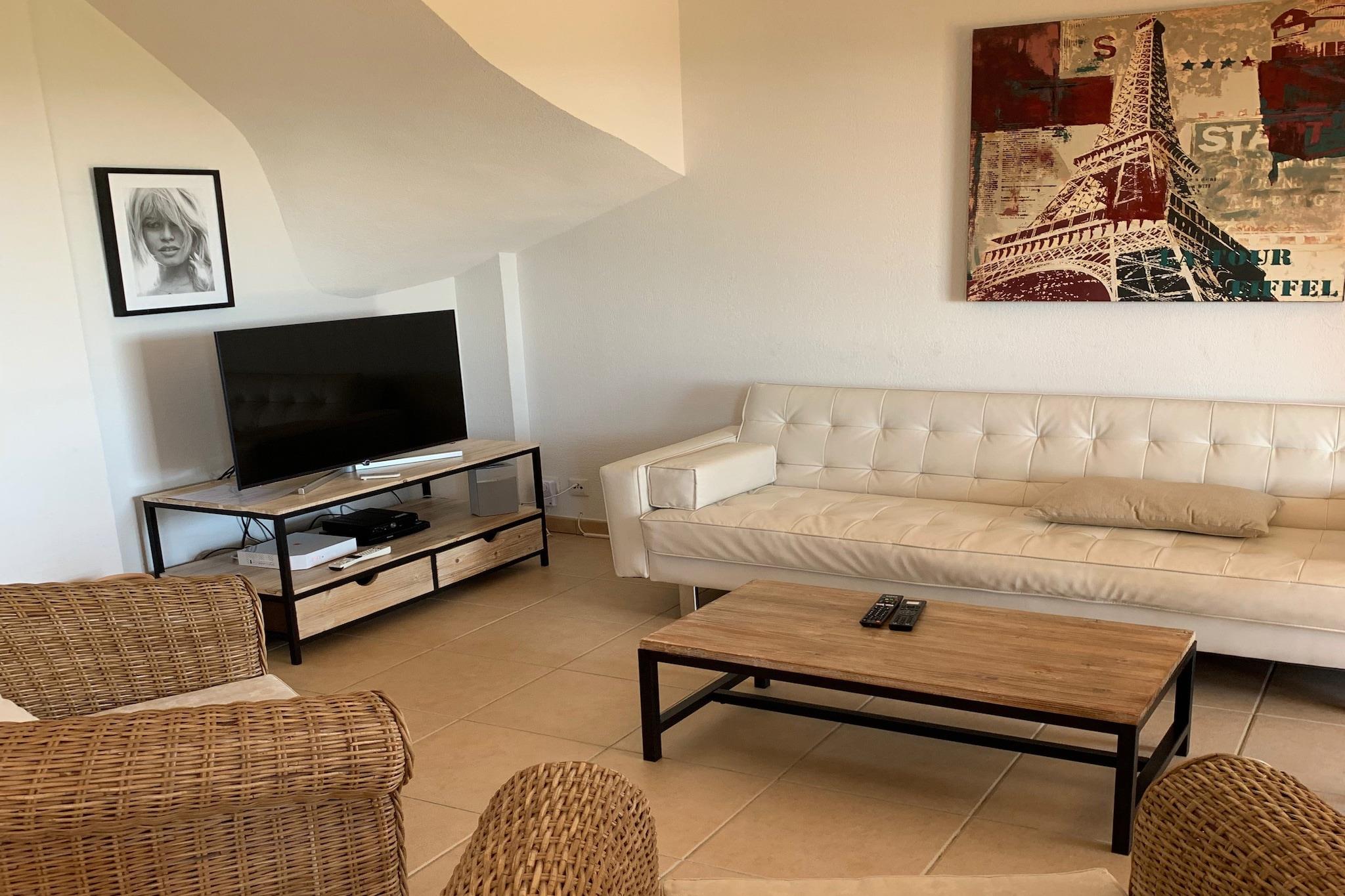 Stueetage: (sofastue(Fjernsyn(parabol), DVD-afspiller, radio, CD-afspiller, stereoanlæg), åbent køkken(komfur(glaskeramisk), kaffemaskine(kaffetragt), ovn(grill-ovn), opvaskemaskine , køleskab, vaskemaskine), stue / spisestue(spisebord(6 personer)), toilet) Mellemetage: På 1. etage: (soveværelse(dobbeltseng eller 2 enkeltsenge Senge, klimaanlæg), soveværelse(køjeseng, klimaanlæg), Soveværelse med badeværelse(dobbeltseng eller 2 enkeltsenge Senge, bruser, klimaanlæg), badeværelse(bruser)) toilet, garage, Netflix, mikrobølgeovn, tremmeseng, varme(central), klimaanlæg, terrasse(privat, 22 m2), have(privat), havemøbler, solstole, grill, parkering, liggestole, Parasol, swimmingpool(deles med andre gæster, indhegnet, 13 x 6 m., opened from May upto and including Sep), cykler til rådighed, strygebræt, hyggespil