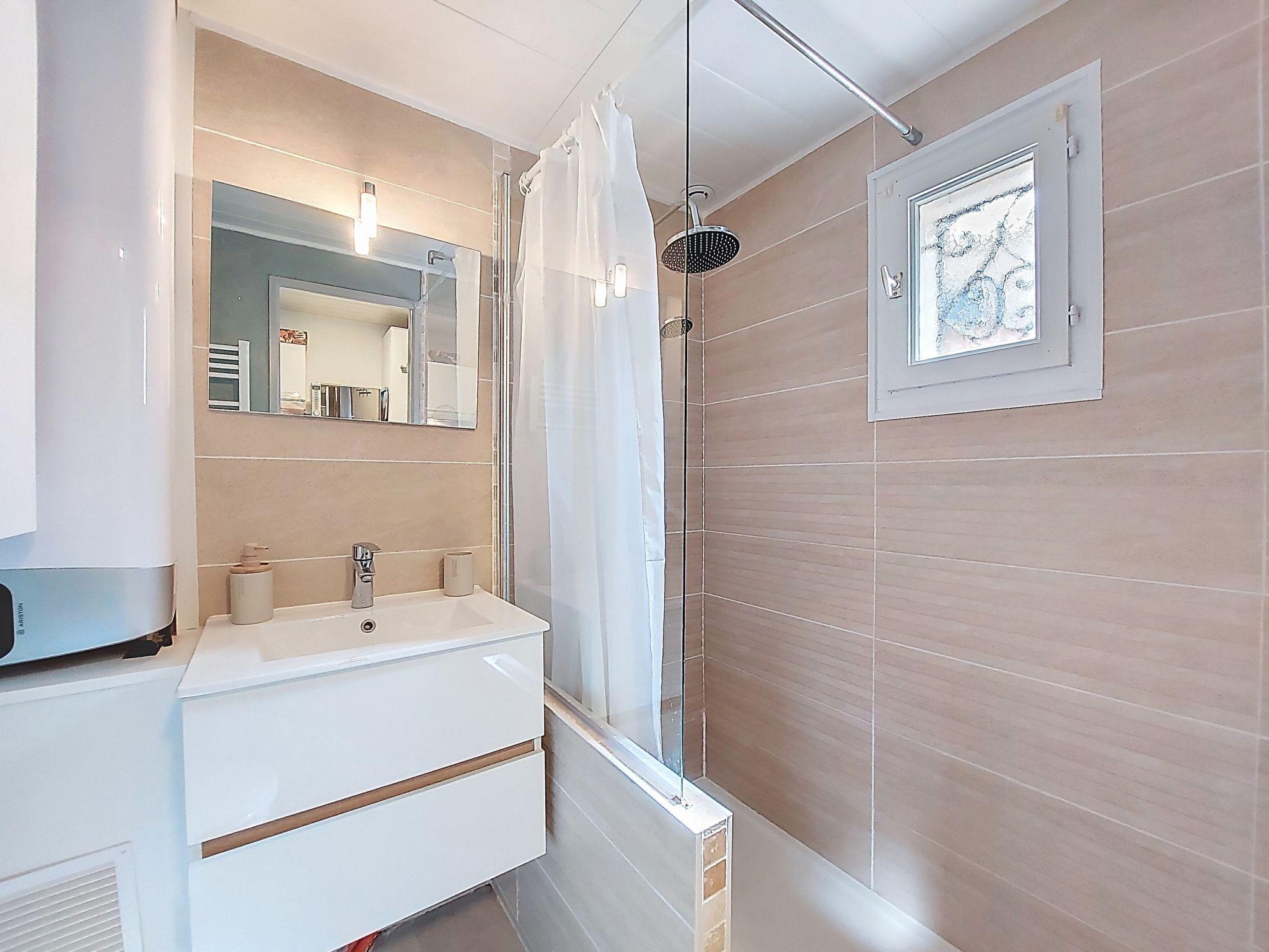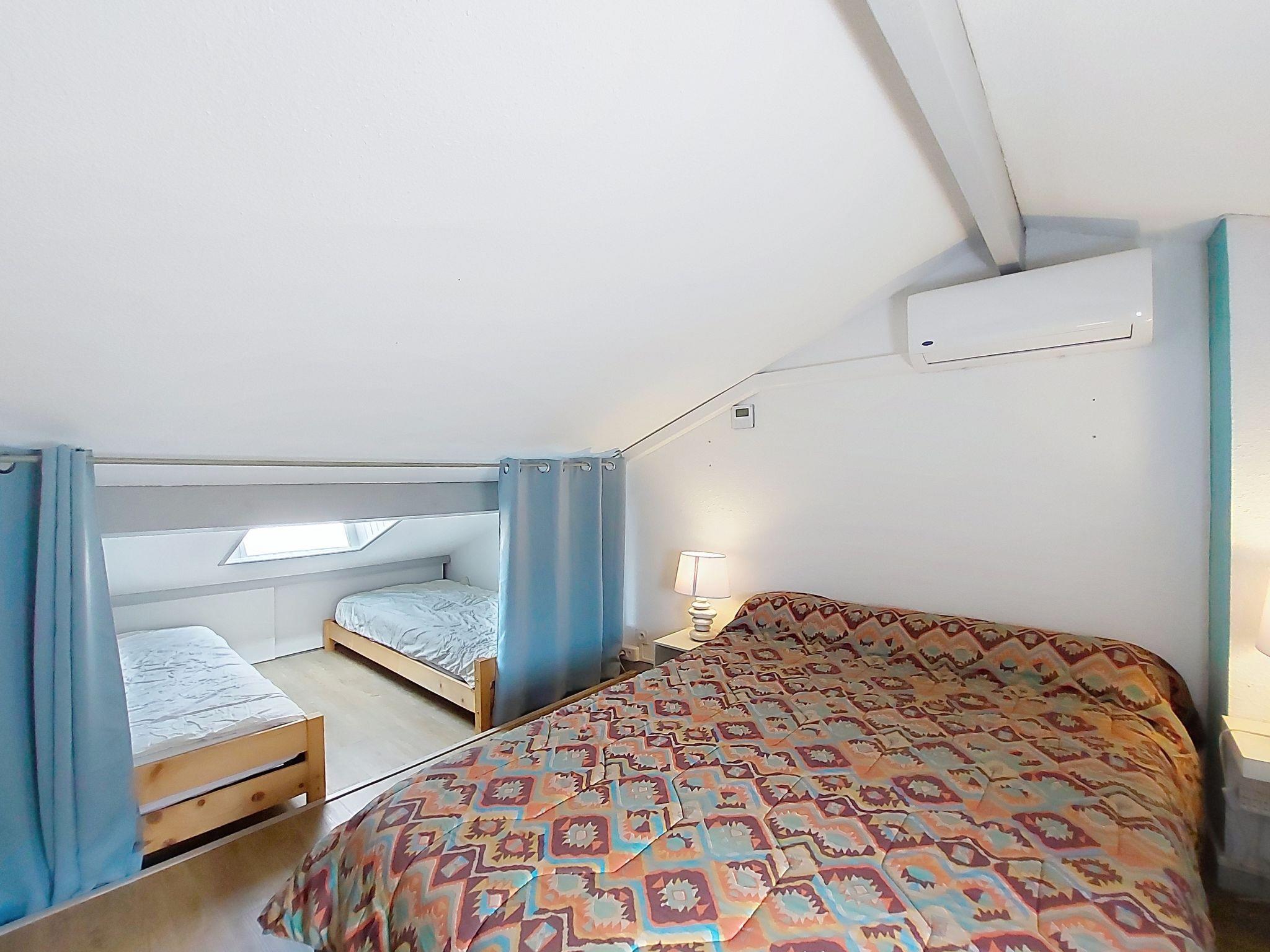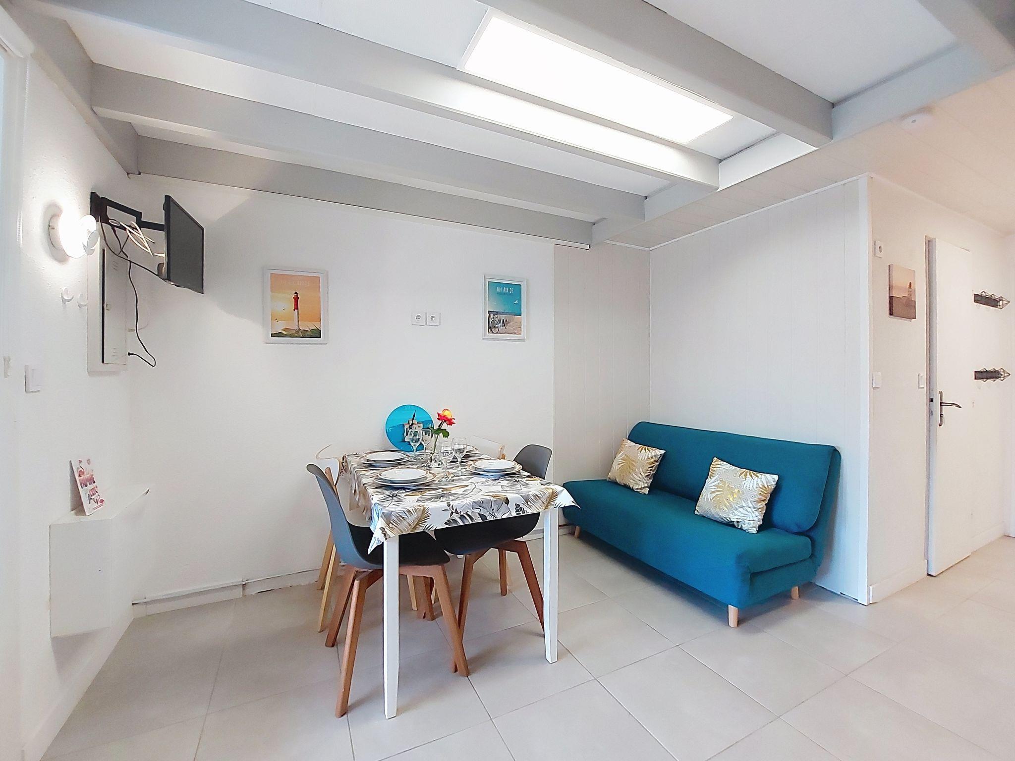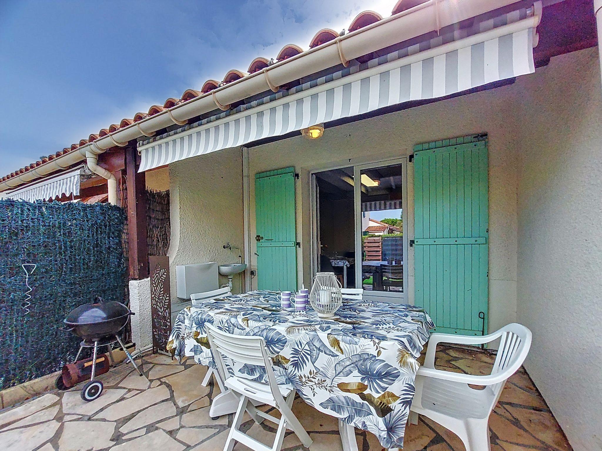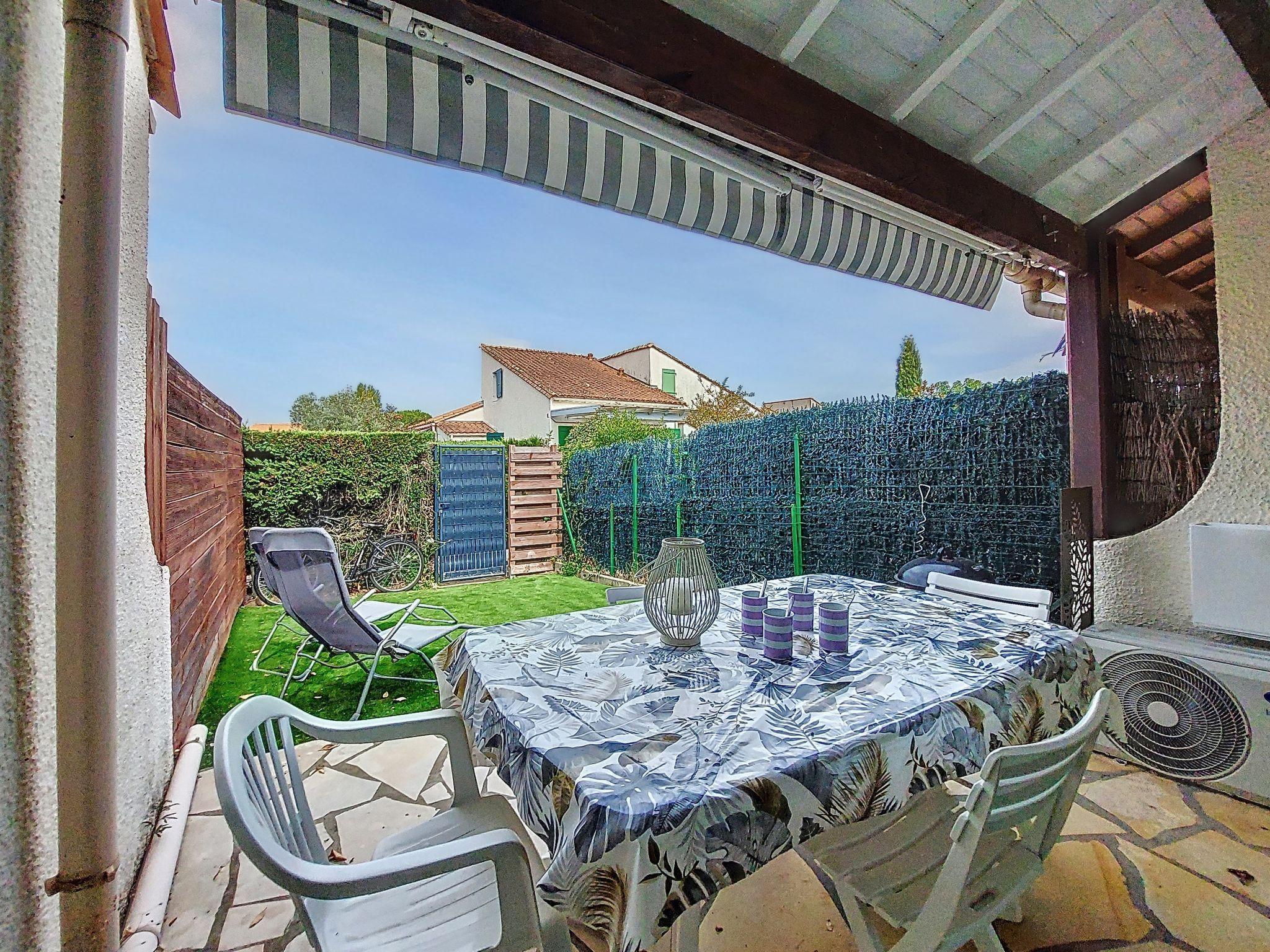 2-room terraced house 30 m2 on 2 levels. Living/dining room with TV (flat screen). Exit to the terrace. Kitchenette (oven, dishwasher, 3 ceramic glass hob hotplates, toaster, kettle, freezer, electric coffee machine). Shower/WC. Electric heating, air-conditioning. Upper floor: gallery with sloping ceilings with 2 beds (90 cm, length 190 cm), 1 french bed (1 x 140 cm, length 190 cm), TV (flat screen). Terrace 6 m2, patio 20 m2. Terrace furniture, electric barbecue. Facilities: washing machine. Internet (WiFi, extra). Parking. Please note: 1 small pet/ dog allowed. Smoke alarm. Offer by a private individual according to Art. 155, IV of CGI.
