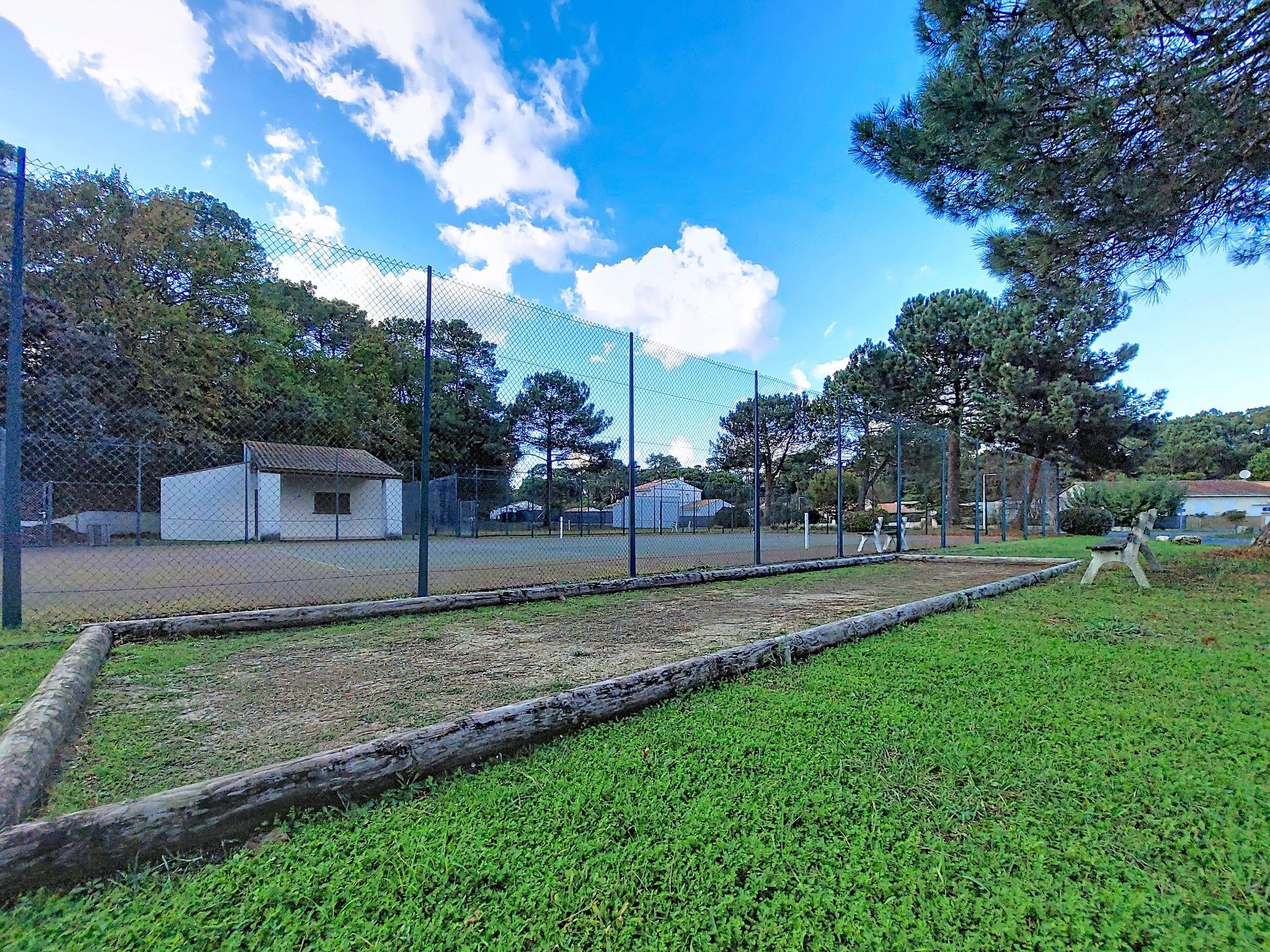 La Palmyre: Single-family house "Les Alouettes". In the resort 1 km from the centre of La Palmyre, in a quiet position in the residential district, 1.7 km from the sea, 1.7 km from the beach, south-west facing position. Private: natural state property 570 m2 (fenced), trees, parking. Shop 1 km, grocery 1 km, supermarket 1 km, bakery 1 km, café 1 km, bus stop "Office de tourisme" 1 km, railway station "Royan" 18 km, sandy beach "La Palmyre" 1.7 km. Sports harbour 1.7 km, golf course (9 hole) 900 m, surf school 1 km, tennis 150 m, riding stable 1.7 km. Nearby attractions: Zoo de La Palmyre 1.1 km, Hippodrome - La Palmyre 700 m, Zagal Cabaret - La Palmyre 1.9 km, Luna Park (Juillet - Août) 5 km, Port La Tremblade - Boyard / Ile d'Aix 12 km, Golf La Palmyre 2 km. The keys‘ handover takes place by the agency Interhome in La Palmyre, 1 km.